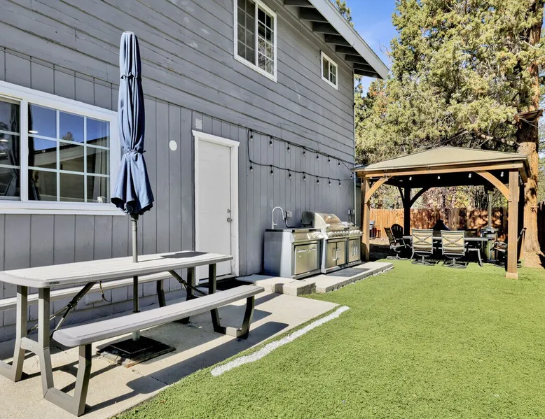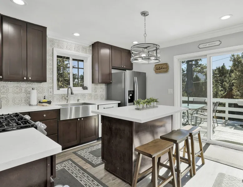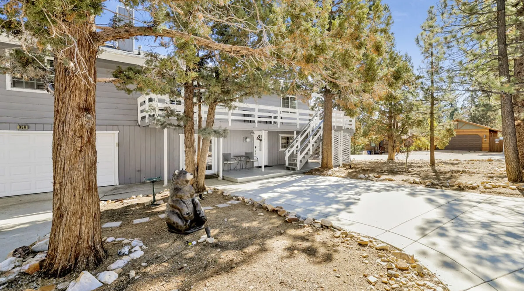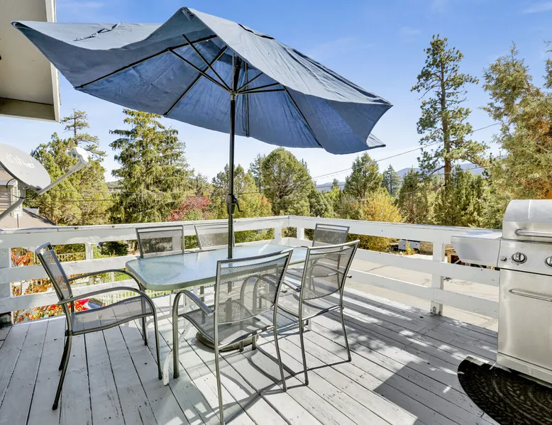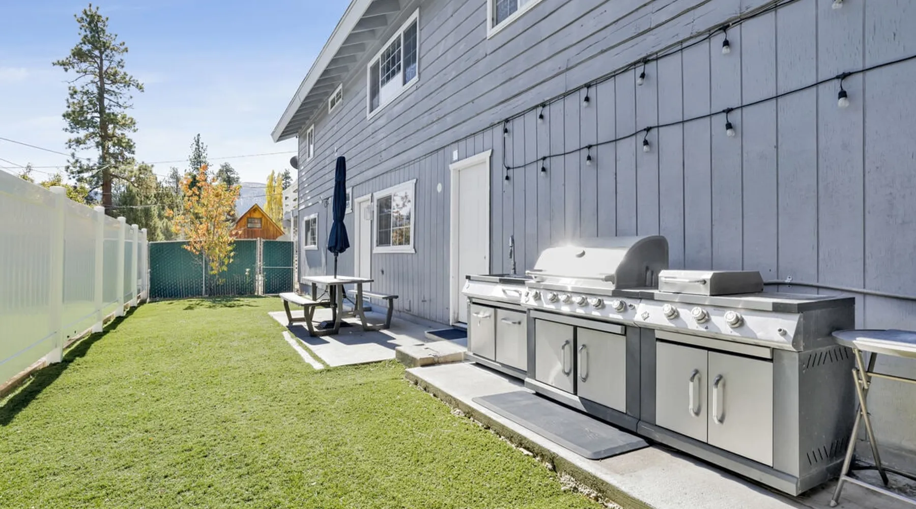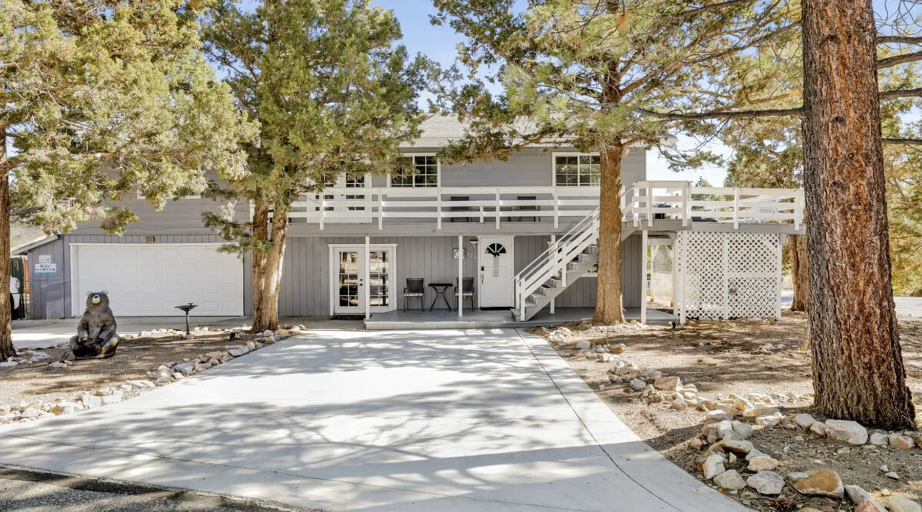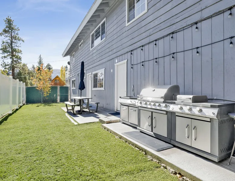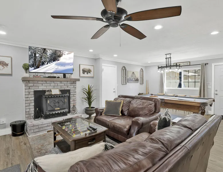 Brewer Escape ~ Modern, newly renovated escape with mountain views - five minutes to town Nestled on a corner lot 5 minutes from town and 7 minutes from the lake shore, this 5BR/3BA home presents mountain views, two alfresco dining options, and an outdoor kitchen. The 2,400 square foot interior offers a renovated kitchen, two living areas, each with a wood-burning stove. The slopes and trails at Snow Summit and Bear Mountain are both 15 minutes from home. The space LIVING AREA Two welcoming living areas each have ample seating, a wood-burning stove, and a smart TV. One of the rooms has a pool table and the other has a sleeper sofa. KITCHEN & DINING Detailed with a patterned backsplash and a full suite of stainless-steel appliances, the pristine kitchen is equipped with everything needed to create your favorite meals. When it's time to dine, the table seats six. OUTDOOR AREA & AMENITIES The charming outdoor space features an outdoor kitchen with a gas grill and sink. Dine alfresco under the covered pergola. In the evening, gather for conversation around the wood-burning firepit. A mountain-view balcony presents another gas grill and an additional table to dine alfresco. Sleeping Arrangements: Bedroom 1: Queen Bed, Streaming TV- Downstairs Entry Level Bedroom 2: Queen Bed, Streaming TV- Downstairs Entry Level Bedroom 3: Queen Bed, Streaming TV- Upstairs 2nd Level Bedroom 4: Twin Day Bed, Streaming TV- Upstairs 2nd Level Bedroom 5: King Bed, Streaming TV, Work Desk, Private Bath Living Room: Full Sleeper Sofa, Streaming TV, Fireplace- Downstairs Entry Level Bathroom Arrangements: Hallway 3/4 Bath (Shower Only)- Downstairs Entry Level Hallway 3/4 Bath (Shower Only)- Upstairs 2nd Level Private Bath w/ Walk-In Shower- Bedroom 5- Upstairs 2nd Level ~Sleeps 11 ~2 Car Driveway + 2 Car Garage Parking ~NO PETS ALLOWED ~2,400 Sqaure Feet ~County Permit #: CESTRP-2021-01426 Guest access Once checked in, guests can enjoy sole access to their private property for the duration of their booked dates. Registration Details CESTRP-2021-01426