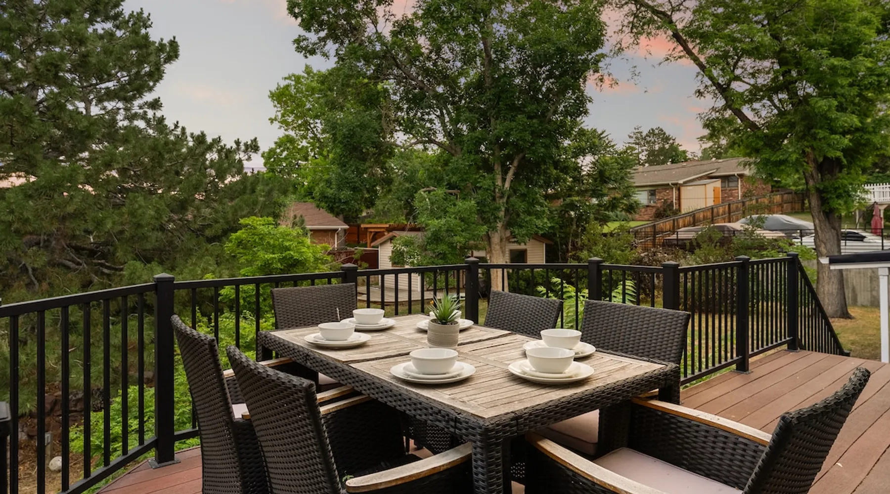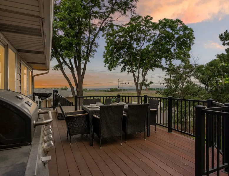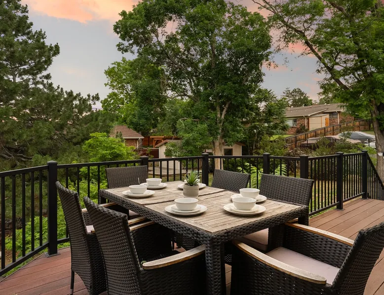 Experience bold style and ample space to unwind in this one-of-a-kind retreat. Designed with modern, eclectic flair—think curated art, mixed textures, and industrial-chic finishes—every room offers something unexpected. Two fully equipped kitchens make hosting effortless, while the expansive open layout and lower-level rec room provide space to gather or unwind. Outside, enjoy a sprawling backyard with lawn games, grill, and hot tub. A truly unforgettable home base between Denver and Boulder. The space BEDROOMS This home features 5 spacious bedrooms with a total of 7 beds and a sofa bed, comfortably sleeping up to 14 guests. Whether you’re a large family, group of friends, or traveling for work, there’s room for everyone to relax in style. Bedroom 1 – Stretch out in the primary suite with a King bed, modern furnishings, and en suite bathroom- complete with easy access to the hot tub just outside. Bedroom 2 – A cozy Queen bed with modern flare Bedroom 3 – This inviting Queen bedroom blends warm tones with soft textures, offering a perfect space to unwind. Bedroom 4 – Another Queen bedroom, thoughtfully decorated with room-darkening curtains Bedroom 5 – Perfect for kids or group travelers, this room includes 2 Bunk Beds (4 Twin beds). Great for late-night talks, games, and fun memories. BATHROOMS Enjoy 3 full bathrooms throughout the home—bright, clean, and fully stocked with hotel-quality towels, toiletries, and essentials. Whether it’s a quick rinse or a long soak, your group will always have access to a fresh space. KITCHEN & LOUNGE Soaring vaulted ceilings and panoramic windows frame breathtaking mountain views, filling the home with natural light and a sense of openness. Two spacious living rooms—each with Smart TVs—offer plenty of room to relax, play, or unwind. Whether you're hosting movie night, diving into a board game, or curling up with a good book, the layout invites both togetherness and quiet moments. Gather, cook, and connect in a show-stopping, fully renovated kitchen—designed with groups in mind. Outfitted with premium appliances, expansive quartz countertops, and every essential for crafting everything from casual breakfasts to festive dinners, this space is as functional as it is stylish. OUTDOOR SPACE Step outside to a large backyard complete with a hot tub, BBQ grill, outdoor seating, and a patio/balcony. It’s the perfect setup for soaking in the Colorado sunshine or enjoying a glass of wine under the stars. EXTRAS & HIGHLIGHTS ☆ 5 Bedrooms (1 King, 3 Queens, 4 Twins via bunk beds, 1 sofa bed) ☆ 3 Full Bathrooms ☆ 2 Living Rooms with Smart TVs ☆ Fully Stocked Kitchen for Group Meals ☆ Large Fenced Backyard + Patio & Balcony ☆ Hot Tub + BBQ Grill ☆ Dedicated Workspace ☆ Pet-Friendly ☆ Room Darkening Curtains ☆ Self Check-in Made Easy Come experience the comfort, space, and charm of our home—perfectly set up for your next trip to Colorado! Guest access You’ll have access to every room, please make yourself at home; your hosts are just a phone call or text away if you have any questions or want recommendations for things to do nearby. There is a keypad on the front door for easy and secure access to the home. Other things to note •We will send you a link to your electronic guidebook upon booking where you will find all necessary and relevant information relating to your stay. We also include our suggestions for the best things to do in town, our favorite restaurants, activities, hikes, nightlife, and much more. •This home is in a residential area and showing respect to the neighbors is very important. We expect our guests to respect our guest and noise policies at all times- parties will not be tolerated. If you are unsure of what might be considered a party, please reach out to ask and we will be happy to help. Extra fees will be charged if these policies are not adhered to. •Please note that smoking of any kind is forbidden inside and will result in a minimum fine of $250 to cover the cost of mitigation. •Reservations may be subject to extra guest fees. •Early check ins may be requested the day of check in through your electronic guidebook. We do our best to accommodate these requests, however it depends on our calendar and the cleaners schedule. If approved, there is a $50 charge for early check in. •We do not allow late checkouts under any circumstances. The cleaners are very busy and plan their days ahead of time, we expect guests to be checked out by the designated time or a $125 charge will be incurred. •To make your stay more comfortable, we provide a complimentary starter supply of essentials, including toilet paper, paper towels, shampoo, conditioner, and body wash. For extended stays, we kindly ask that guests replenish any additional items they may need throughout their visit. •We welcome up to 2 dogs with a $150 pet fee. We do not allow cats.