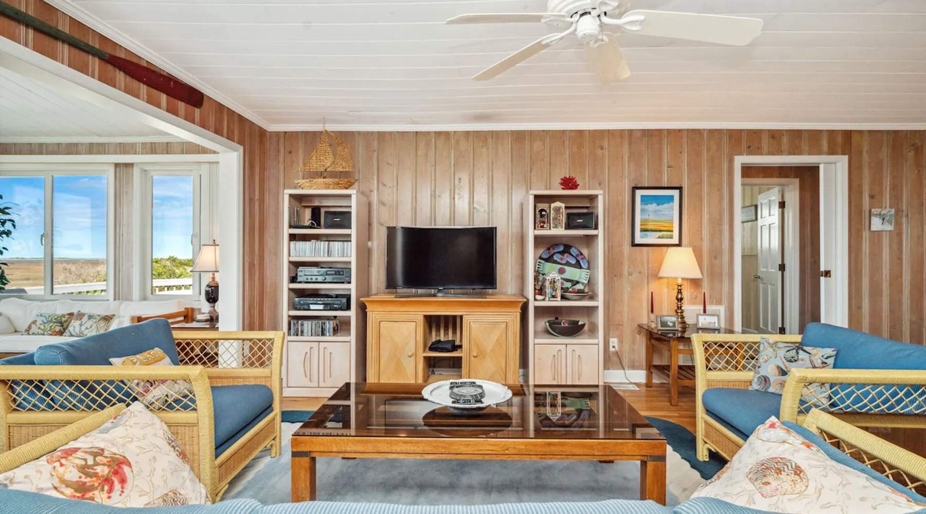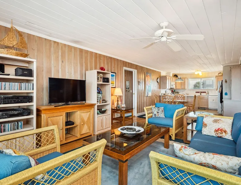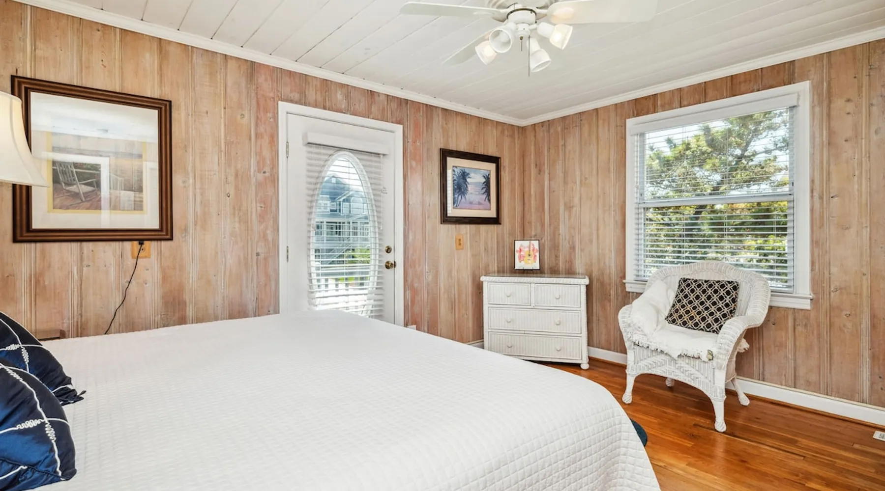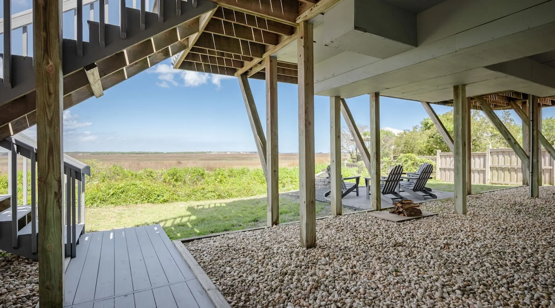 3 Bedrooms | 2 Full Bathrooms 2 Kings | 1 Queen This ocean view home on quiet Caswell Beach is located approximately .1 miles from a public walkway to the beach. Wireless internet access. Large, flatscreen TV in living room with Roku so guests can access their personal streaming services. Books, games/puzzles. The space Well maintained classic beach cottage style home with hardwood floors throughout and amazing Intracoastal Waterway views from the Carolina room, living room and sitting room with writing desk and queen sofa bed. Beautiful ICW views from one of the king bedrooms, ceiling fans throughout. Enjoy your morning cup of coffee from the gated deck overlooking the ICW with rockers, picnic table, and umbrella or cool off on the covered street side porch with furniture. Covered parking for two cars and additional two in the driveway, enclosed outside shower with hot and cold water and hose rinse off under the home. Relax by the back patio with a fire pit. No Pets but owner-pet may be present at times during owner occupancy. Other things to note The reservation holder must be at least 25 years of age and be present at the booked property during the dates of stay.