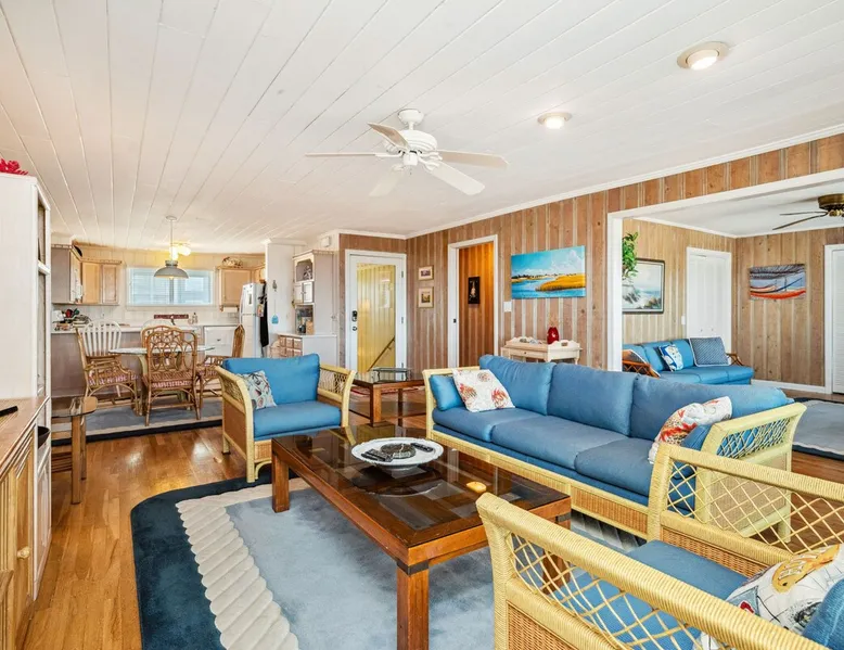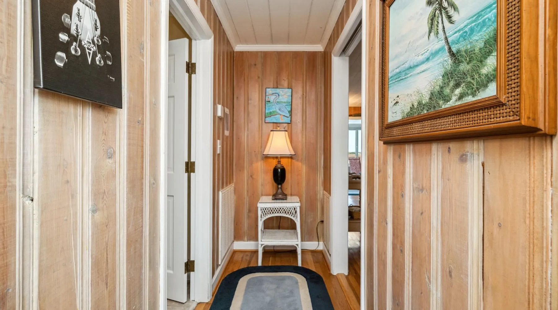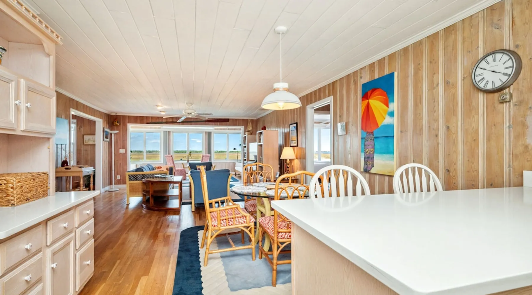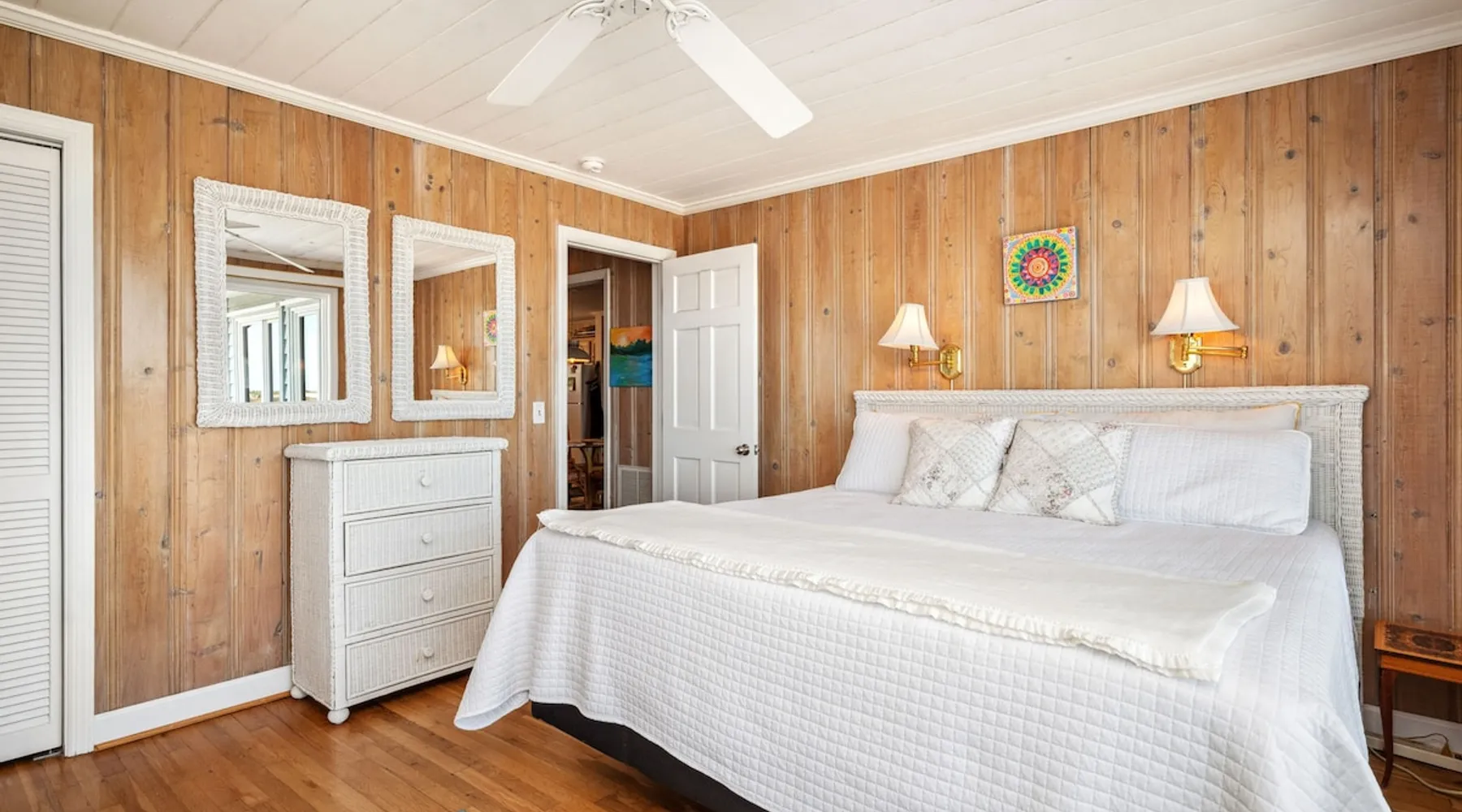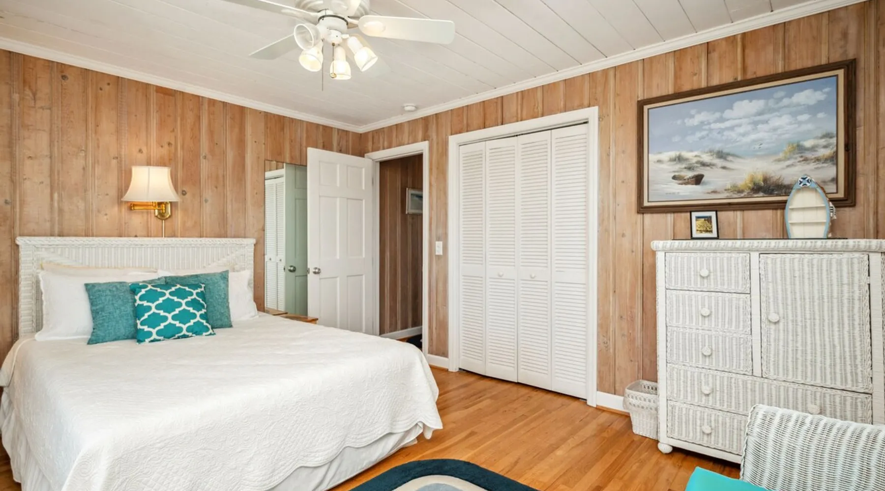3 Bedrooms | 2 Full Bathrooms 2 Kings | 1 Queen This ocean view home on quiet Caswell Beach is located approximately .1 miles from a public walkway to the beach. Wireless internet access. Large, flatscreen TV in living room with Roku so guests can access their personal streaming services. Books, games/puzzles. The space Well maintained classic beach cottage style home with hardwood floors throughout and amazing Intracoastal Waterway views from the Carolina room, living room and sitting room with writing desk and queen sofa bed. Beautiful ICW views from one of the king bedrooms, ceiling fans throughout. Enjoy your morning cup of coffee from the gated deck overlooking the ICW with rockers, picnic table, and umbrella or cool off on the covered street side porch with furniture. Covered parking for two cars and additional two in the driveway, enclosed outside shower with hot and cold water and hose rinse off under the home. Relax by the back patio with a fire pit. No Pets but owner-pet may be present at times during owner occupancy. Other things to note The reservation holder must be at least 25 years of age and be present at the booked property during the dates of stay.