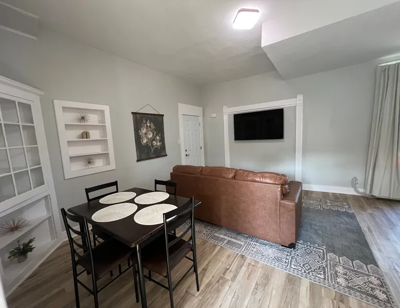 This special place is centrally located, within walking distance to U of I campus and downtown Champaign, making it easy to plan your visit. Relax comfortably in the queen size beds with hotel quality sheets, and let the blackout curtains guarantee you a great night’s sleep! The kitchen comes equipped with everything you need to make a delicious, homemade meal. Why pay outrageous hotel prices when you can stay at our newly remodeled Airbnb for less? The space This is a newly renovated one bedroom apartment with a couch in the living room that pulls out to a queen size bed. The kitchen is fully functional, as it includes everything you will need to prepare a meal. The keyless entry makes coming and going a breeze, as you won’t have to keep track of keys. The brand new Smart TV allows you to login to your own personal Netflix, Hulu, Amazon Prime, etc. account. Guest access Guests will have access to the whole apartment, with the exception of one closet in the bedroom. The closet is locked for storage of cleaning items, extra linens, etc.