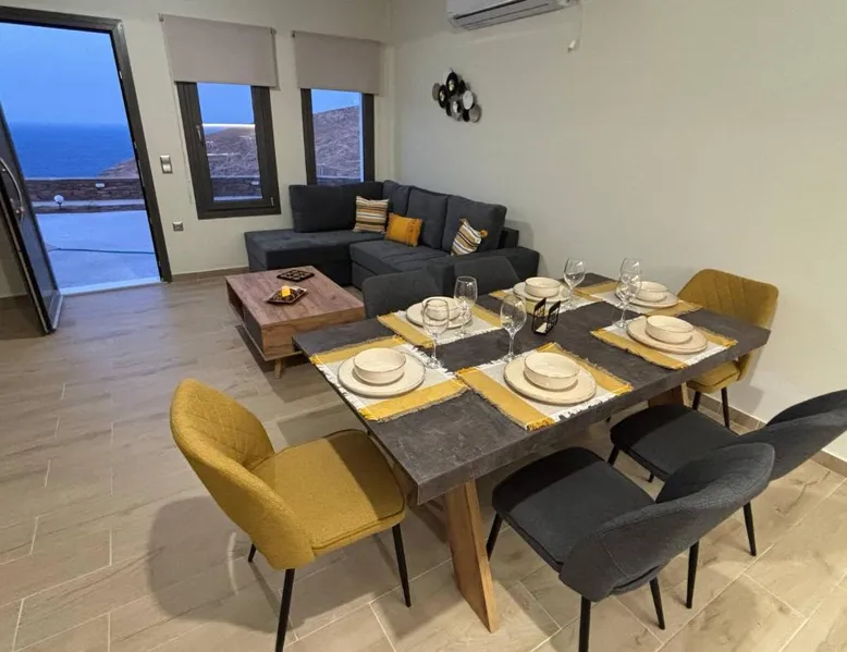 Sun Terrace and Garden: Cavo Levante in Andros offers a sun terrace and a lush garden. Guests can relax in the outdoor seating area or enjoy the serene garden views. Free WiFi is available throughout the apartment. Comfortable Amenities: The apartment features air-conditioning, a fully equipped kitchen, and a private bathroom. Additional amenities include a washing machine, patio, and free on-site private parking. Prime Location: Syneti Beach is a 4-minute walk away. Eleftherios Venizelos Airport is 80 mi from the property. Nearby attractions include the Archaeological Museum of Andros and the Andros Maritime Museum, each 5.6 mi away. This air-conditioned apartment consists of 1 living room, 1 separate bedroom and 1 bathroom with a bath or a shower. Guests can make meals in the kitchen that is equipped with a stovetop, a refrigerator, kitchenware and an oven. Featuring a terrace with sea views, this apartment also provides a washing machine and a flat-screen TV. The unit offers 2 beds.