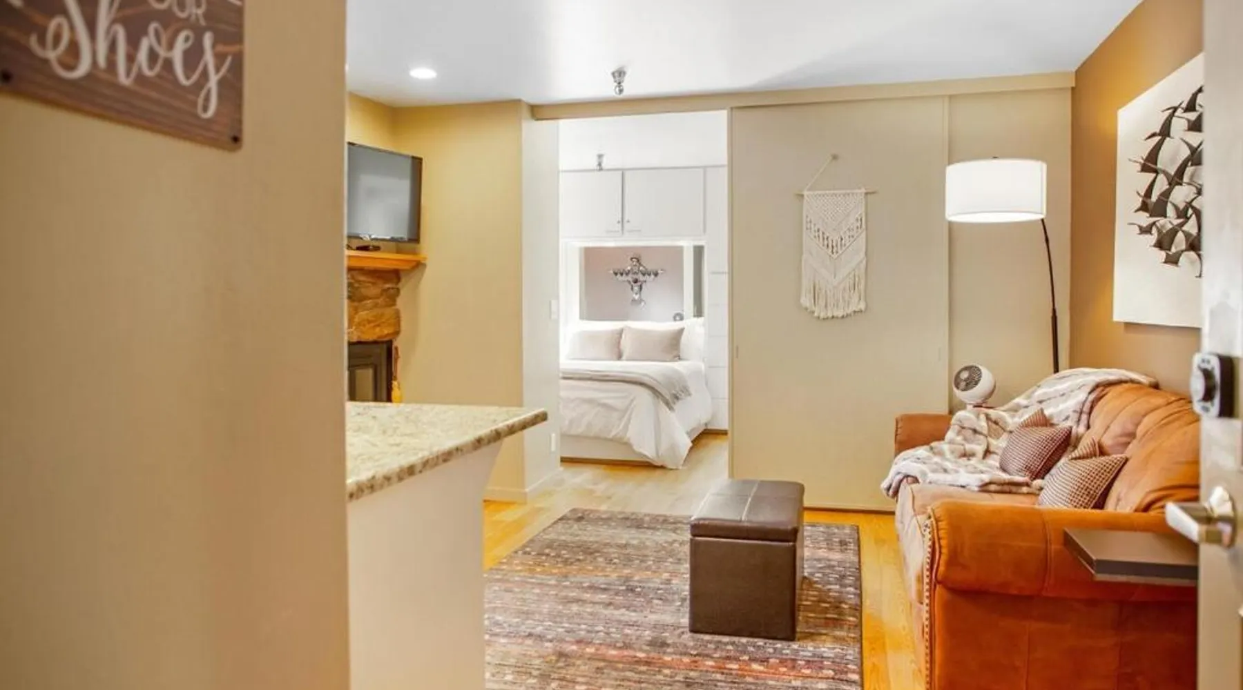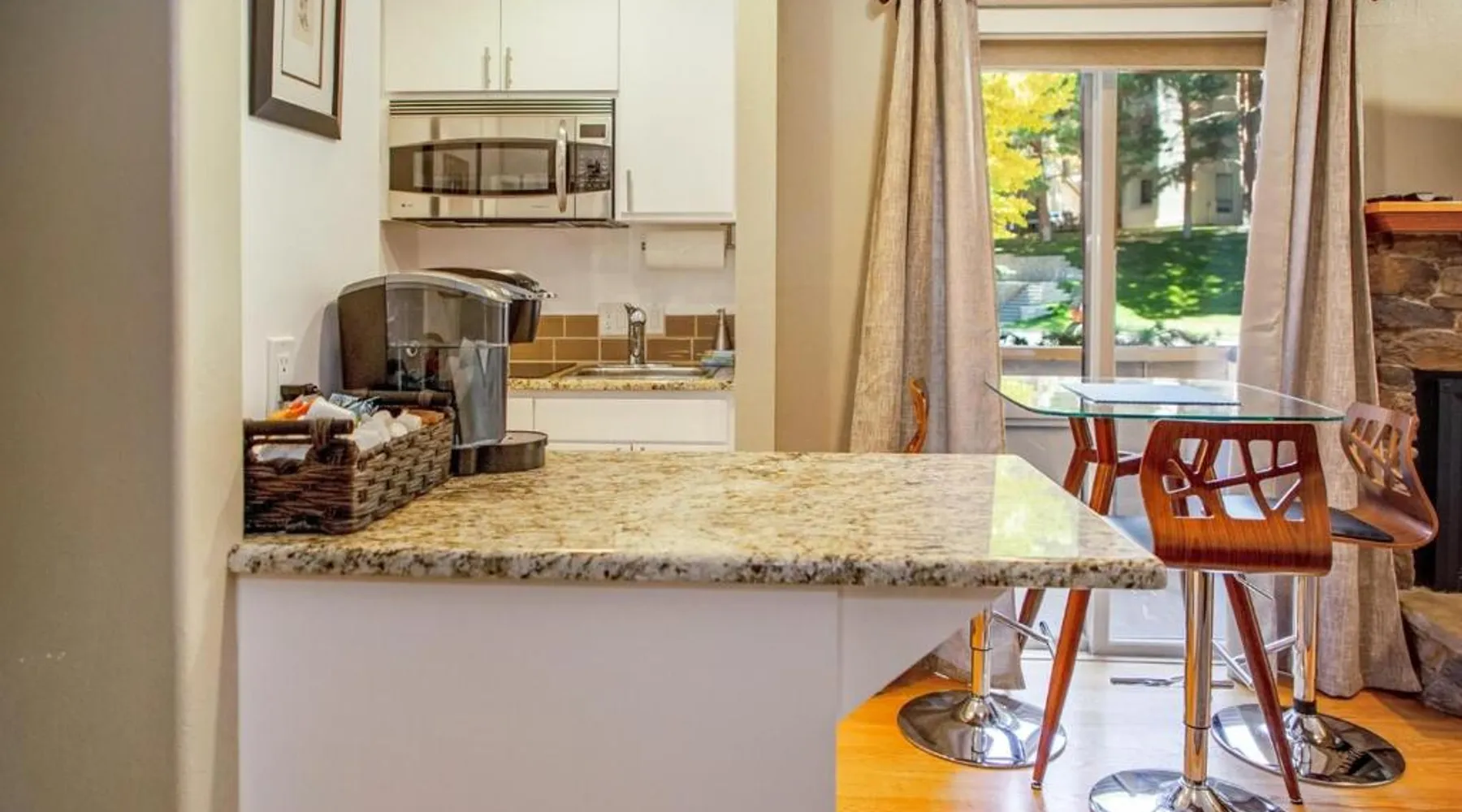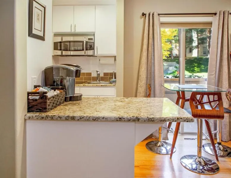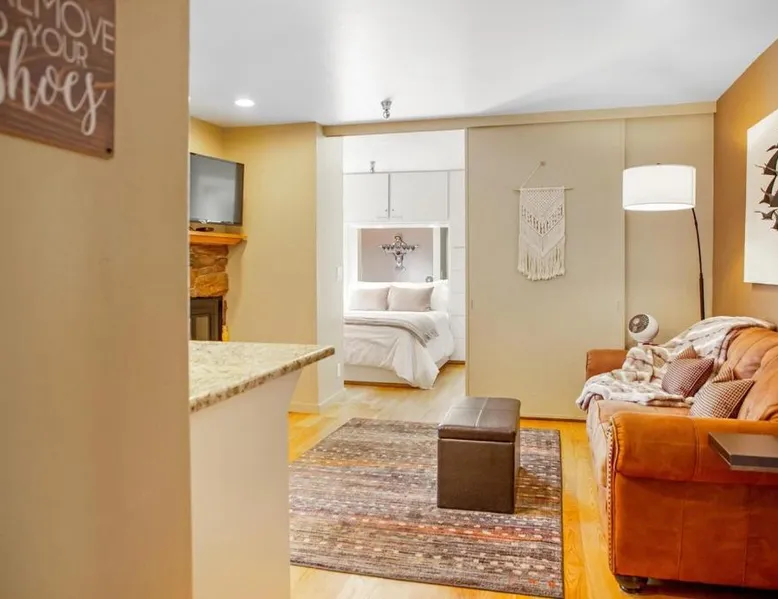 Comfortable Living: Elkhorn Condo Walk to Dollar! in Sun Valley offers a cozy holiday home with one bedroom and a living room. Guests enjoy free WiFi and free on-site parking. Modern Amenities: The property features a fully equipped kitchen with a refrigerator, microwave, dishwasher, oven, stovetop, toaster, and tea and coffee maker. Additional amenities include a hot tub, balcony with mountain views, washing machine, and a fireplace. Outdoor Activities: Skiing enthusiasts can explore the nearby slopes, while relaxation seekers can unwind in the hot tub or on the balcony. Convenient Location: Friedman Memorial Airport is located 14 mi away, providing easy access for travelers. This apartment's standout features are the hot tub and fireplace. Meals can be prepared in the well-fitted kitchen, which features a stovetop, a refrigerator, a dishwasher and kitchenware. Boasting a balcony with mountain views, this apartment also features a washing machine and a TV. The unit has 1 bed.