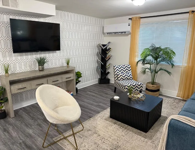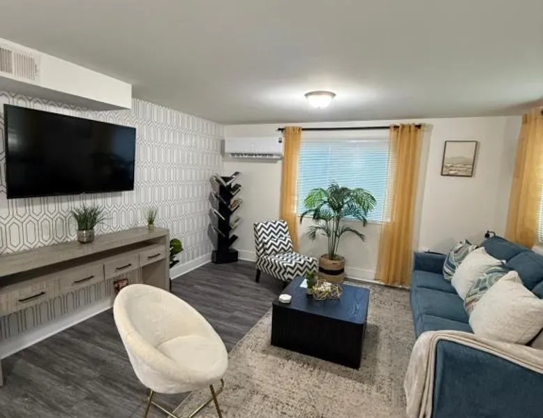 Comfortable Living: Modern 1BR Near DC Quiet Comfort and Fast Commute in District Heights offers a one-bedroom apartment with a living room. The property features family rooms, air-conditioning, and parquet floors. Essential Amenities: Guests enjoy free WiFi, free on-site parking, and a fully equipped kitchen with a refrigerator, oven, stovetop, microwave, and coffee machine. Additional amenities include a washing machine, dining area, and work desk. Convenient Location: Located 14 mi from Ronald Reagan Washington National Airport, the apartment is near attractions such as Addison Road-Seat Pleasant (3.7 mi), Supreme Court and The Capitol (8.7 mi), and Nationals Park (9.3 mi). Highly rated by guests. Featuring a private entrance, this air-conditioned apartment consists of 1 living room, 1 separate bedroom and 1 bathroom with a bath and a shower. In the well-fitted kitchen, guests will find a stovetop, a refrigerator, kitchenware and an oven. The apartment features parquet floors, a seating area with a flat-screen TV, a washing machine, a tea and coffee maker, as well as a dining area. The unit offers 2 beds.