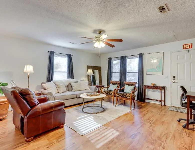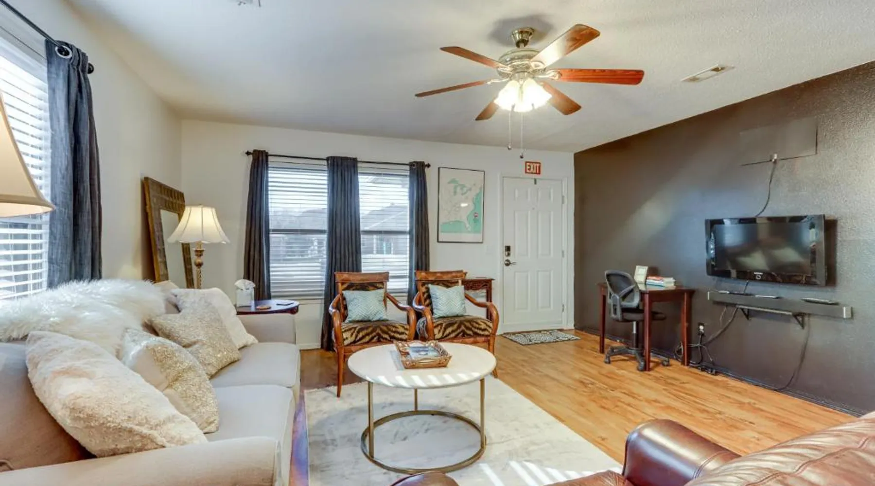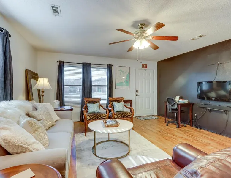 Comfortable Living: Centrally located in Fayetteville, the holiday home offers two bedrooms and two bathrooms. The ground-floor unit features a spacious living room with air-conditioning and a private entrance. Modern Amenities: Guests enjoy free WiFi, a fully equipped kitchen with a coffee machine, dishwasher, and microwave. Additional amenities include a washing machine, hairdryer, TV, and work desk. Convenient Location: Located 15 mi from Northwest Arkansas Regional Airport, the property is close to attractions such as Lake Fayetteville Park (3.1 mi) and Razorback Stadium (5.6 mi). On-site paid parking is available. Boasting a private entrance, this air-conditioned holiday home features 1 living room, 2 separate bedrooms and 2 bathrooms with a hairdryer. In the kitchen, guests will find a dishwasher, kitchenware, a microwave and a toaster. Featuring a patio, this holiday home also features a washing machine, a coffee machine and a flat-screen TV. The unit has 3 beds.