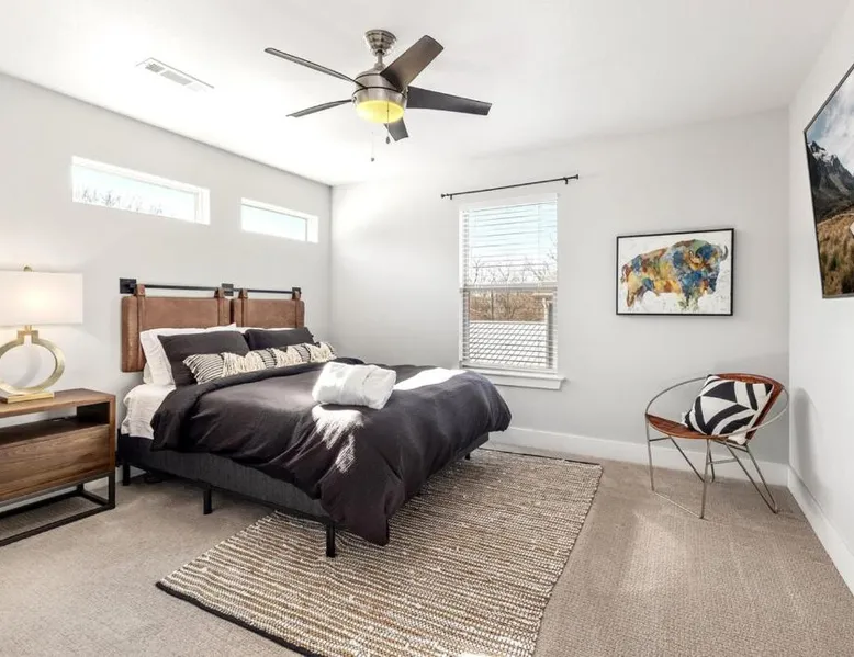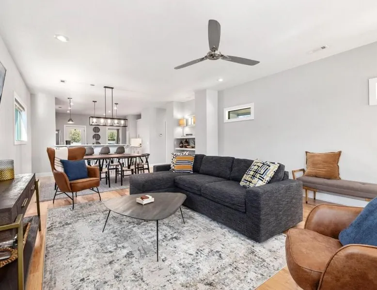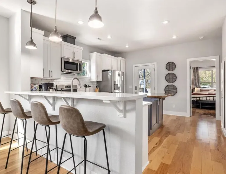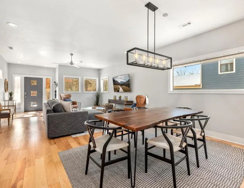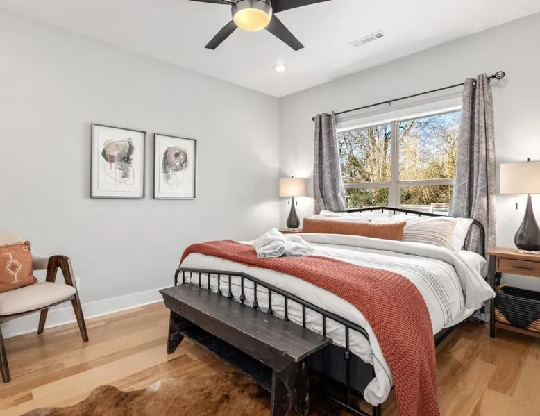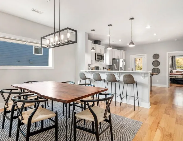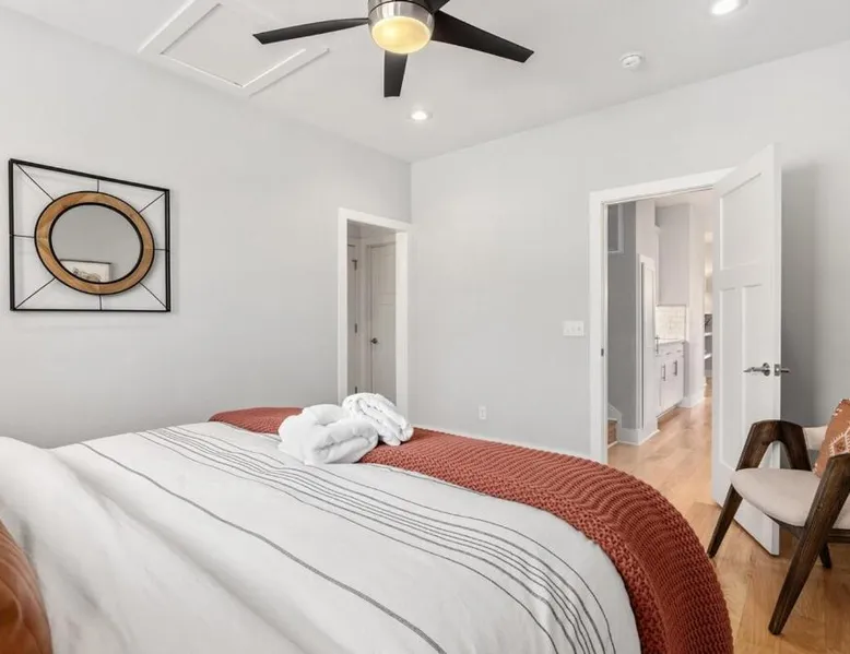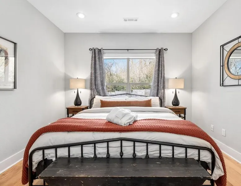 Spacious Accommodations: Porte Orange-Modern Home in Fayetteville offers a spacious holiday home with three bedrooms and three bathrooms. The property includes a living room and a fully equipped kitchen. Modern Amenities: Guests enjoy free WiFi, air-conditioning, a washing machine, and a private entrance. The home features a garden, patio, and barbecue facilities. Additional amenities include a TV, dishwasher, and microwave. Convenient Location: Located less than 0.6 mi from Fayetteville Town Center and 22 mi from Northwest Arkansas Regional Airport. Nearby attractions include Headquarters House Museum (1.1 mi) and Bud Walton Arena (1.4 mi). Boasting a private entrance, this air-conditioned holiday home includes 1 living room, 3 separate bedrooms and 3 bathrooms with a bath and a hairdryer. In the well-equipped kitchen, guests will find a stovetop, a refrigerator, a dishwasher and kitchenware. The spacious holiday home offers a washing machine, a tea and coffee maker, tumble dryer, a barbecue, as well as a TV. The unit has 4 beds.