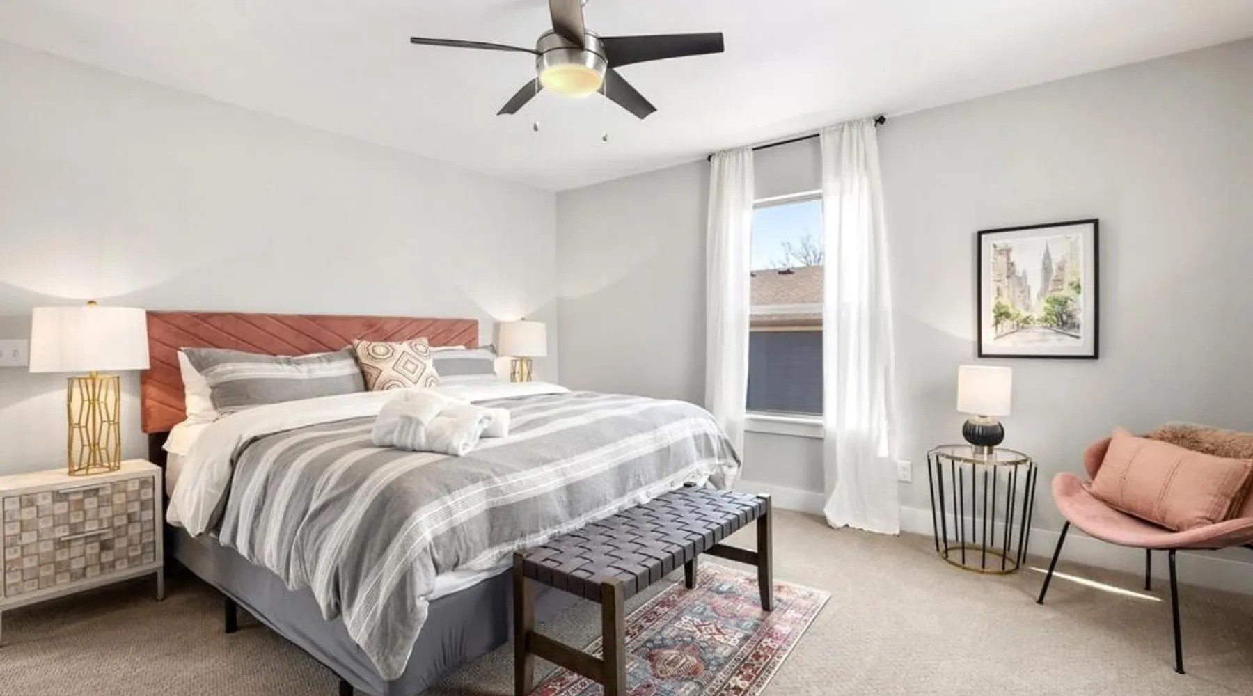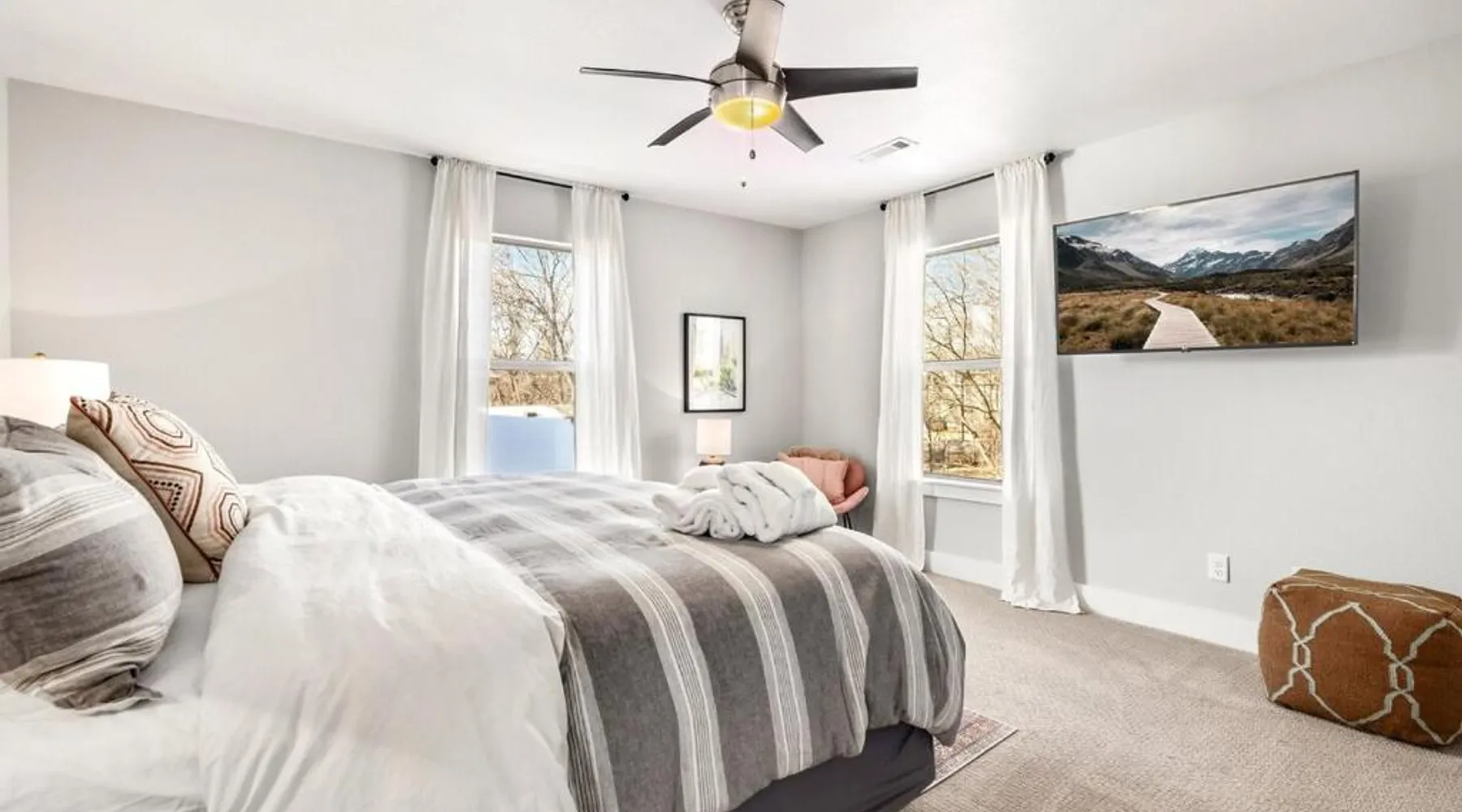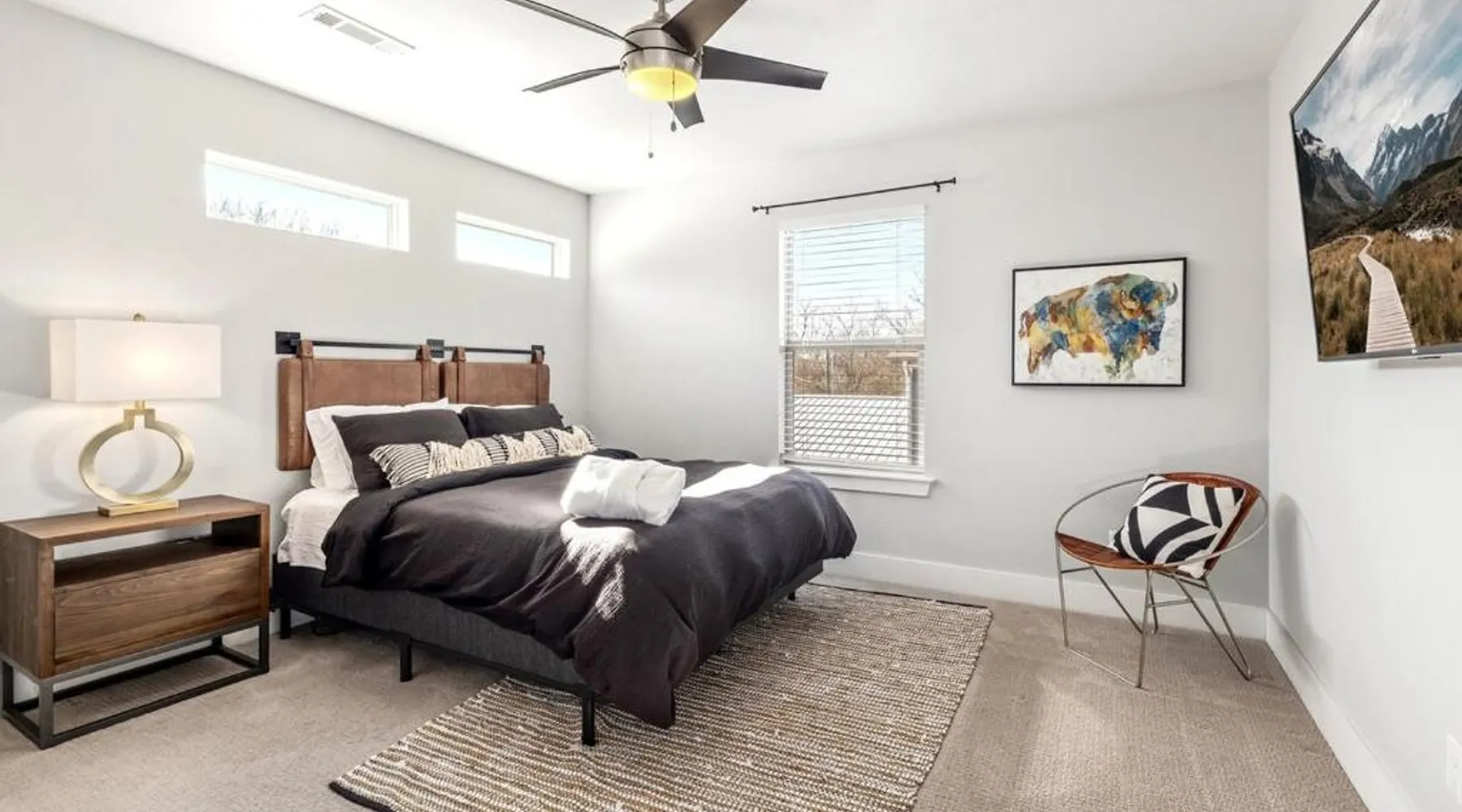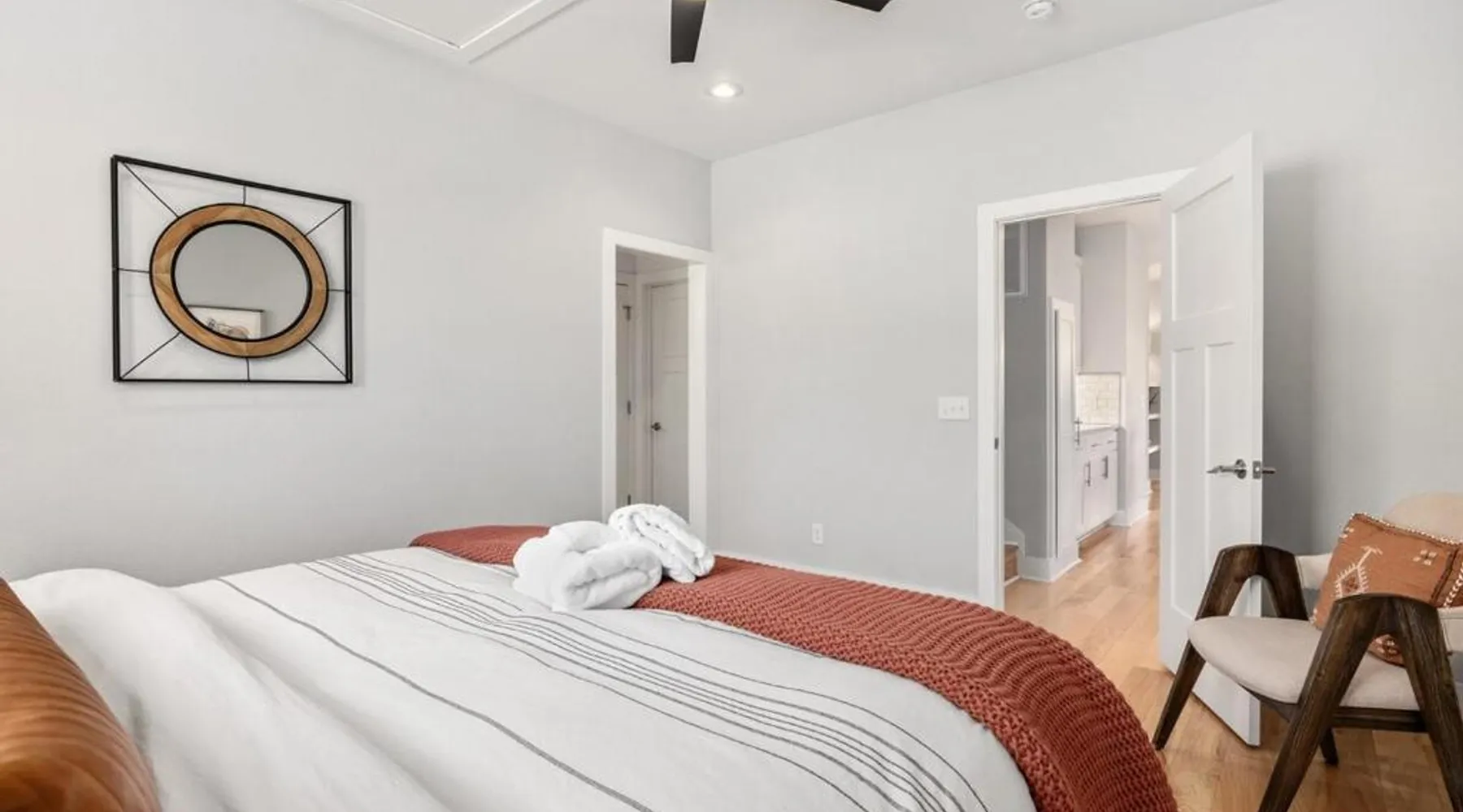 Spacious Accommodations: Porte Orange-Modern Home in Fayetteville offers a spacious holiday home with three bedrooms and three bathrooms. The property includes a living room and a fully equipped kitchen. Modern Amenities: Guests enjoy free WiFi, air-conditioning, a washing machine, and a private entrance. The home features a garden, patio, and barbecue facilities. Additional amenities include a TV, dishwasher, and microwave. Convenient Location: Located less than 0.6 mi from Fayetteville Town Center and 22 mi from Northwest Arkansas Regional Airport. Nearby attractions include Headquarters House Museum (1.1 mi) and Bud Walton Arena (1.4 mi). Boasting a private entrance, this air-conditioned holiday home includes 1 living room, 3 separate bedrooms and 3 bathrooms with a bath and a hairdryer. In the well-equipped kitchen, guests will find a stovetop, a refrigerator, a dishwasher and kitchenware. The spacious holiday home offers a washing machine, a tea and coffee maker, tumble dryer, a barbecue, as well as a TV. The unit has 4 beds.