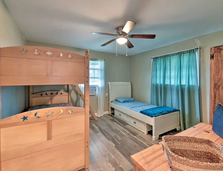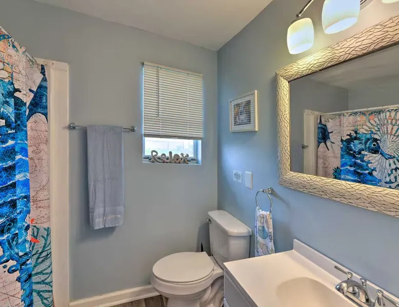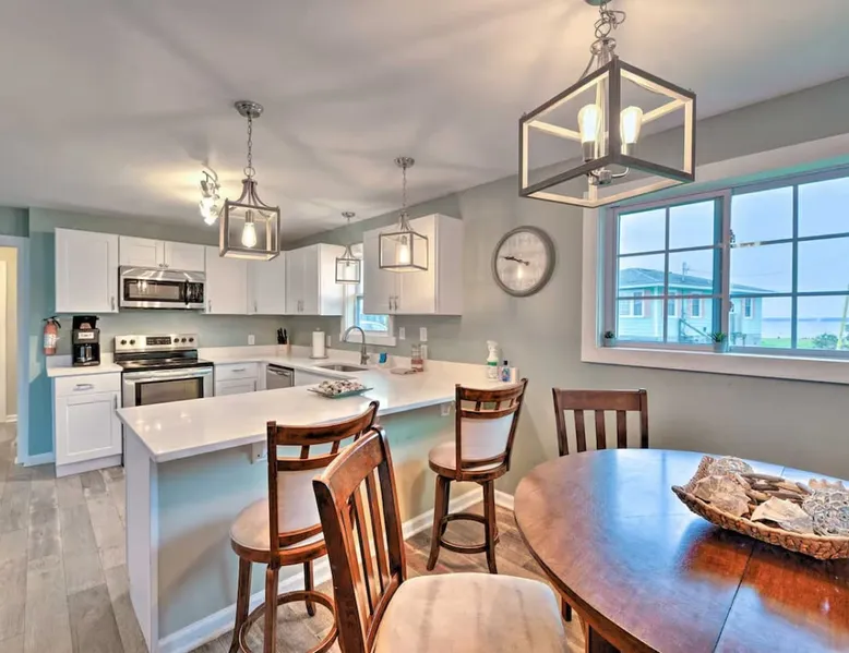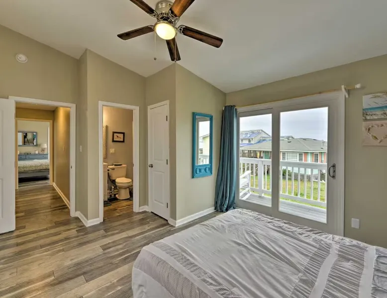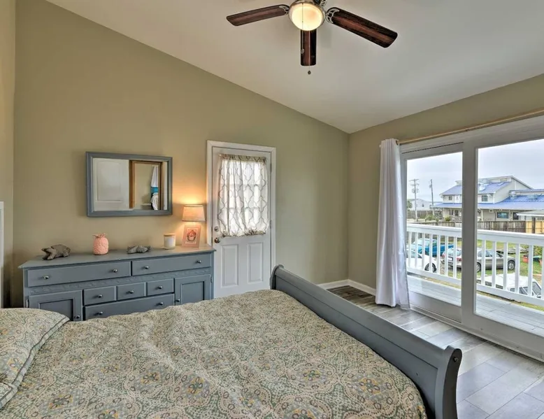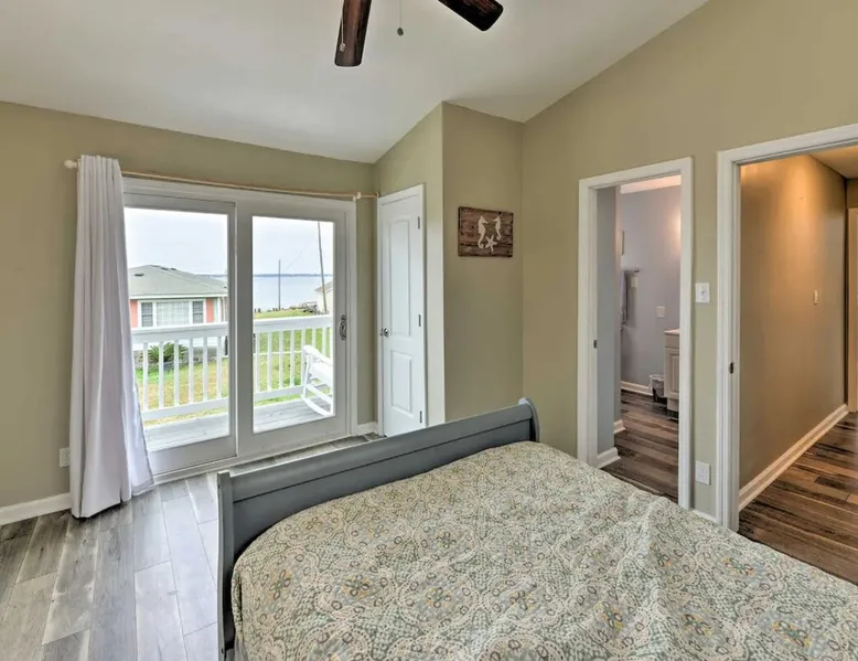 Answer the call of the Atlantic at this cozy 4-bedroom, 3-bathroom vacation rental on Bogue Sound! Known for its delicious seafood and beautiful beaches, Atlantic Beach is the ideal weekend getaway for family and friends! Take a stroll down to Indian Beach - less than a mile from the property - or head into Beaufort to explore. This quaint beach house has all you need for a relaxing stay, from a private covered porch to a lovely living room with a Smart TV. You'll love this coastal retreat! The space Free WiFi | Keyless Entry | Walk to Beach Bedroom 1: Queen Bed | Bedroom 2: Queen Bed | Bedroom 3: Twin Bed, Full Bed | Bedroom 4: Twin Bed, Twin Bunk Bed OUTDOOR LIVING: Private porch, balcony, outdoor seating, charcoal grill, beach access INDOOR LIVING: Smart TV, dining table, ceiling fans, open floor plan, coastal decor KITCHEN: Fully equipped, dishwasher, microwave, coffee maker, toaster oven, knife set, cooking basics, dishware/flatware, stainless steel appliances GENERAL: Central heating and air conditioning, washer & dryer, hair dryer, hangers, iron/board, linens, cleaning essentials FAQ: Access only by stairs, suitable for children, bedroom on first floor, quiet hours (10 PM), ongoing renovations & remodeling (between reservations), exterior security camera (front entrance), towels not provided FEES: Pet fee (paid pre-trip, 2 pets maximum) PARKING: Driveway (2 vehicles) Guest access Guests will have access to the entire property via keyless entry Other things to note - No smoking - Pet friendly with a $215 fee (+ fees & taxes, maximum 2 pets allowed) - No events, parties, or large gatherings - Must be at least 25 years old to book - Additional fees and taxes may apply - Photo ID may be required upon check-in - NOTE: The property requires stairs and may be difficult for guests with limited mobility - NOTE: Quiet hours begin at 10 PM - NOTE: This property features a strict 2-vehicle limit - NOTE: Your safety matters. There is an exterior security camera facing the main entry point and the driveway. It does not look into any interior spaces. The camera actively records while guests are present - NOTE: The rope is for the safety of the property. It is a Hazard for anyone, including children to swing or play on the rope. Please do not swing, sit or play on the rope - NOTE: Towels are not provided at the property. It is recommended that you supply your own