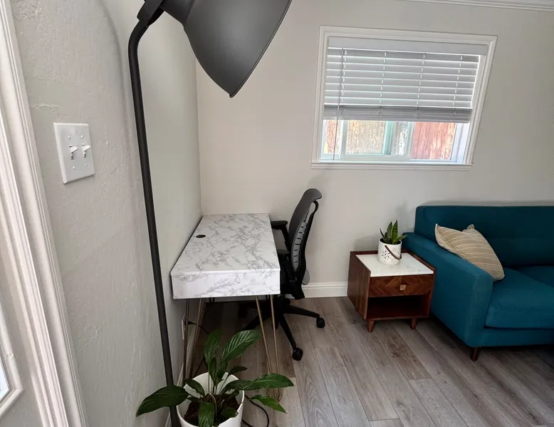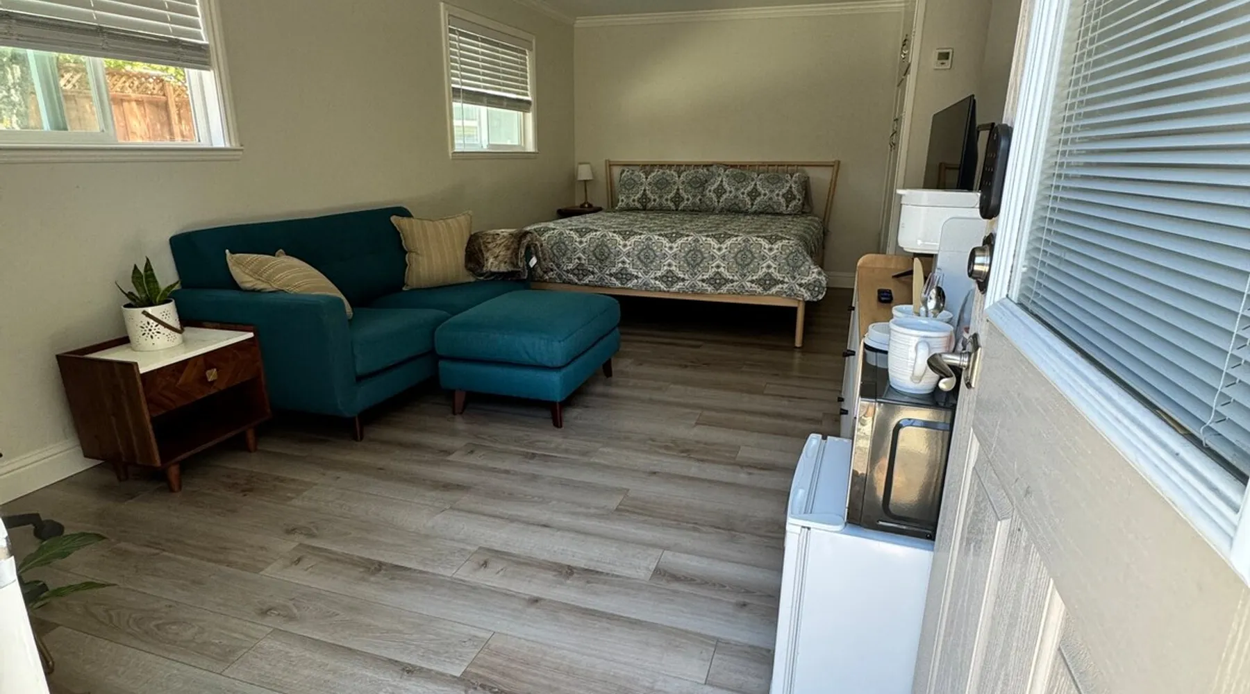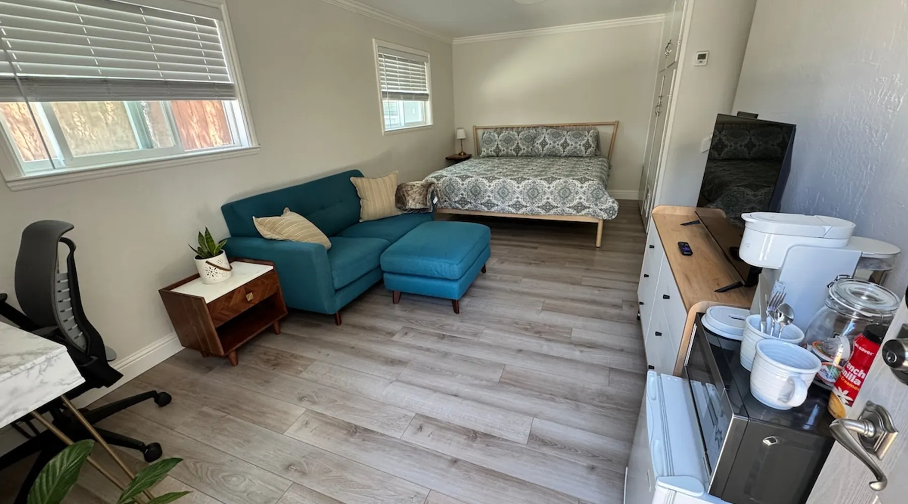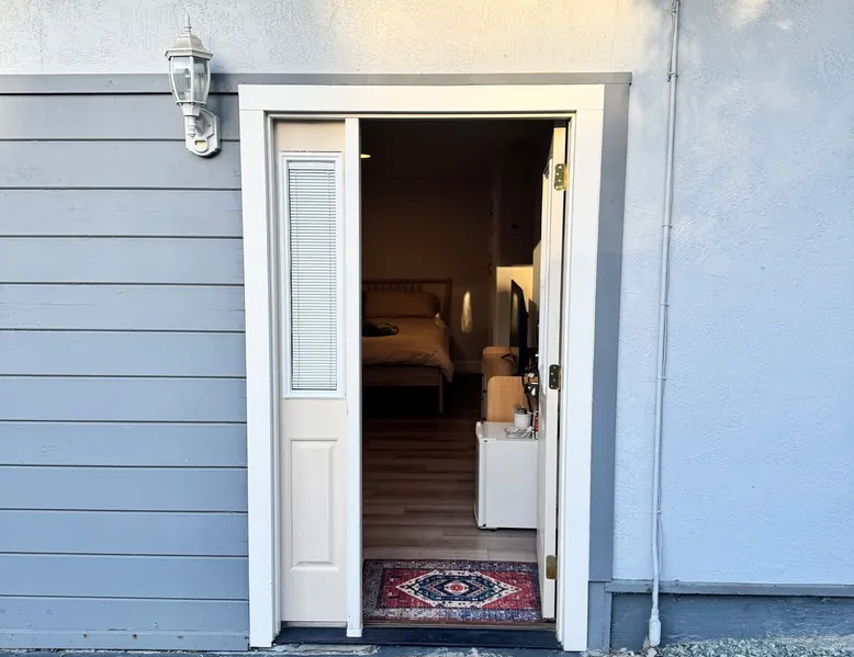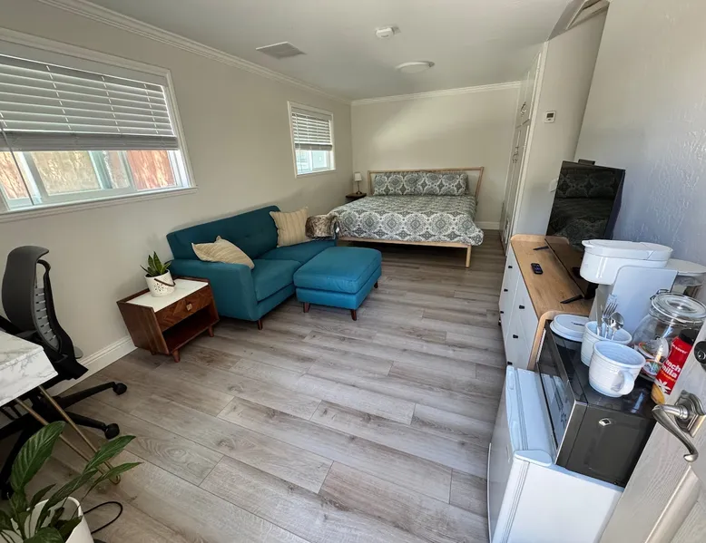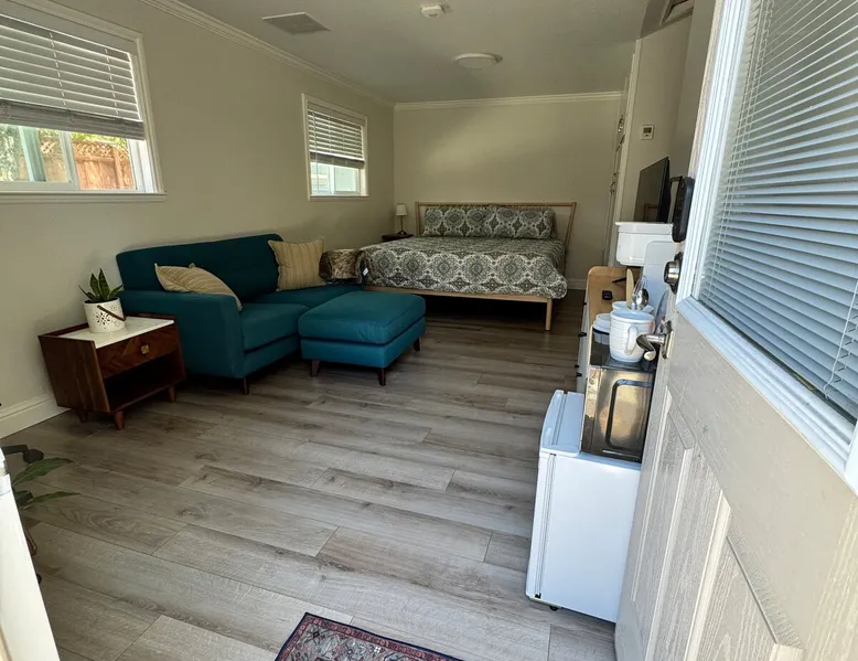 The Space: This private studio features a plush king-sized bed, a cozy seating area, and a small kitchenette offering coffee and tea. The modern bathroom is stocked with fresh towels and toiletries to make you feel right at home. Location: Nestled just minutes from downtown Pleasant Hill, you’re close to shopping, dining, hiking trails, and BART for easy access to San Francisco and the rest of the Bay Area. Perfect for solo travelers, couples, or remote workers. The space Our property is nestled down a long drive way, with a private gate. The studio has a separate entrance with a private bathroom and shared backyard. Parking on the property is available.