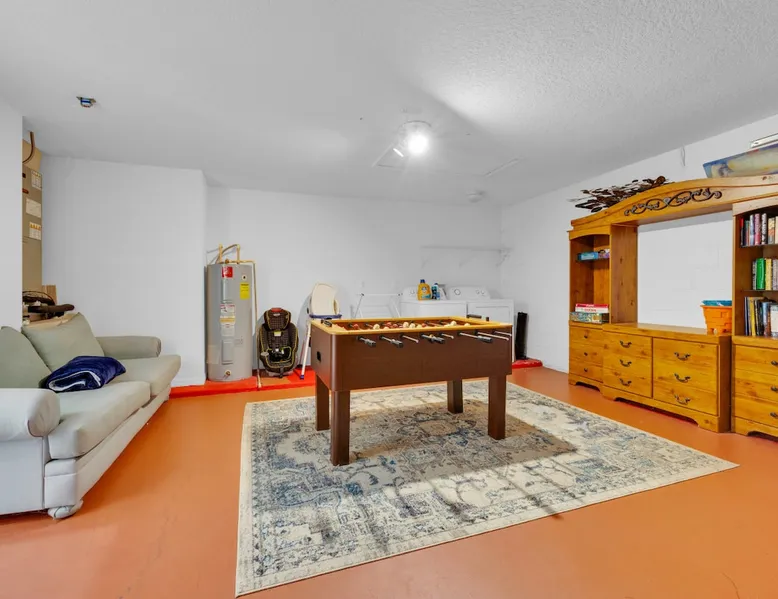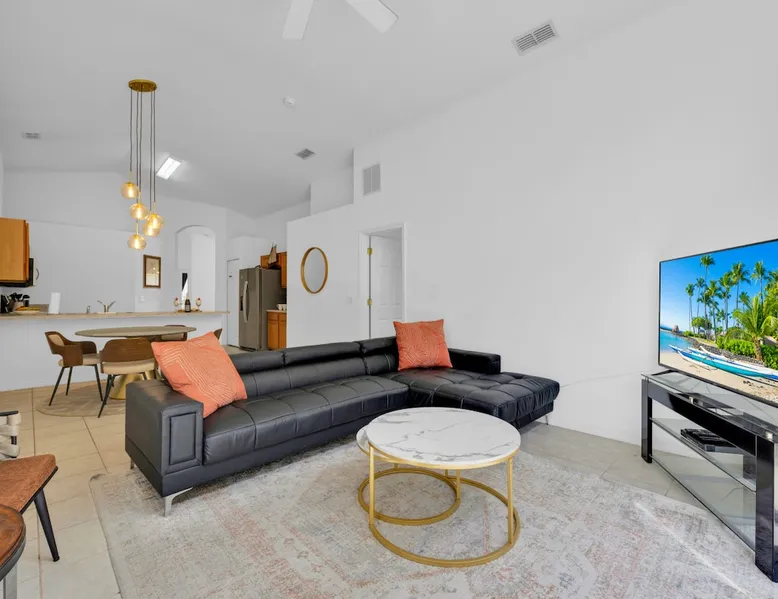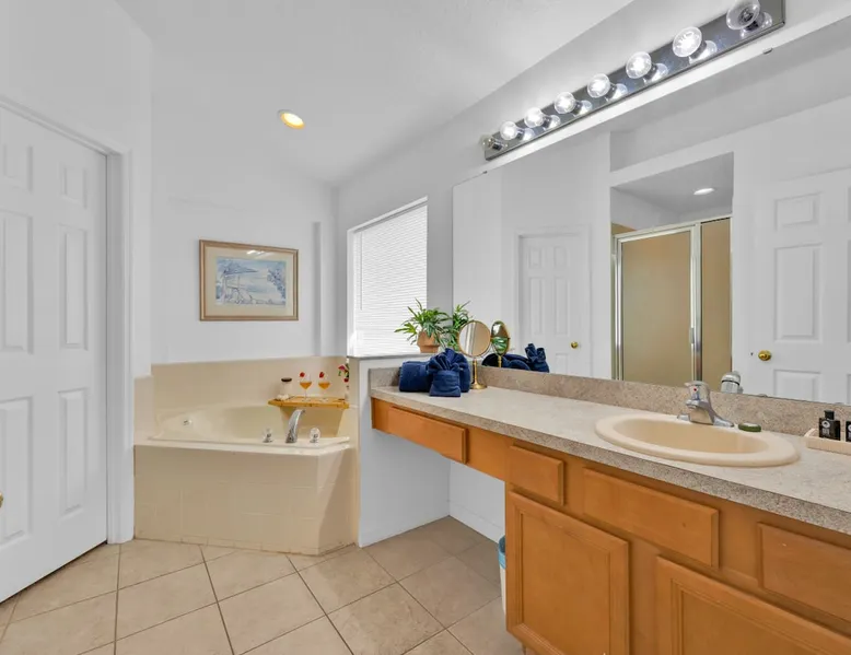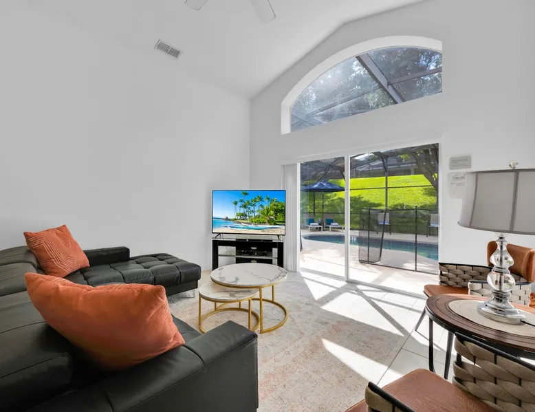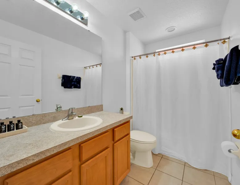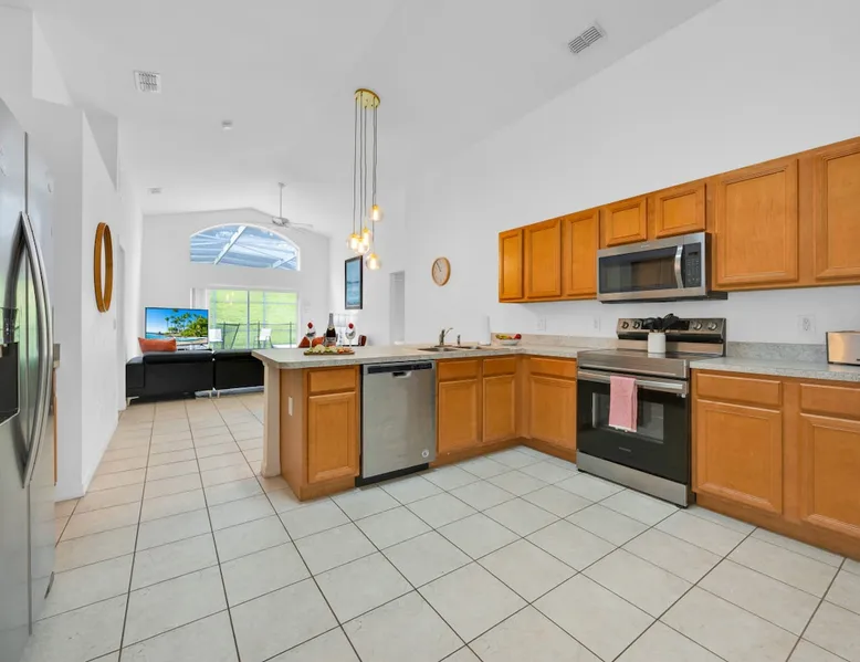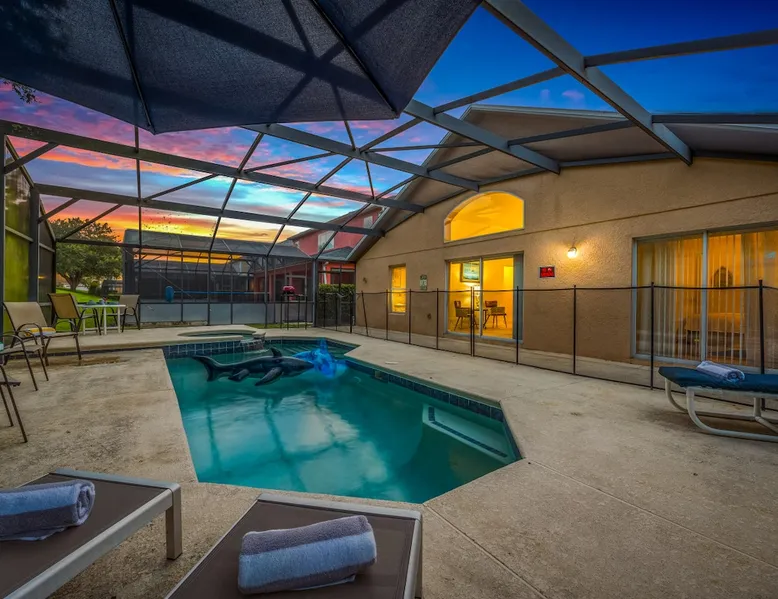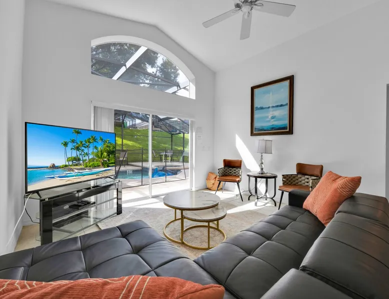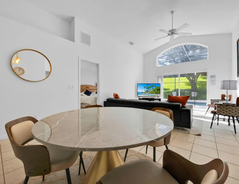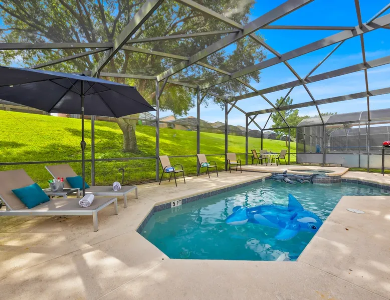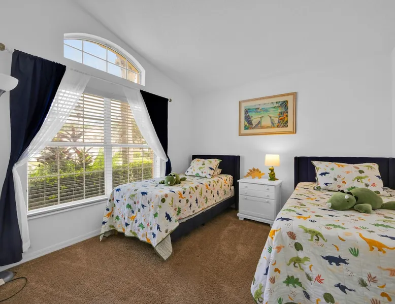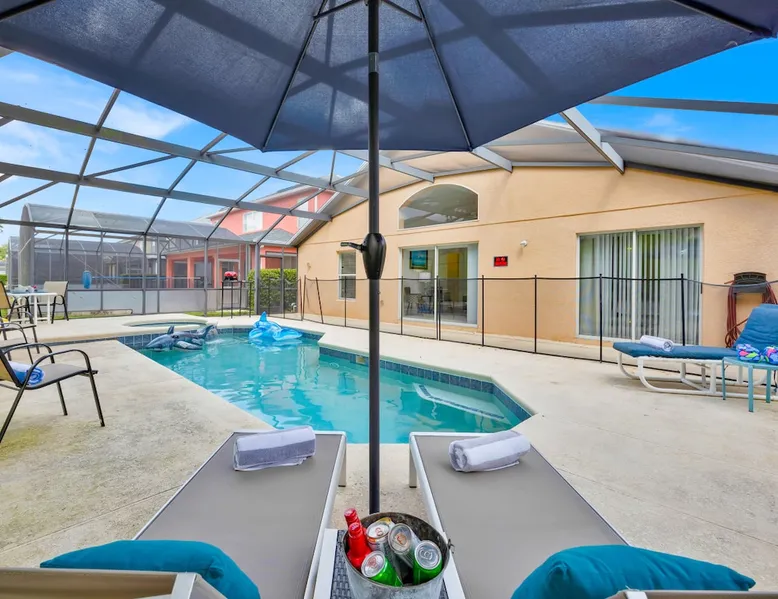 Make unforgettable memories at this 5-bedroom, 3-bath family retreat just minutes from Disney, Universal, and world-class golf. Start the day with magic at Magic Kingdom, then come home to your private pool, foosball table, and sunny lanai. Nestled in the gated Emerald Island Resort near shops, dining, and family favorites like ICON Park and Gatorland. This home offers the perfect blend of adventure and relaxation, everything you need for your dream Florida escape. The space ☆☆The Property: ☆☆ ☀ Proximity to Disney World & Universal Studios ☀ Unit size: 1,920 Sq Ft ☀Community Pool ☀ INDOOR LIVING: Smart TVs, ceiling fans, game room, ping-pong table, foosball table, books, 2 dining tables, breakfast bar, high chair ☀ OUTDOOR LIVING: Lanai, private pool, outdoor seating areas, portable electric grill ☀ KITCHEN: Dishwasher, stove, fridge, stainless steel appliances, drip coffee maker, Crockpot, microwave, toaster, hot water pot, ice maker, water filter, dishware/flatware, basic cooking essentials ☀ GENERAL: Free WiFi, central A/C, washer/dryer, iron/ironing board, towels/linens, hair dryers, complimentary toiletries, trash bags/paper towels ☀ FAQ: Step-free access, Ring doorbell device (facing out), 4 exterior security cameras (facing out), pet fee (paid pre-trip) ☆☆Sleeping Arrangements: ☆☆ ☀ Bedroom 1: King Bed ☀ Bedroom 2: Full Bed ☀ Bedroom 3: 2 Twin Beds ☀ Bedroom 4: 2 Twin Beds ☀ Bedroom 5: 2 Twin Beds ☀ Living Room: Sleeper Sofa ☀ Additional Sleeping: Crib ☆☆Parking: ☆☆ ☀2 vehicles can be parked in the driveway ☀ Additional street parking is also available on a first-come, first-served basis Guest access The entire house. Other things to note ☆☆House Rules: ☆☆ ☀ No smoking ☀ Pet friendly with a fee- $50 fee (+ fees & taxes) ☀ No events, parties, or large gatherings ☀ Must be at least 25 years old to book ☀ Photo ID may be required upon check-in ☆☆Additional Information: ☆☆ ☀ Step-free access ☀ Suitable for elderly and children ☀ Bathroom on first floor ☀ Your safety matters. This property features a Ring Doorbell device and 4 exterior security cameras. The Ring camera faces the front outdoor entry. There is one camera facing the driveway and front yard, and three cameras on the side of the home leading toward the lanai. These cameras are outward facing and do not look into interior spaces. They record video when motion is detected.