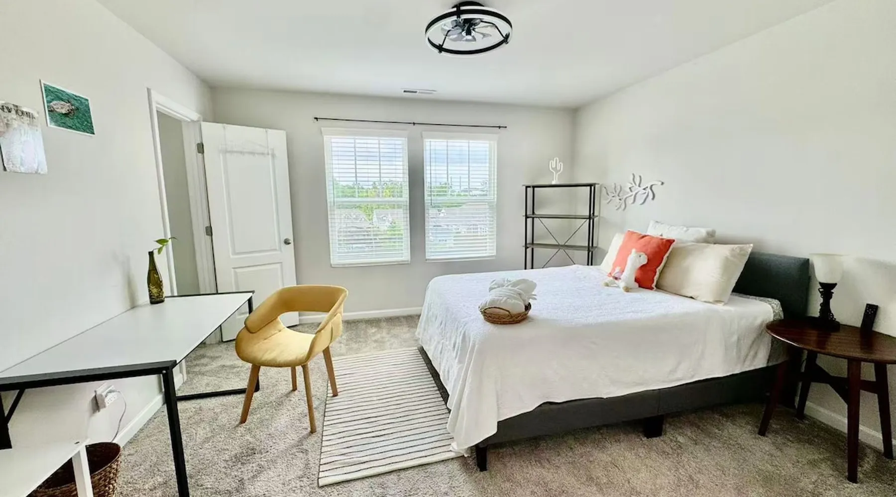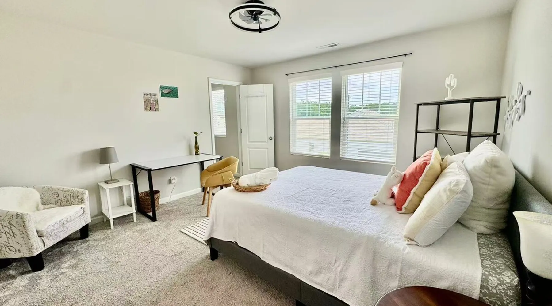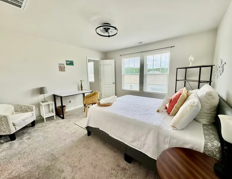 Unwind in our stylish bedroom conveniently located in the heart of Research Triangle Park. Perfect for business travelers, couples, and solo adventurers, this private room comfortably accommodates two guests and includes an fully automatic espresso and latte maker to start your mornings right. Google Fiber and Xbox equipped! Set in a secure, friendly neighborhood, a smoke-free environment. Service dogs welcome. We can negotiate special rates for long-term stays!