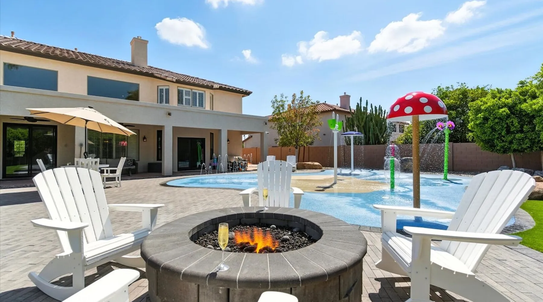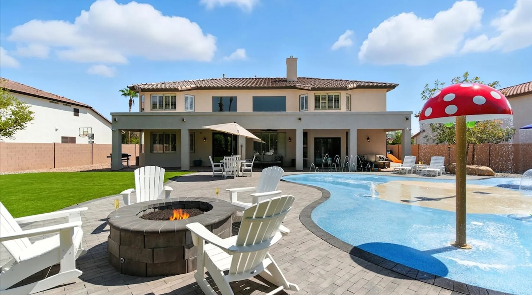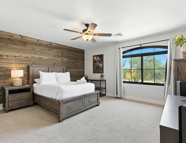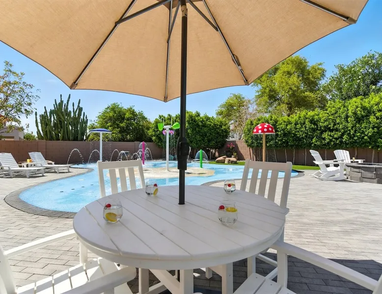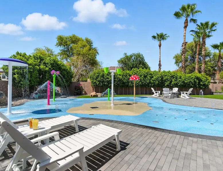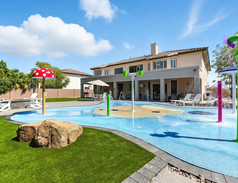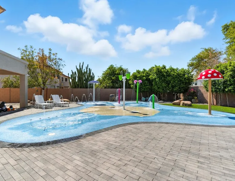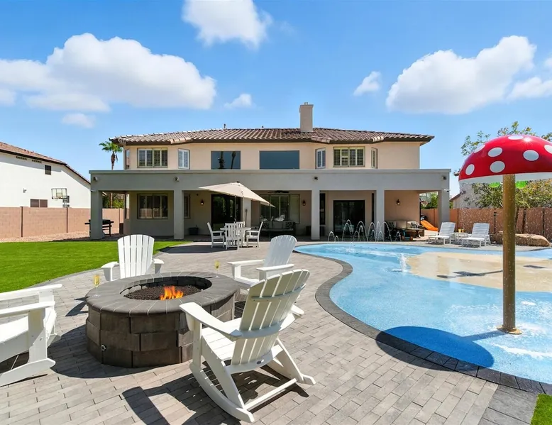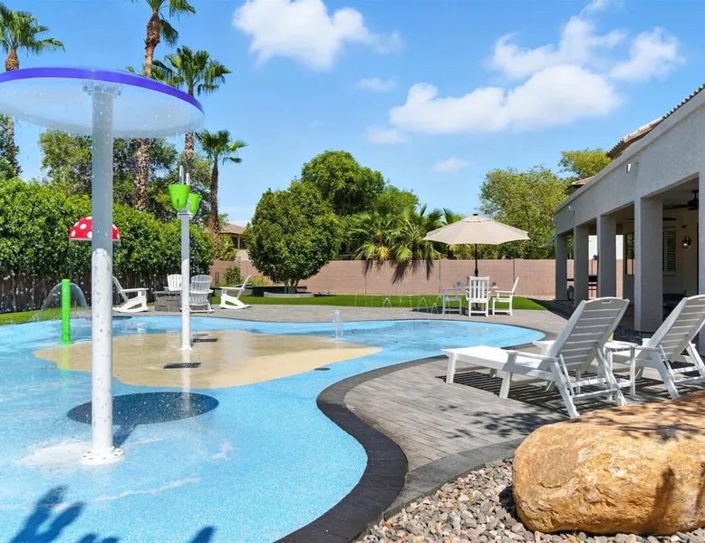 Welcome to Splash Canyon—a kid’s paradise and a parent’s perfect escape. Cool off in the splash pad, practice your shot on the basketball hoop, or gather around the fire pit after a backyard barbecue, perfect for holiday meals. Inside, the main living room is ready for PS5 battles, while the second invites board game nights. Whip up sweet treats, enjoy meals in the two dining areas, and stay active in the home gym with free weights, a bench, and a pull-up bar. The space IF YOU ARE INTERESTED IN THIS PROPERTY, PLEASE READ THE LISTING ENTIRELY. By booking, the guest agrees they have read all the details about the property and agree to our terms and conditions. ⭐ Amenities: - Private backyard with a splash pad, sun loungers, fire pit, and a basketball hoop - Private patio with outdoor seating and a flat top grill - Entertainment games including a PS5 gaming system, arcade games, and board games - 2 open floor living areas - Smart TVs - Personal gym with a Peloton bike, bench, pull-up bar, and free weights - 2 indoor dining areas and an outdoor dining area 🛋️ Living Areas: - 2 open concept living areas - Cozy furnishings - Smart TV - Fire place - Coffee table - Board games - PS5 gaming system 🍽️ Kitchen & Dining: - Fully equipped kitchen - Stainless steel appliances - Fridge, dishwasher, single oven, 4-burner stove, microwave, & toaster - Keurig coffee maker with coffee - Kitchen island with open counter space - Snow cone machine - Formal dining area for 8 guests - 2nd dining area for 4 guests - Outdoor dining area for 4 guests - Kitchen Starter Kit: 2 dishwashing tablet, dish soap, 1 dish sponge, 2 laundry detergent pods, disinfectant wipes, 2 paper towel rolls, 2 trash bags, 1 coffee bag, and 4 coffee filters. 🛌 Bedrooms: - Primary Bedroom: 1 King bed with cozy furnishings, Smart TV, workstation with a printer, access to the backyard, walk-in closet, and en-suite bathroom - 2nd Bedroom: 1 Full bed over 1 Full bed (bunk bed style) and 1 standalone Full bed with cozy furnishings, Smart TV, kids basketball hoop, arcade game, and a walk-in closet - 3rd Bedroom: 1 Full bed with a Smart TV, fireplace, giant beanbag chair, private balcony, and a closet - 4th Bedroom: 1 Full bed with a Smart TV, fireplace, and a walk-in closet - 5th Bedroom: 1 Full bed with a Smart TV, fireplace, workstation, walk-in closet, and Jack-and-Jill en-suite bathroom - 6th Bedroom: 1 Full bed with a Smart TV, closet, and Jack-and-Jill en-suite bathroom 🛁 Bathrooms: - Primary Bathroom: Dual vanity with a stand-in shower and bathtub - 2nd Bathroom: Dual vanity with a shower/tub combo - 3rd Bathroom: Jack-and-Jill style with a dual vanity and stand-in shower - Half Bathroom: Single vanity - Bathroom Starter Kits: 1 shampoo, 1 conditioner, 1 body wash, 1 body bar soap, 1 hand bar soap, 1 makeup wipe, 1 liner for trash can. 🚗 Parking: - 2 car garage - 2 additional parking spots in the driveway 🗺️ Explore the Area: - Walking Distance - 5 min walk: Quail Haven Park - Driving Distance - 6 mins: Tryst Cafe 6 mins: The Parlay Kitchen + Cocktails 6 mins: Pho Chandler 6 mins: Blue 32 Sports Grill 6 mins: Sunbird Golf Resort 7 mins: Manuel's Mexican Restaurant & Cantina 8 mins: Angie's Prime Grill and Angie's Lobster 8 mins: Jet's Pizza 10 mins: Osaka Japanese Steakhouse 10 mins: Taqueria Factory 11 mins: Ocotillo Golf Club 11 mins: Downtown Chandler 14 mins: Topgolf 18 mins: Downtown Gilbert 21 mins: Sloan Park 22 mins: Tempe Town Lake 24 mins: Arizona State University 25 mins: Tempe Diablo Stadium 26 mins: OdySea Aquarium 26 mins: Butterfly Wonderland 26 mins: Phoenix Zoo 27 mins: Talking Stick Resort and Casino 27 mins: Talking Stick Golf Club 27 mins: Octane Raceway 27 mins: Mavrix Entertainment 27 mins: Chaparral Park 27 mins: Old Town Scottsdale 27 mins: Desert Botanical Garden 28 mins: Phoenix Sky Harbor 28 mins: Entertainment District 28 mins: Scottsdale Stadium 29 mins: Scottsdale Fashion Square 29 mins: Papago Park 29 mins: Papago Golf 30 mins: Chase Field - Diamondbacks 30 mins: Footprint Center - Phoenix Suns 30 mins: Salt River Fields 30 mins: Paradise Valley, Arizona 30 mins: Arcadia, Arizona 31 mins: StarFire Golf Club 44 mins: State Farm Stadium - Arizona Cardinals Add Ons: - Air Mattresses ($50 - 1 per reservation) - GoodNight Stay is partnered with the best baby equipment rental service for additional equipment! Please inquire if you'd like to take advantage of this amenity using our special link. Please note: This is an add-on and not included in your reservation. Additional House Rules: - Booking guests must be at least 25 years old. - Same-day move-ins shall not be honored after 10 am Arizona Time. - All guests with a confirmed criminal record shall be declined and asked to cancel the booking at their own expense. - The guest agrees to provide identity authentication via a third-party platform operating for GoodNight Stay. They will authenticate the name, address, phone number, and photo ID verification. If this is not provided within 48 hours of booking, GoodNight Stay has the right to cancel the booking without penalty. - Maximum of 2 pets under 35lbs each, $100 fee per pet required. - Unfortunately, additional starter kit items cannot be provided if requested as these are to kick-start your stay. - All listed amenities are to be used at the guest’s risk. The homeowner and GoodNight Stay are not liable in any way for the risk, danger, injury, or damages caused to the other party. - Parties, events, or weddings are not allowed. TPT License Number:21617555 Chandler License Number:310122 Guest access Guests have access to the entire property and outdoor space. Other things to note All our properties include all the essentials and needs to allow for a comfortable and enjoyable stay! The items listed below are provided in every single one of our properties: o Starter Kits for kitchen and bathrooms! - Kitchen set includes: 2 dishwashing tablet, dish soap, 1 dish sponge, 2 laundry det