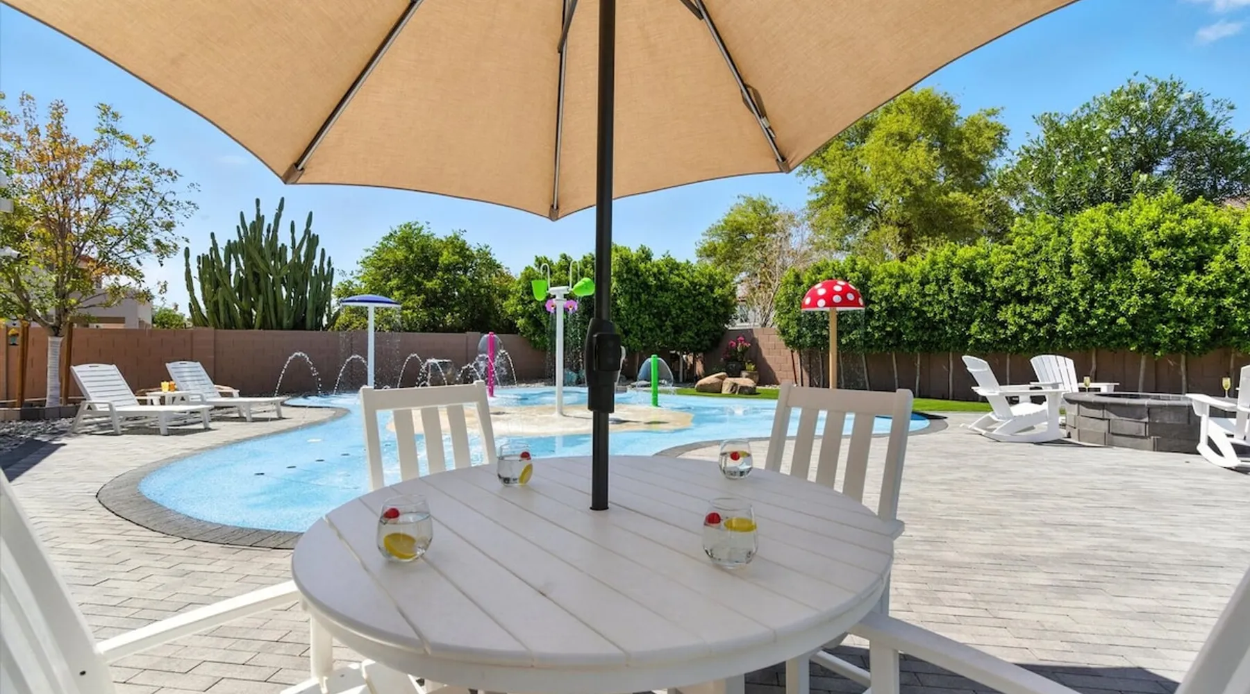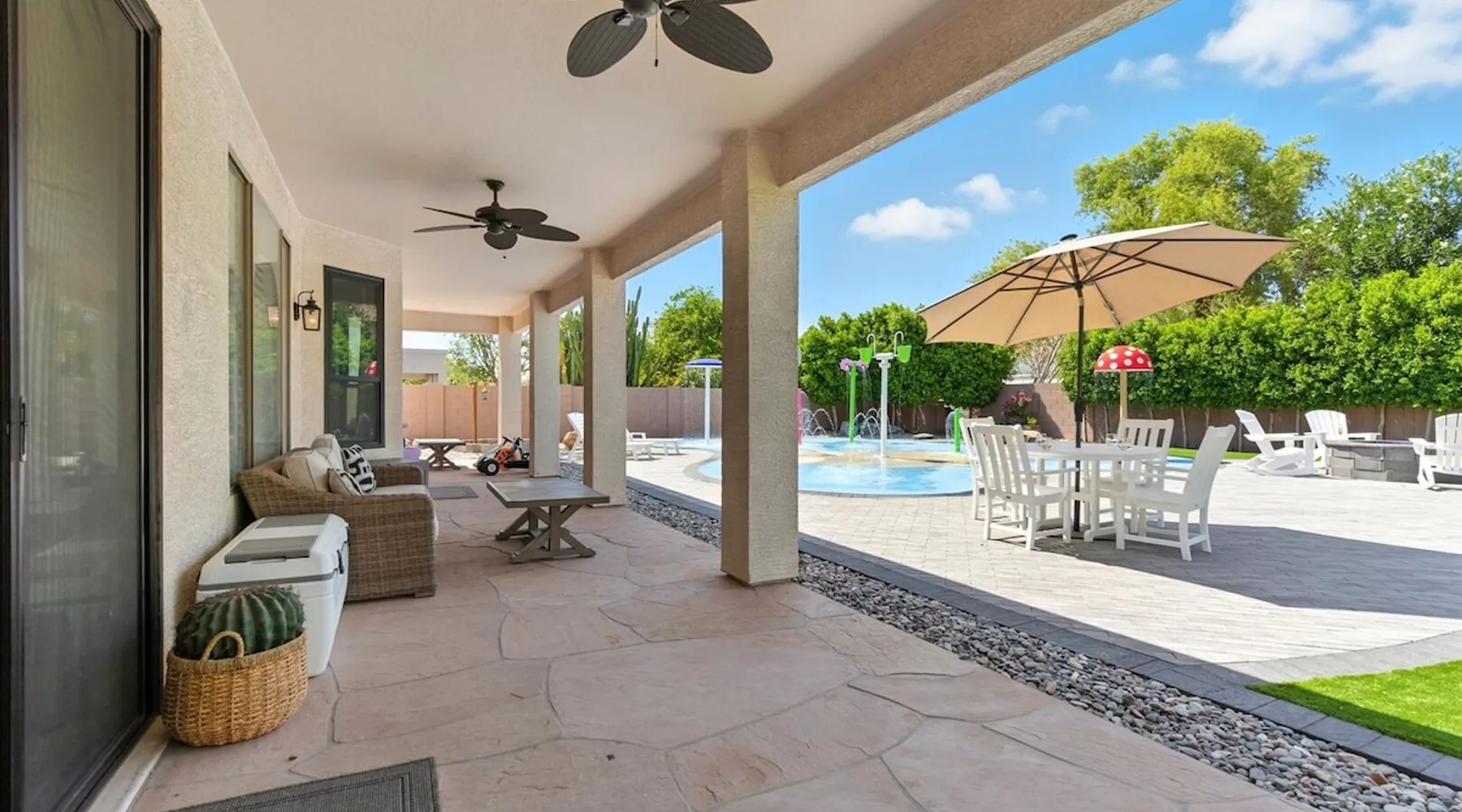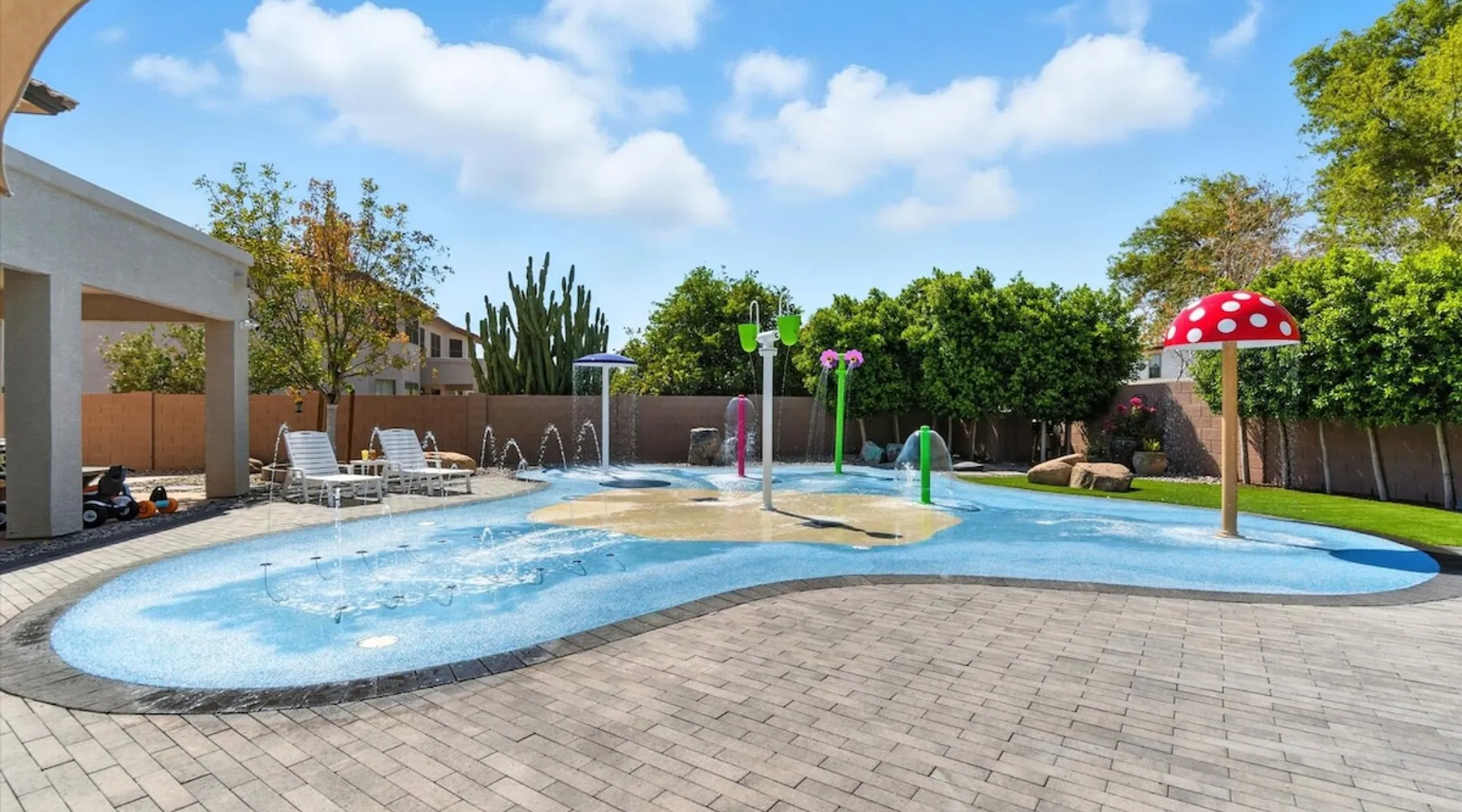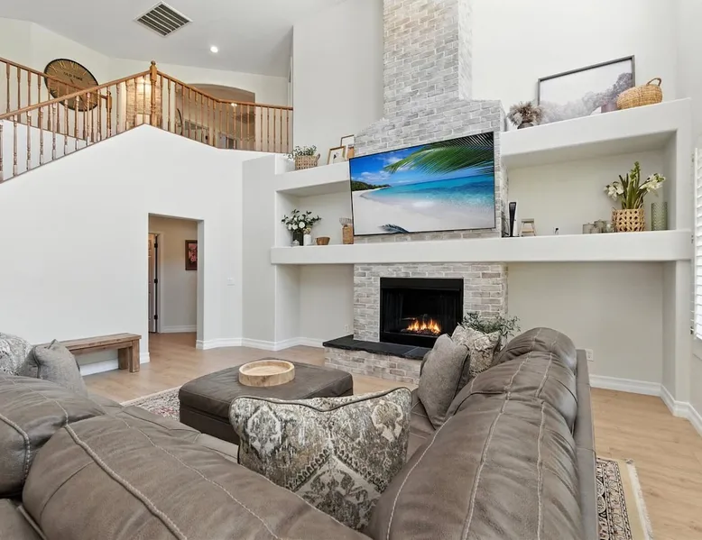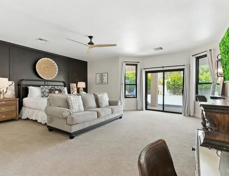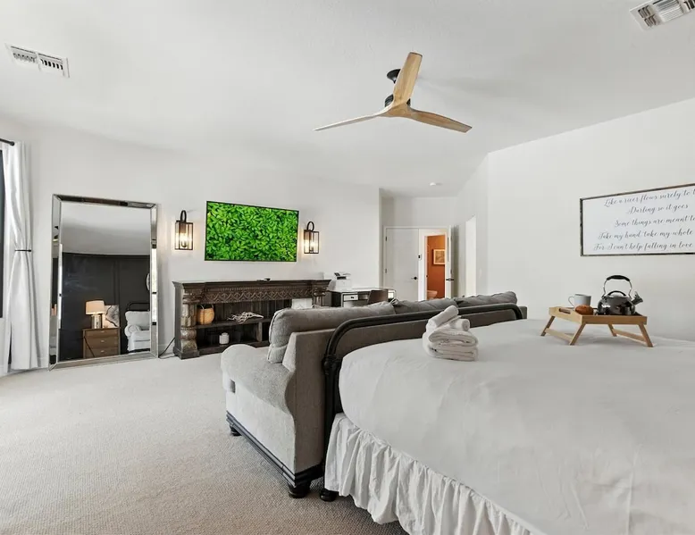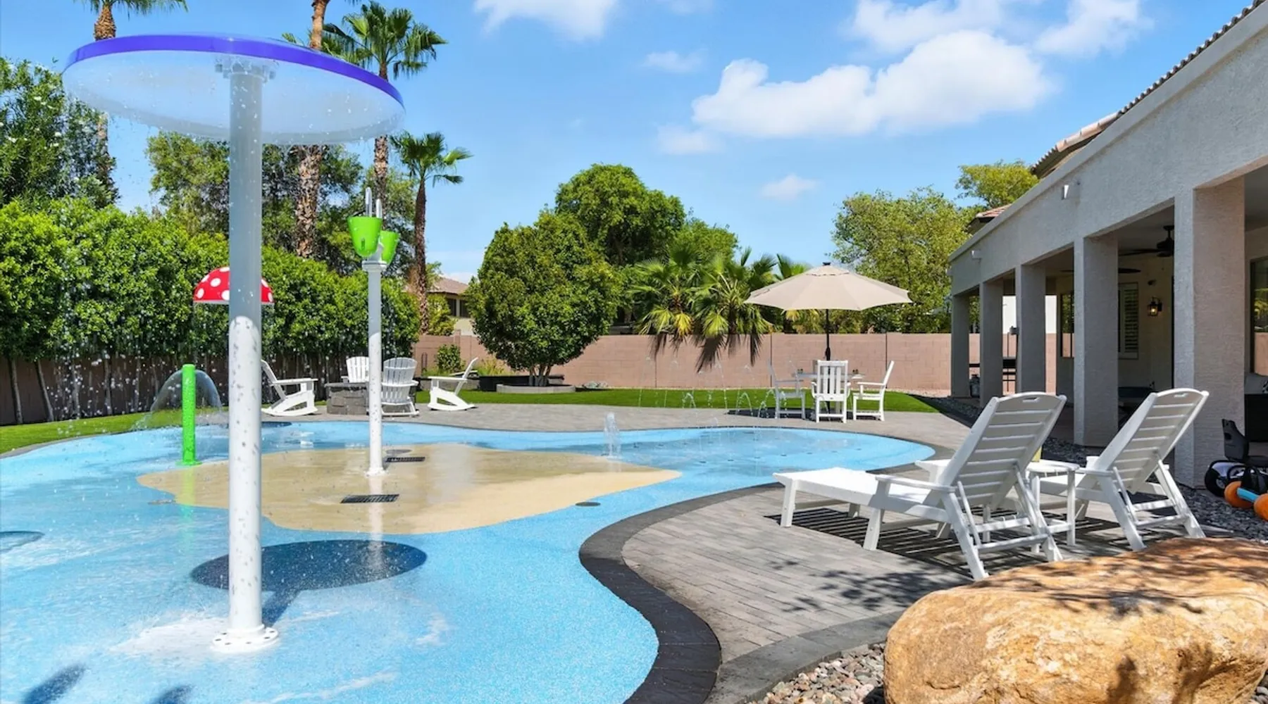 Welcome to Splash Canyon—a kid’s paradise and a parent’s perfect escape. Cool off in the splash pad, practice your shot on the basketball hoop, or gather around the fire pit after a backyard barbecue, perfect for holiday meals. Inside, the main living room is ready for PS5 battles, while the second invites board game nights. Whip up sweet treats, enjoy meals in the two dining areas, and stay active in the home gym with free weights, a bench, and a pull-up bar. The space IF YOU ARE INTERESTED IN THIS PROPERTY, PLEASE READ THE LISTING ENTIRELY. By booking, the guest agrees they have read all the details about the property and agree to our terms and conditions. ⭐ Amenities: - Private backyard with a splash pad, sun loungers, fire pit, and a basketball hoop - Private patio with outdoor seating and a flat top grill - Entertainment games including a PS5 gaming system, arcade games, and board games - 2 open floor living areas - Smart TVs - Personal gym with a Peloton bike, bench, pull-up bar, and free weights - 2 indoor dining areas and an outdoor dining area 🛋️ Living Areas: - 2 open concept living areas - Cozy furnishings - Smart TV - Fire place - Coffee table - Board games - PS5 gaming system 🍽️ Kitchen & Dining: - Fully equipped kitchen - Stainless steel appliances - Fridge, dishwasher, single oven, 4-burner stove, microwave, & toaster - Keurig coffee maker with coffee - Kitchen island with open counter space - Snow cone machine - Formal dining area for 8 guests - 2nd dining area for 4 guests - Outdoor dining area for 4 guests - Kitchen Starter Kit: 2 dishwashing tablet, dish soap, 1 dish sponge, 2 laundry detergent pods, disinfectant wipes, 2 paper towel rolls, 2 trash bags, 1 coffee bag, and 4 coffee filters. 🛌 Bedrooms: - Primary Bedroom: 1 King bed with cozy furnishings, Smart TV, workstation with a printer, access to the backyard, walk-in closet, and en-suite bathroom - 2nd Bedroom: 1 Full bed over 1 Full bed (bunk bed style) and 1 standalone Full bed with cozy furnishings, Smart TV, kids basketball hoop, arcade game, and a walk-in closet - 3rd Bedroom: 1 Full bed with a Smart TV, fireplace, giant beanbag chair, private balcony, and a closet - 4th Bedroom: 1 Full bed with a Smart TV, fireplace, and a walk-in closet - 5th Bedroom: 1 Full bed with a Smart TV, fireplace, workstation, walk-in closet, and Jack-and-Jill en-suite bathroom - 6th Bedroom: 1 Full bed with a Smart TV, closet, and Jack-and-Jill en-suite bathroom 🛁 Bathrooms: - Primary Bathroom: Dual vanity with a stand-in shower and bathtub - 2nd Bathroom: Dual vanity with a shower/tub combo - 3rd Bathroom: Jack-and-Jill style with a dual vanity and stand-in shower - Half Bathroom: Single vanity - Bathroom Starter Kits: 1 shampoo, 1 conditioner, 1 body wash, 1 body bar soap, 1 hand bar soap, 1 makeup wipe, 1 liner for trash can. 🚗 Parking: - 2 car garage - 2 additional parking spots in the driveway 🗺️ Explore the Area: - Walking Distance - 5 min walk: Quail Haven Park - Driving Distance - 6 mins: Tryst Cafe 6 mins: The Parlay Kitchen + Cocktails 6 mins: Pho Chandler 6 mins: Blue 32 Sports Grill 6 mins: Sunbird Golf Resort 7 mins: Manuel's Mexican Restaurant & Cantina 8 mins: Angie's Prime Grill and Angie's Lobster 8 mins: Jet's Pizza 10 mins: Osaka Japanese Steakhouse 10 mins: Taqueria Factory 11 mins: Ocotillo Golf Club 11 mins: Downtown Chandler 14 mins: Topgolf 18 mins: Downtown Gilbert 21 mins: Sloan Park 22 mins: Tempe Town Lake 24 mins: Arizona State University 25 mins: Tempe Diablo Stadium 26 mins: OdySea Aquarium 26 mins: Butterfly Wonderland 26 mins: Phoenix Zoo 27 mins: Talking Stick Resort and Casino 27 mins: Talking Stick Golf Club 27 mins: Octane Raceway 27 mins: Mavrix Entertainment 27 mins: Chaparral Park 27 mins: Old Town Scottsdale 27 mins: Desert Botanical Garden 28 mins: Phoenix Sky Harbor 28 mins: Entertainment District 28 mins: Scottsdale Stadium 29 mins: Scottsdale Fashion Square 29 mins: Papago Park 29 mins: Papago Golf 30 mins: Chase Field - Diamondbacks 30 mins: Footprint Center - Phoenix Suns 30 mins: Salt River Fields 30 mins: Paradise Valley, Arizona 30 mins: Arcadia, Arizona 31 mins: StarFire Golf Club 44 mins: State Farm Stadium - Arizona Cardinals Add Ons: - Air Mattresses ($50 - 1 per reservation) - GoodNight Stay is partnered with the best baby equipment rental service for additional equipment! Please inquire if you'd like to take advantage of this amenity using our special link. Please note: This is an add-on and not included in your reservation. Additional House Rules: - Booking guests must be at least 25 years old. - Same-day move-ins shall not be honored after 10 am Arizona Time. - All guests with a confirmed criminal record shall be declined and asked to cancel the booking at their own expense. - The guest agrees to provide identity authentication via a third-party platform operating for GoodNight Stay. They will authenticate the name, address, phone number, and photo ID verification. If this is not provided within 48 hours of booking, GoodNight Stay has the right to cancel the booking without penalty. - Maximum of 2 pets under 35lbs each, $100 fee per pet required. - Unfortunately, additional starter kit items cannot be provided if requested as these are to kick-start your stay. - All listed amenities are to be used at the guest’s risk. The homeowner and GoodNight Stay are not liable in any way for the risk, danger, injury, or damages caused to the other party. - Parties, events, or weddings are not allowed. TPT License Number:21617555 Chandler License Number:310122 Guest access Guests have access to the entire property and outdoor space. Other things to note All our properties include all the essentials and needs to allow for a comfortable and enjoyable stay! The items listed below are provided in every single one of our properties: o Starter Kits for kitchen and bathrooms! - Kitchen set includes: 2 dishwashing tablet, dish soap, 1 dish sponge, 2 laundry det