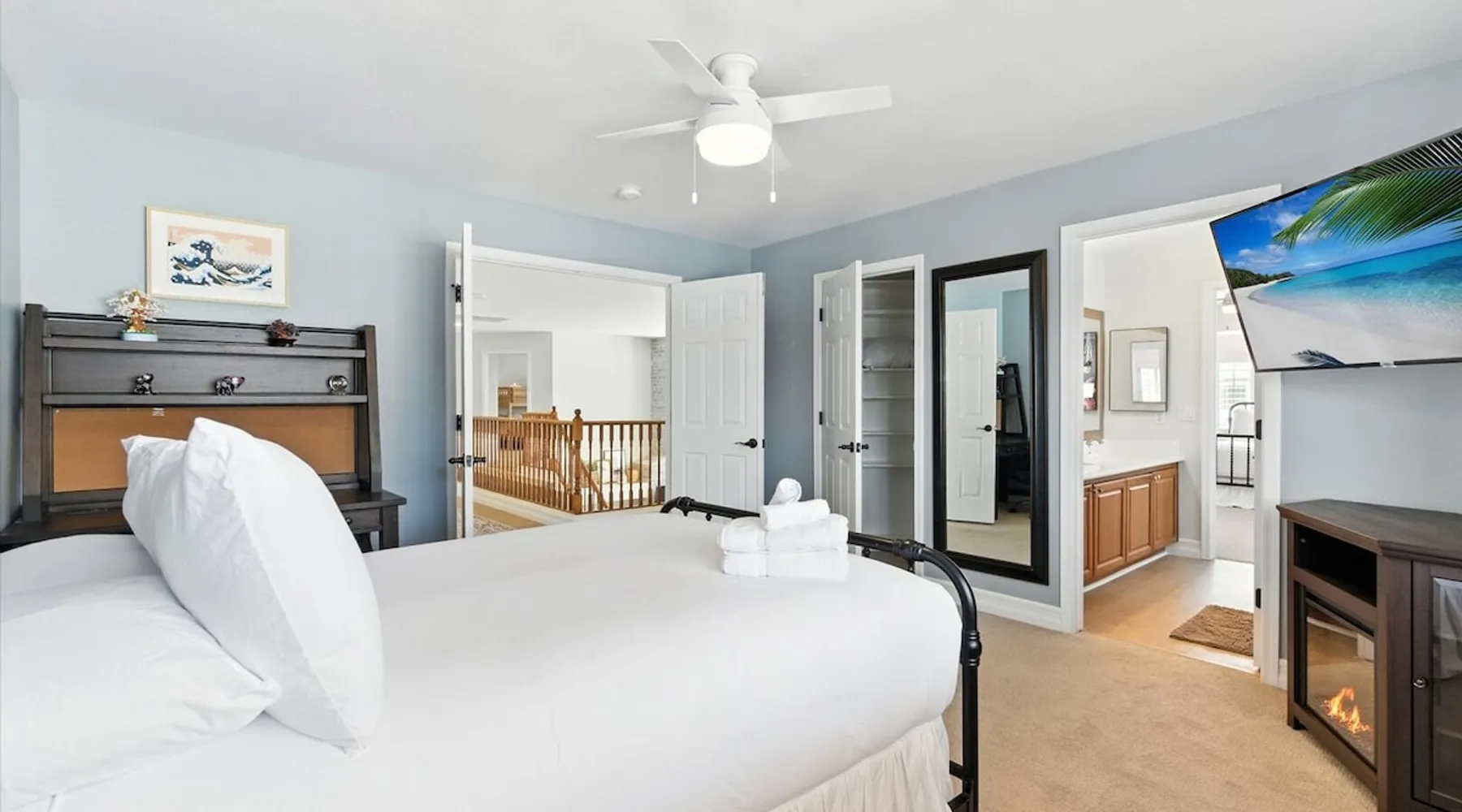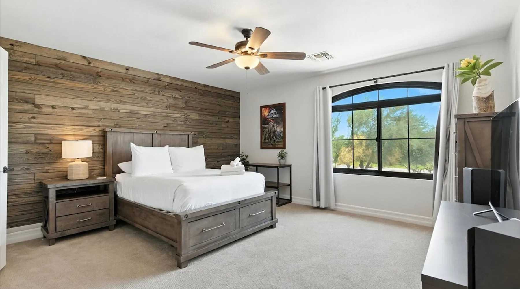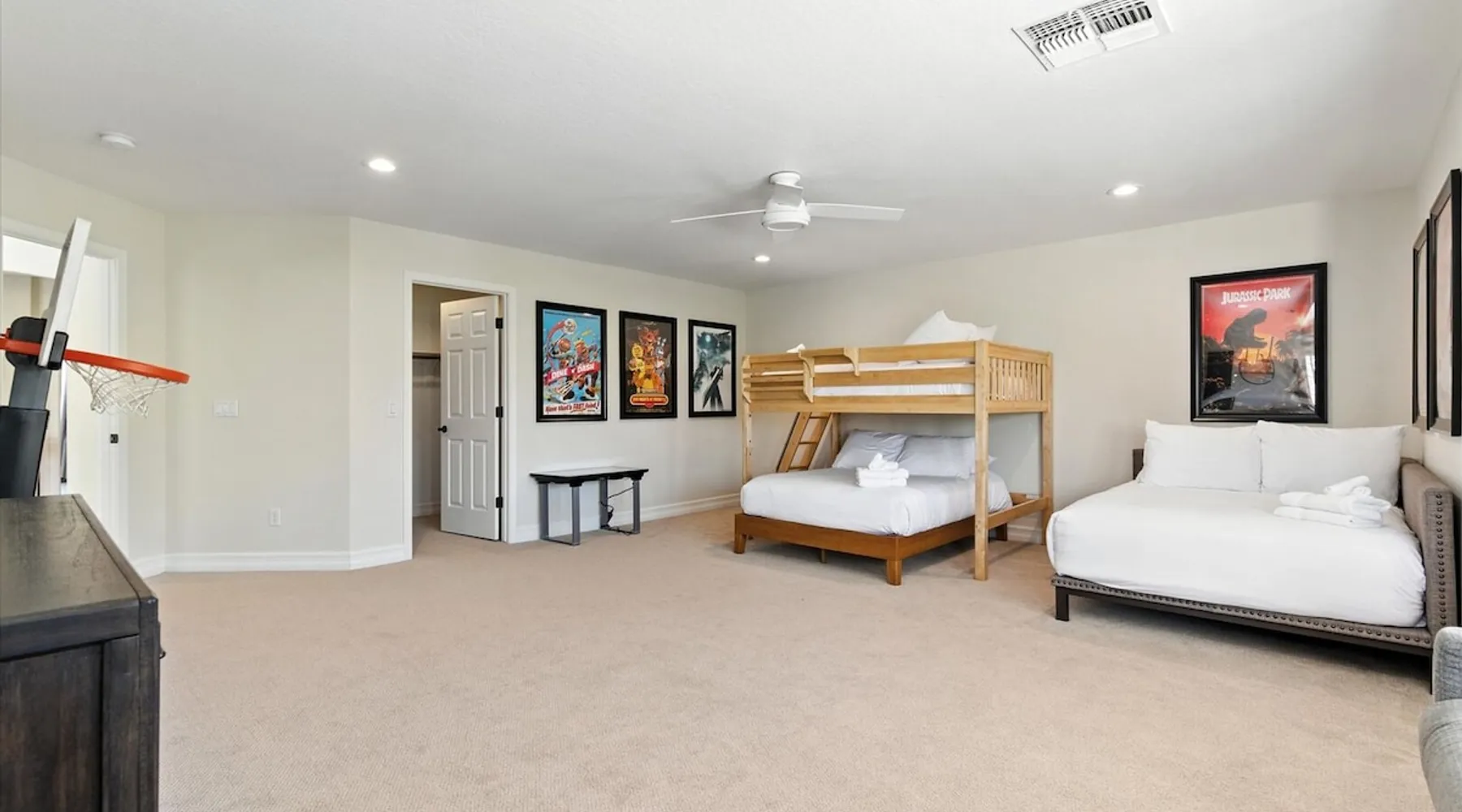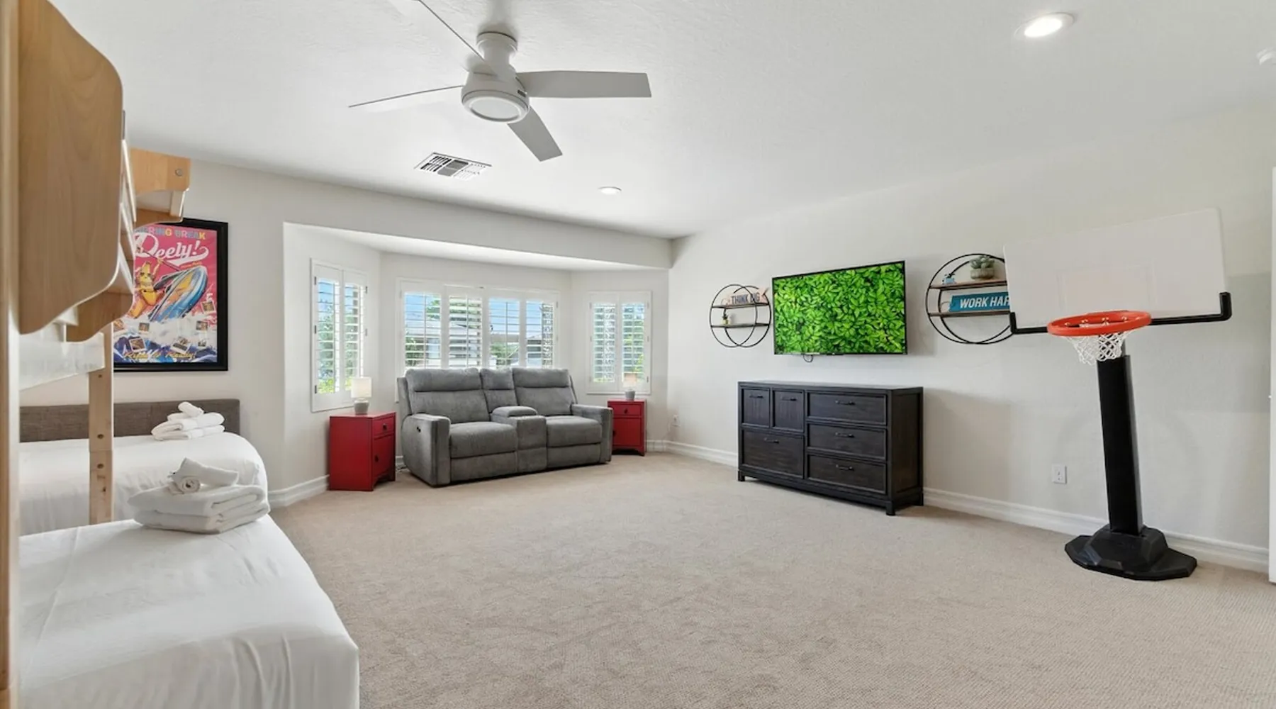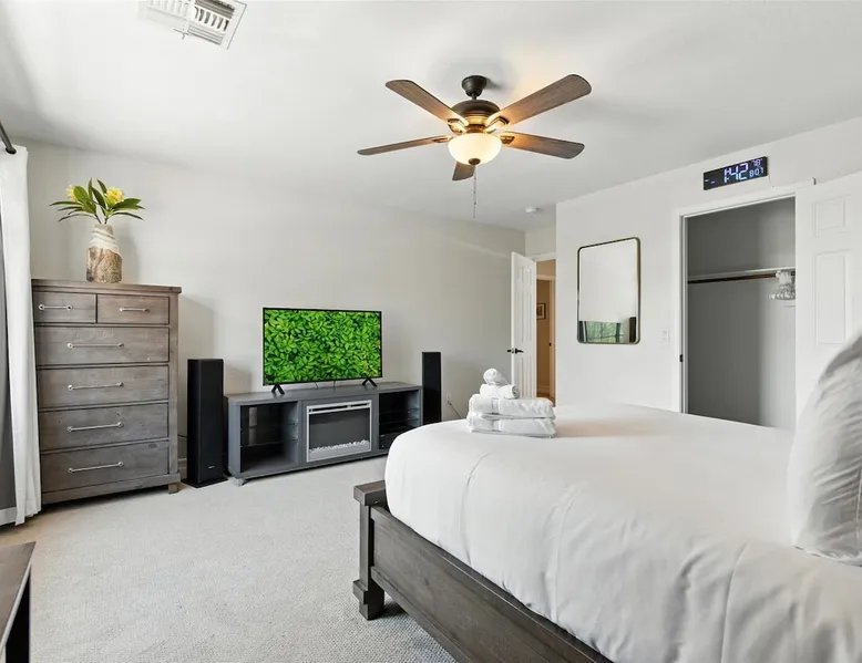 Welcome to Splash Canyon—a kid’s paradise and a parent’s perfect escape. Cool off in the splash pad, practice your shot on the basketball hoop, or gather around the fire pit after a backyard barbecue, perfect for holiday meals. Inside, the main living room is ready for PS5 battles, while the second invites board game nights. Whip up sweet treats, enjoy meals in the two dining areas, and stay active in the home gym with free weights, a bench, and a pull-up bar. The space IF YOU ARE INTERESTED IN THIS PROPERTY, PLEASE READ THE LISTING ENTIRELY. By booking, the guest agrees they have read all the details about the property and agree to our terms and conditions. ⭐ Amenities: - Private backyard with a splash pad, sun loungers, fire pit, and a basketball hoop - Private patio with outdoor seating and a flat top grill - Entertainment games including a PS5 gaming system, arcade games, and board games - 2 open floor living areas - Smart TVs - Personal gym with a Peloton bike, bench, pull-up bar, and free weights - 2 indoor dining areas and an outdoor dining area 🛋️ Living Areas: - 2 open concept living areas - Cozy furnishings - Smart TV - Fire place - Coffee table - Board games - PS5 gaming system 🍽️ Kitchen & Dining: - Fully equipped kitchen - Stainless steel appliances - Fridge, dishwasher, single oven, 4-burner stove, microwave, & toaster - Keurig coffee maker with coffee - Kitchen island with open counter space - Snow cone machine - Formal dining area for 8 guests - 2nd dining area for 4 guests - Outdoor dining area for 4 guests - Kitchen Starter Kit: 2 dishwashing tablet, dish soap, 1 dish sponge, 2 laundry detergent pods, disinfectant wipes, 2 paper towel rolls, 2 trash bags, 1 coffee bag, and 4 coffee filters. 🛌 Bedrooms: - Primary Bedroom: 1 King bed with cozy furnishings, Smart TV, workstation with a printer, access to the backyard, walk-in closet, and en-suite bathroom - 2nd Bedroom: 1 Full bed over 1 Full bed (bunk bed style) and 1 standalone Full bed with cozy furnishings, Smart TV, kids basketball hoop, arcade game, and a walk-in closet - 3rd Bedroom: 1 Full bed with a Smart TV, fireplace, giant beanbag chair, private balcony, and a closet - 4th Bedroom: 1 Full bed with a Smart TV, fireplace, and a walk-in closet - 5th Bedroom: 1 Full bed with a Smart TV, fireplace, workstation, walk-in closet, and Jack-and-Jill en-suite bathroom - 6th Bedroom: 1 Full bed with a Smart TV, closet, and Jack-and-Jill en-suite bathroom 🛁 Bathrooms: - Primary Bathroom: Dual vanity with a stand-in shower and bathtub - 2nd Bathroom: Dual vanity with a shower/tub combo - 3rd Bathroom: Jack-and-Jill style with a dual vanity and stand-in shower - Half Bathroom: Single vanity - Bathroom Starter Kits: 1 shampoo, 1 conditioner, 1 body wash, 1 body bar soap, 1 hand bar soap, 1 makeup wipe, 1 liner for trash can. 🚗 Parking: - 2 car garage - 2 additional parking spots in the driveway 🗺️ Explore the Area: - Walking Distance - 5 min walk: Quail Haven Park - Driving Distance - 6 mins: Tryst Cafe 6 mins: The Parlay Kitchen + Cocktails 6 mins: Pho Chandler 6 mins: Blue 32 Sports Grill 6 mins: Sunbird Golf Resort 7 mins: Manuel's Mexican Restaurant & Cantina 8 mins: Angie's Prime Grill and Angie's Lobster 8 mins: Jet's Pizza 10 mins: Osaka Japanese Steakhouse 10 mins: Taqueria Factory 11 mins: Ocotillo Golf Club 11 mins: Downtown Chandler 14 mins: Topgolf 18 mins: Downtown Gilbert 21 mins: Sloan Park 22 mins: Tempe Town Lake 24 mins: Arizona State University 25 mins: Tempe Diablo Stadium 26 mins: OdySea Aquarium 26 mins: Butterfly Wonderland 26 mins: Phoenix Zoo 27 mins: Talking Stick Resort and Casino 27 mins: Talking Stick Golf Club 27 mins: Octane Raceway 27 mins: Mavrix Entertainment 27 mins: Chaparral Park 27 mins: Old Town Scottsdale 27 mins: Desert Botanical Garden 28 mins: Phoenix Sky Harbor 28 mins: Entertainment District 28 mins: Scottsdale Stadium 29 mins: Scottsdale Fashion Square 29 mins: Papago Park 29 mins: Papago Golf 30 mins: Chase Field - Diamondbacks 30 mins: Footprint Center - Phoenix Suns 30 mins: Salt River Fields 30 mins: Paradise Valley, Arizona 30 mins: Arcadia, Arizona 31 mins: StarFire Golf Club 44 mins: State Farm Stadium - Arizona Cardinals Add Ons: - Air Mattresses ($50 - 1 per reservation) - GoodNight Stay is partnered with the best baby equipment rental service for additional equipment! Please inquire if you'd like to take advantage of this amenity using our special link. Please note: This is an add-on and not included in your reservation. Additional House Rules: - Booking guests must be at least 25 years old. - Same-day move-ins shall not be honored after 10 am Arizona Time. - All guests with a confirmed criminal record shall be declined and asked to cancel the booking at their own expense. - The guest agrees to provide identity authentication via a third-party platform operating for GoodNight Stay. They will authenticate the name, address, phone number, and photo ID verification. If this is not provided within 48 hours of booking, GoodNight Stay has the right to cancel the booking without penalty. - Maximum of 2 pets under 35lbs each, $100 fee per pet required. - Unfortunately, additional starter kit items cannot be provided if requested as these are to kick-start your stay. - All listed amenities are to be used at the guest’s risk. The homeowner and GoodNight Stay are not liable in any way for the risk, danger, injury, or damages caused to the other party. - Parties, events, or weddings are not allowed. TPT License Number:21617555 Chandler License Number:310122 Guest access Guests have access to the entire property and outdoor space. Other things to note All our properties include all the essentials and needs to allow for a comfortable and enjoyable stay! The items listed below are provided in every single one of our properties: o Starter Kits for kitchen and bathrooms! - Kitchen set includes: 2 dishwashing tablet, dish soap, 1 dish sponge, 2 laundry det