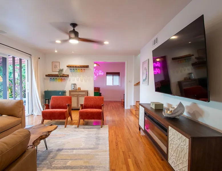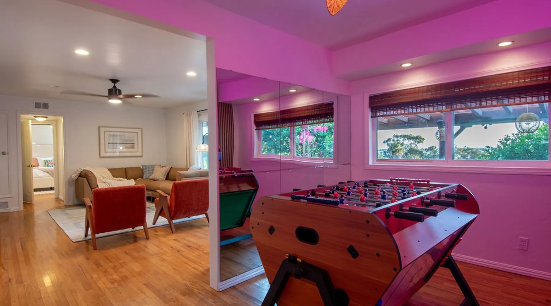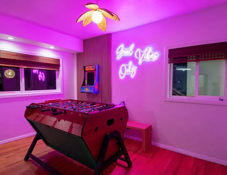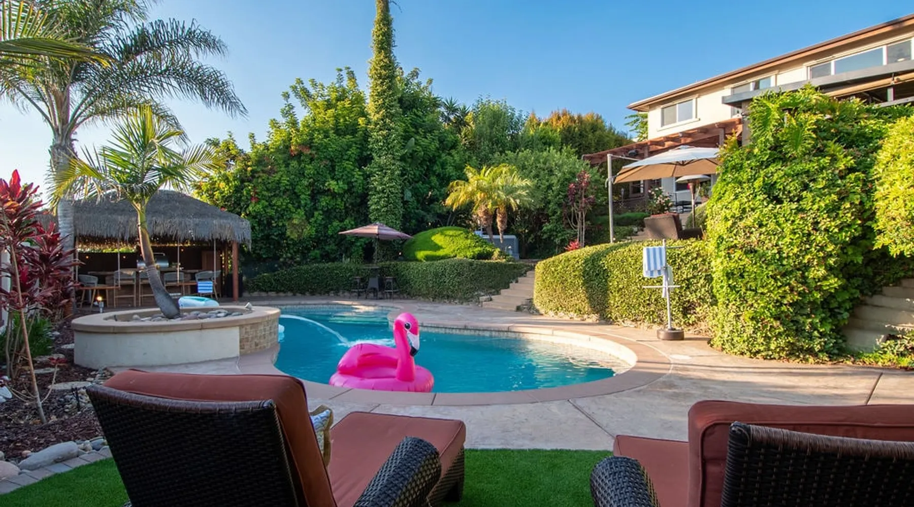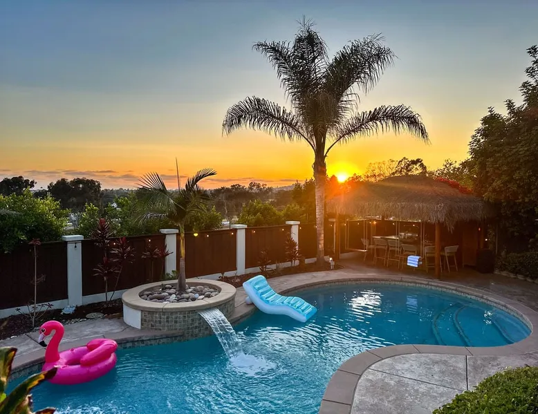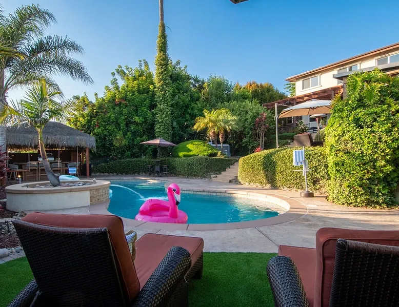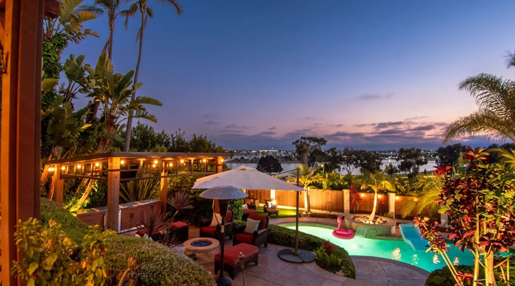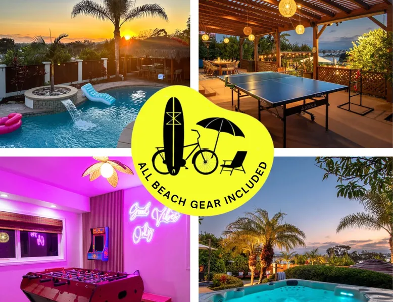 Why book a standard stay when you can unwind in your own private oasis? This is far from a typical vacation rental—step into a stunning, designer retreat with panoramic sunset views over Mission Bay, offering the perfect blend of luxury and relaxation right in the heart of the city. Enjoy unlimited bikes, surfboards, and paddleboards—your adventure begins here. The estate features: The space The estate features: - Resort-style backyard: custom-designed pool, jacuzzi, Palapa bar with built in BBQ - Multiple outdoor lounge areas with TVs, ping pong table, and cozy fire pit - Alfresco dining under glowing string lights for effortless entertaining - Five spacious bedrooms, each with boutique designer touches (Main level - Two queens and twin over full bunk, downstairs: two Kings) - Recently remodeled interiors by professional design team - Gourmet kitchen, and high-end appliances - Massive 75” smart TV and gorgeous fireplace for ultimate relaxation - Game room with multi-game table and video arcade Book your unforgettable stay—luxury, style, and the best of the California coast await! ** POOL AND SPA ** The home features a gorgeous outdoor unheated pool. Many guests find it refreshing in the summer. The pool and spa are cleaned and serviced before each stay for your convenience. **GUEST ACCESS** We use a smart lock and you will recieve the code upon arrival to the home under the "check-in" information in our guest portal. Please note there are security cameras on the front exterior of the home. **INTERACTION WITH GUESTS** Owners live very close by, and will treat you like family. We’ll do anything and everything it takes to ensure your stay is remembered as one of your best trips ever! We look forward to hosting you! ** HOUSE RULES ** No smoking indoors No events, parties or large gatherings (including bachelorette parties) Only the number of guests on the reservation are permitted on the property unless prior written approval. Must be at least 25 years old to book No hot tub/pool or outside music after 10pm No Pets ** CANCELLATION POLICY ** Reservations canceled at least 14 days before the start of the stay will receive 100% refund. Reservations canceled at least 7 days before the start of the stay will receive 50% refund. ** LOCATION ** Our home is located in the best areas in San Diego, offering great proximity to most attractions and fantastic views. Our central location means you will occasionally hear the sounds of the city. We provide noise machines in all of the bedrooms if you are a light sleeper. If you are very sensitive to noise, staying anywhere along the I-5 cooridor may not be the right choice for you. Guest access We use a smart lock and you will recieve the code upon arrival to the home under the "check-in" information in our guest portal. Please note there are security cameras on the front exterior of the home. Registration Details STR-11485L, 659160