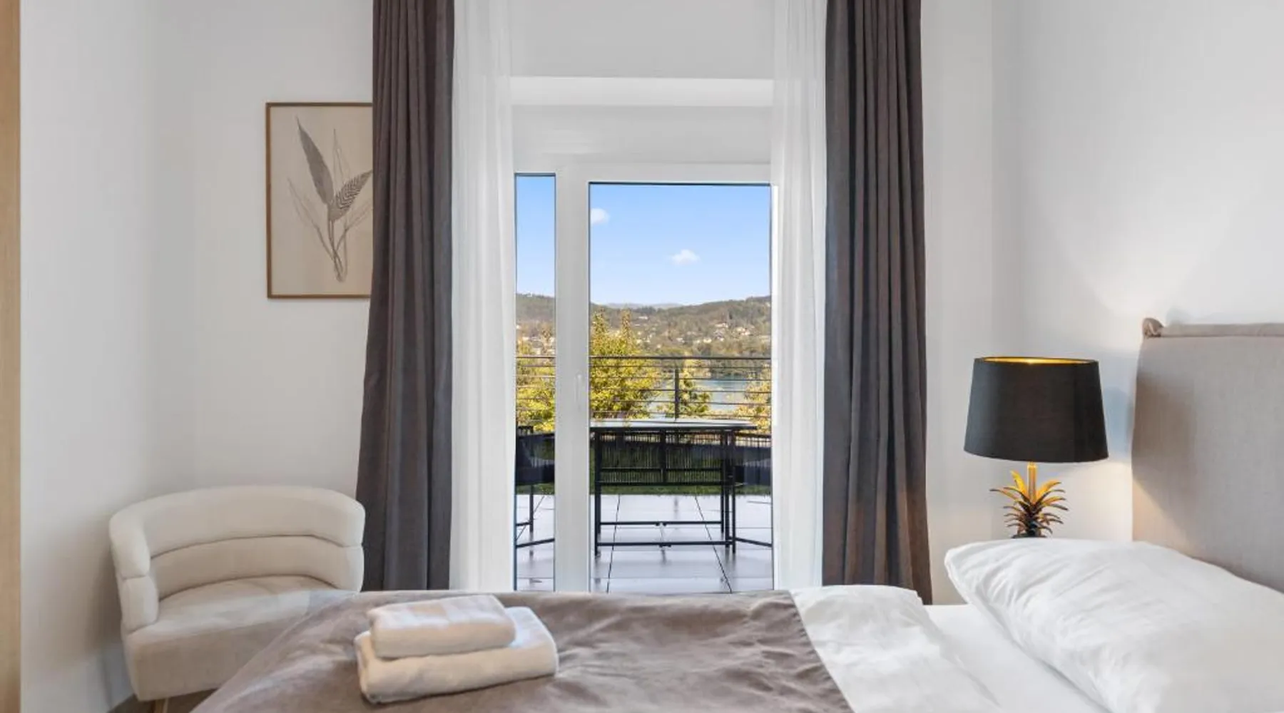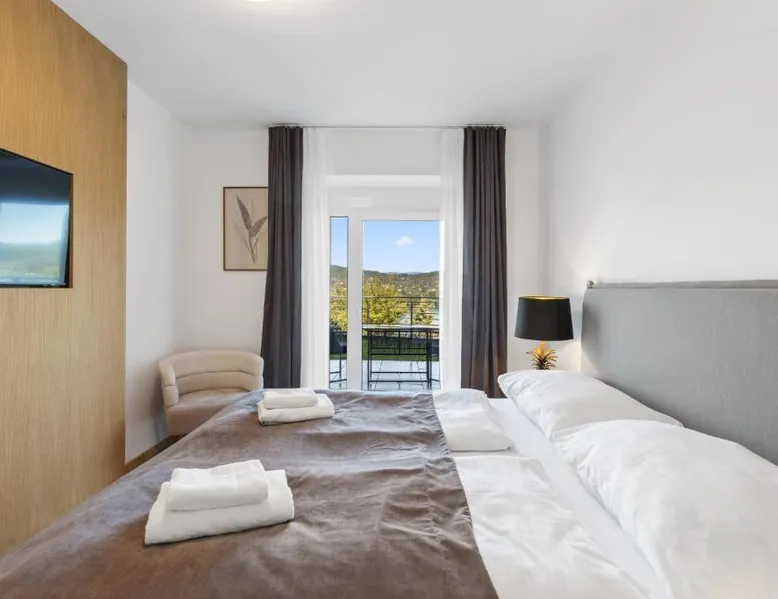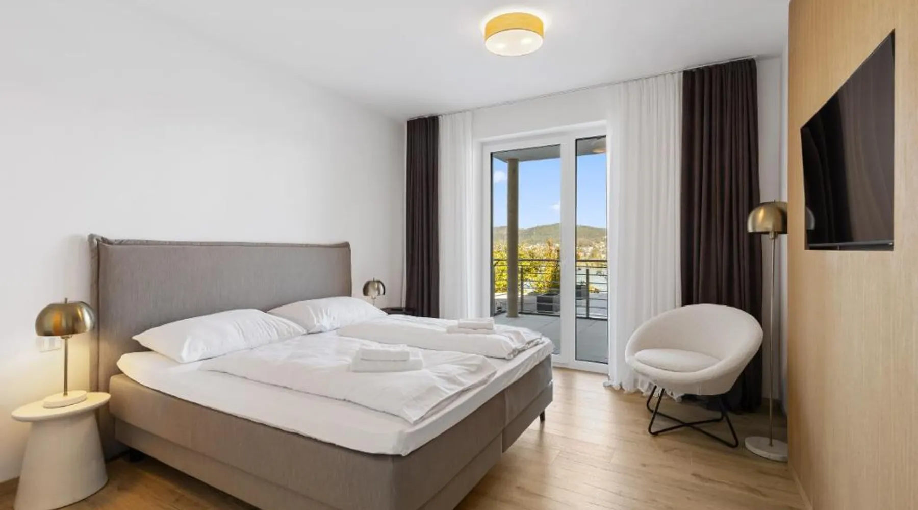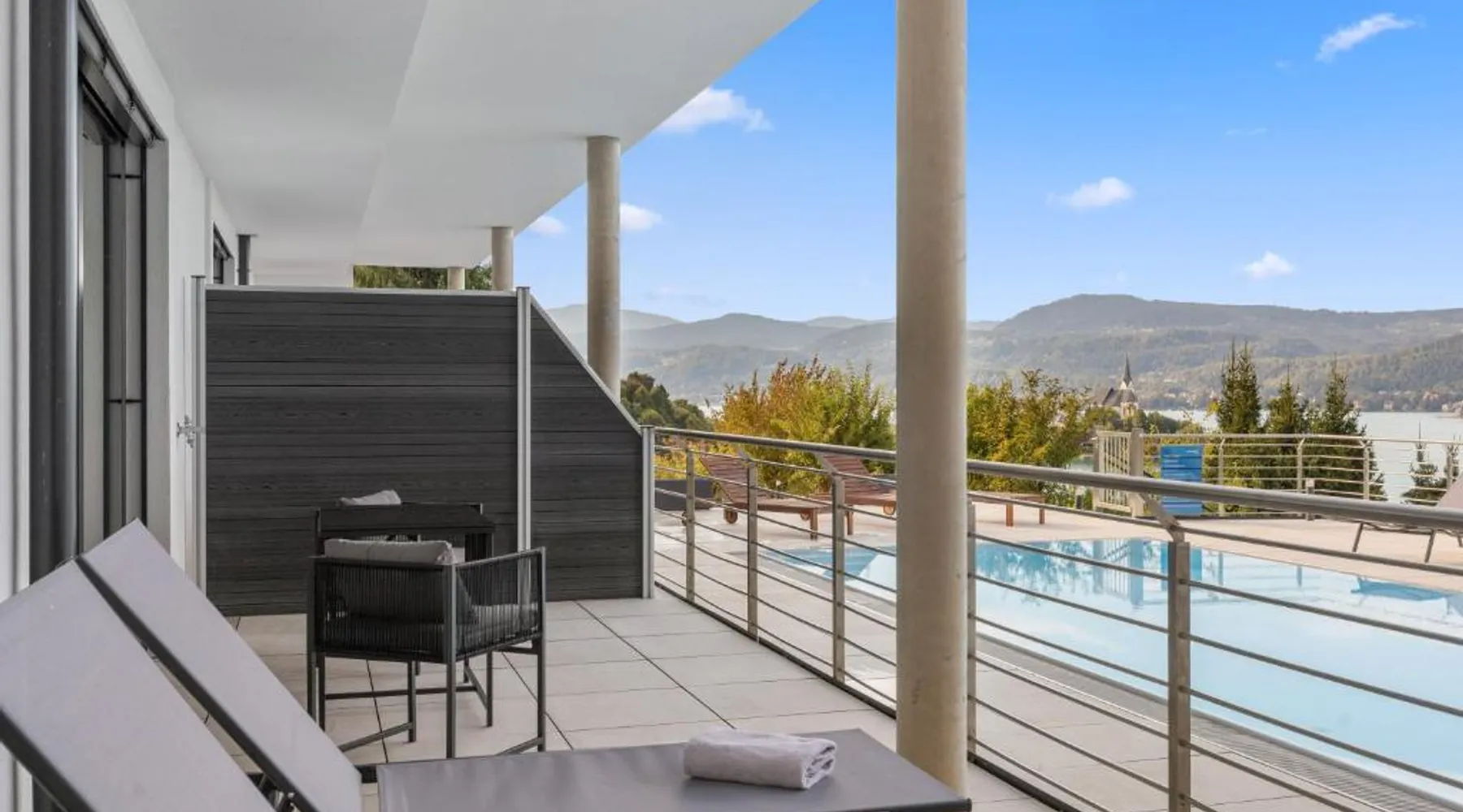 Modern Comforts: Maria Blick - Design Apartments am Wörthersee in Maria Wörth offers a recently renovated apartment with a swimming pool with a view, sun terrace, and garden. Free WiFi is available throughout the property. Convenient Facilities: Guests can enjoy a elevator, family rooms, bicycle parking, and ski storage. Free on-site private parking is provided. Additional amenities include a terrace, balcony, washing machine, and private bathroom. Local Attractions: Strandbad Reifnitz is a 14-minute walk away. Wörthersee Stadion and Viktring Abbey are 6.2 mi from the property. Klagenfurt Airport is 9.9 mi distant. Water sports are available in the surrounding area. Guests will have a special experience as the apartment offers a pool with a view. This spacious apartment consists of 1 living room, 2 separate bedrooms and 1 bathroom with a shower and free toiletries. In the kitchen, guests will find a stovetop, a refrigerator, a dishwasher and kitchenware. Featuring a terrace with lake views, this apartment also provides a washing machine and a flat-screen TV with satellite channels. The unit offers 3 beds.