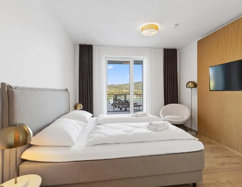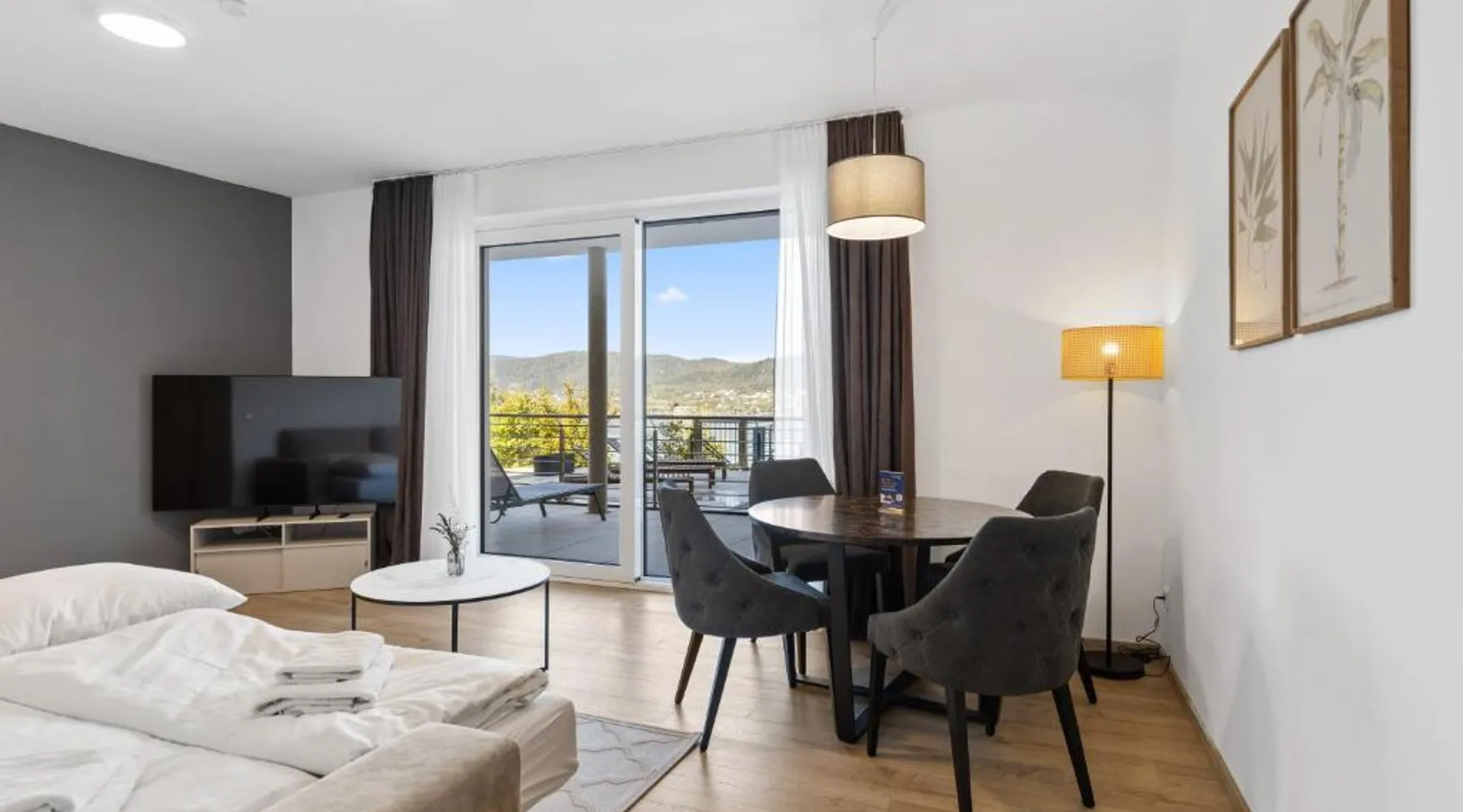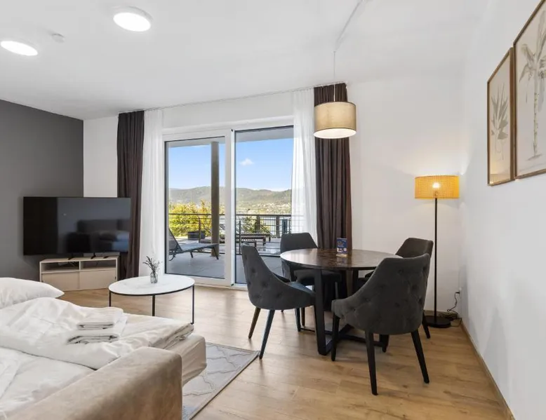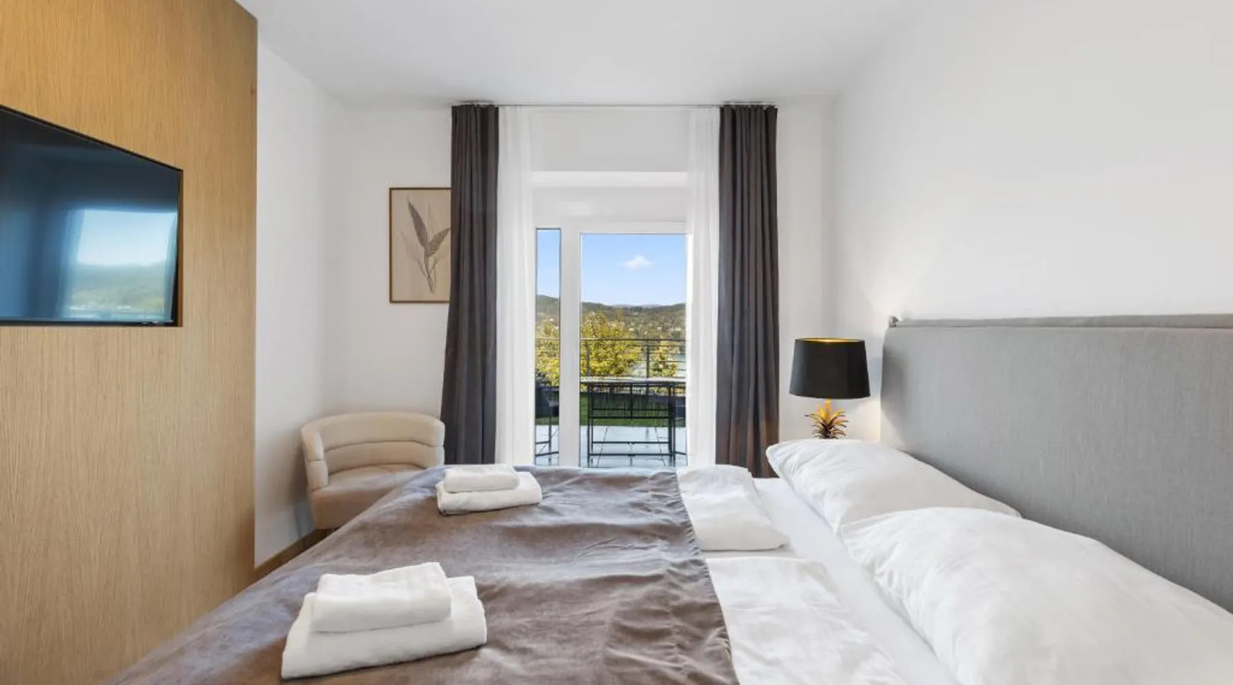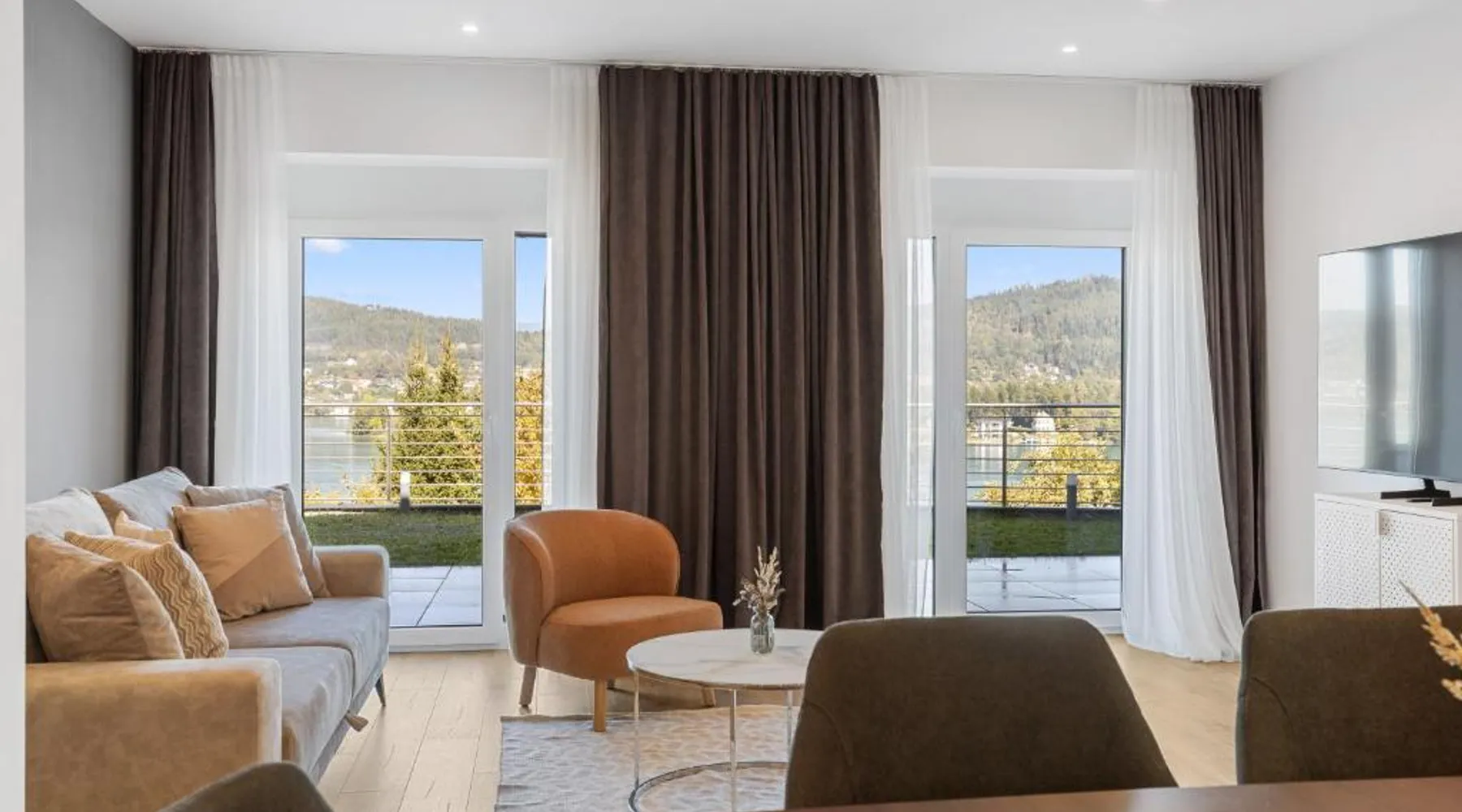 Modern Comforts: Maria Blick - Design Apartments am Wörthersee in Maria Wörth offers a recently renovated apartment with a swimming pool with a view, sun terrace, and garden. Free WiFi is available throughout the property. Convenient Facilities: Guests can enjoy a elevator, family rooms, bicycle parking, and ski storage. Free on-site private parking is provided. Additional amenities include a terrace, balcony, washing machine, and private bathroom. Local Attractions: Strandbad Reifnitz is a 14-minute walk away. Wörthersee Stadion and Viktring Abbey are 6.2 mi from the property. Klagenfurt Airport is 9.9 mi distant. Water sports are available in the surrounding area. Guests will have a special experience as the apartment offers a pool with a view. This spacious apartment consists of 1 living room, 2 separate bedrooms and 1 bathroom with a shower and free toiletries. In the kitchen, guests will find a stovetop, a refrigerator, a dishwasher and kitchenware. Featuring a terrace with lake views, this apartment also provides a washing machine and a flat-screen TV with satellite channels. The unit offers 3 beds.