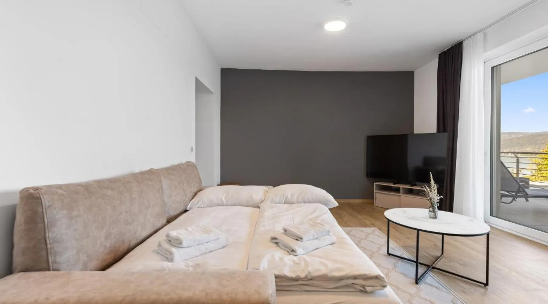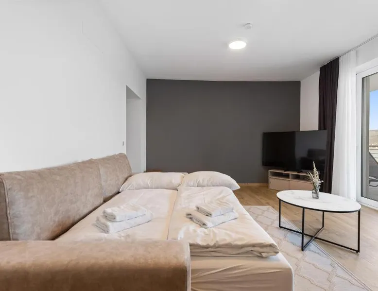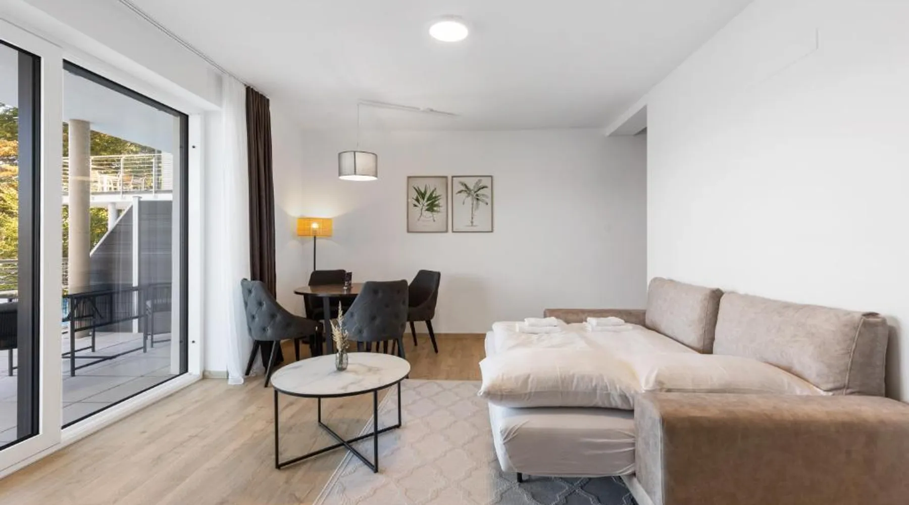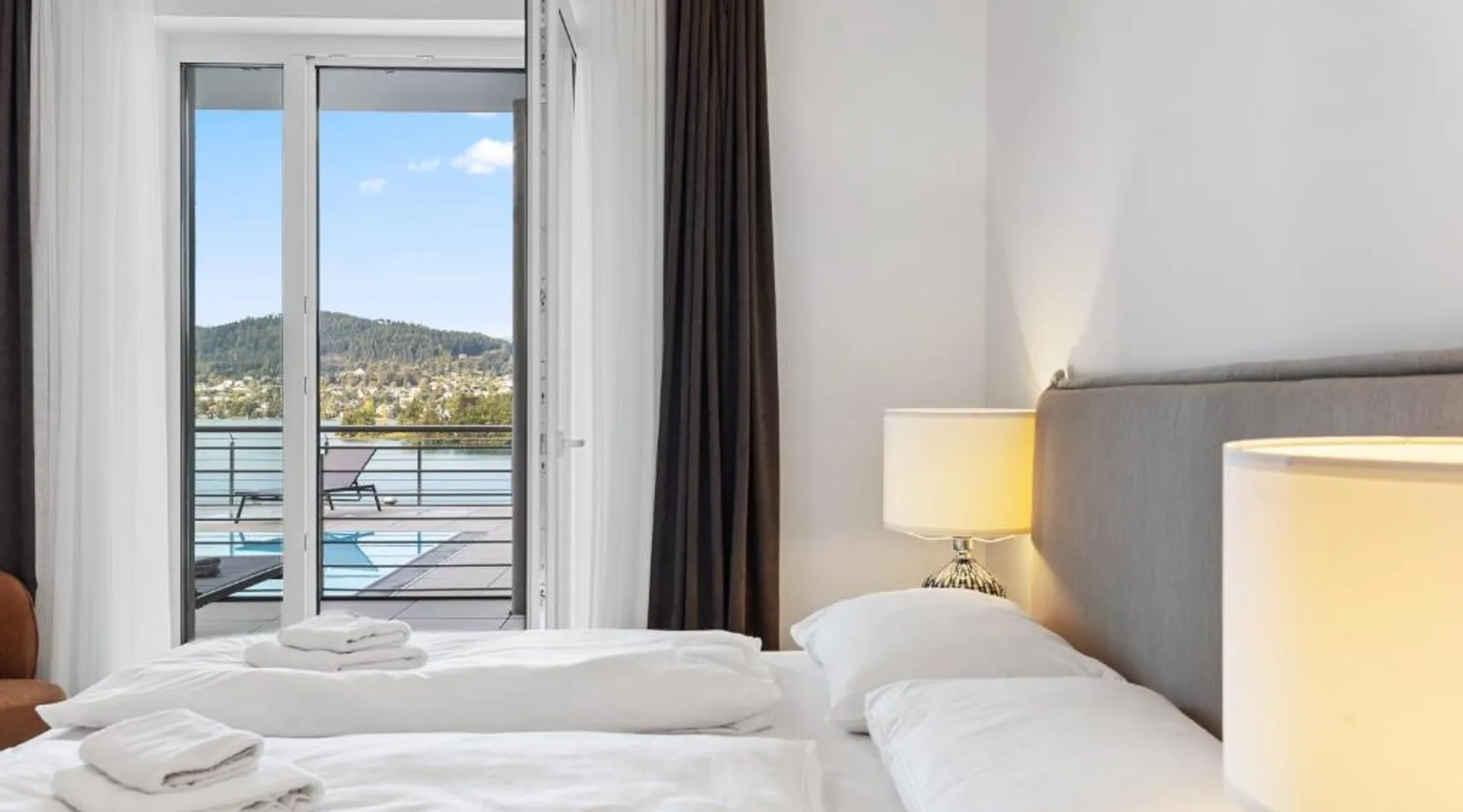 Modern Comforts: Maria Blick - Design Apartments am Wörthersee in Maria Wörth offers a recently renovated apartment with a swimming pool with a view, sun terrace, and garden. Free WiFi is available throughout the property. Convenient Facilities: Guests can enjoy a elevator, family rooms, bicycle parking, and ski storage. Free on-site private parking is provided. Additional amenities include a terrace, balcony, washing machine, and private bathroom. Local Attractions: Strandbad Reifnitz is a 14-minute walk away. Wörthersee Stadion and Viktring Abbey are 6.2 mi from the property. Klagenfurt Airport is 9.9 mi distant. Water sports are available in the surrounding area. Guests will have a special experience as the apartment offers a pool with a view. This spacious apartment consists of 1 living room, 2 separate bedrooms and 1 bathroom with a shower and free toiletries. In the kitchen, guests will find a stovetop, a refrigerator, a dishwasher and kitchenware. Featuring a terrace with lake views, this apartment also provides a washing machine and a flat-screen TV with satellite channels. The unit offers 3 beds.