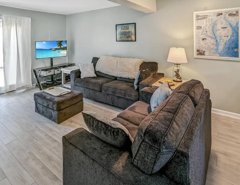 Comfortable Accommodations: Heron Landing in Chincoteague Island offers a two-bedroom holiday home with a fully equipped kitchen, dining area, and a cozy living space. Free WiFi and free on-site parking are available for guests. Modern Amenities: The property includes a washing machine, refrigerator, microwave, dishwasher, oven, stovetop, toaster, and a tea and coffee maker. A bath or shower provides convenience for all guests. Convenient Location: Located 50 mi from Salisbury-Ocean City Wicomico Regional Airport, the holiday home is 14 mi from the Mid-Atlantic Regional Spaceport. Nearby attractions include Chincoteague National Wildlife Refuge and Assateague Island. In the well-fitted kitchen, guests will find a stovetop, a refrigerator, a dishwasher and kitchenware. The holiday home features a washing machine, a tea and coffee maker, a dining area as well as tumble dryer. The unit has 2 beds.