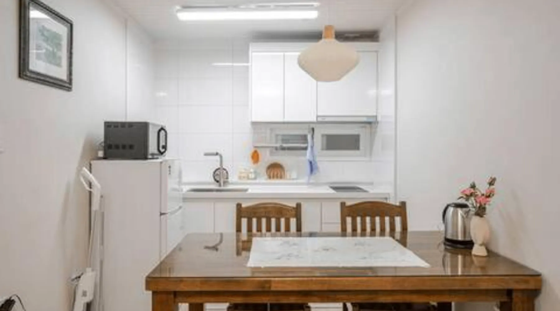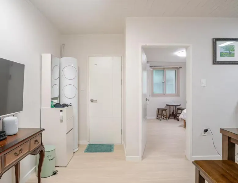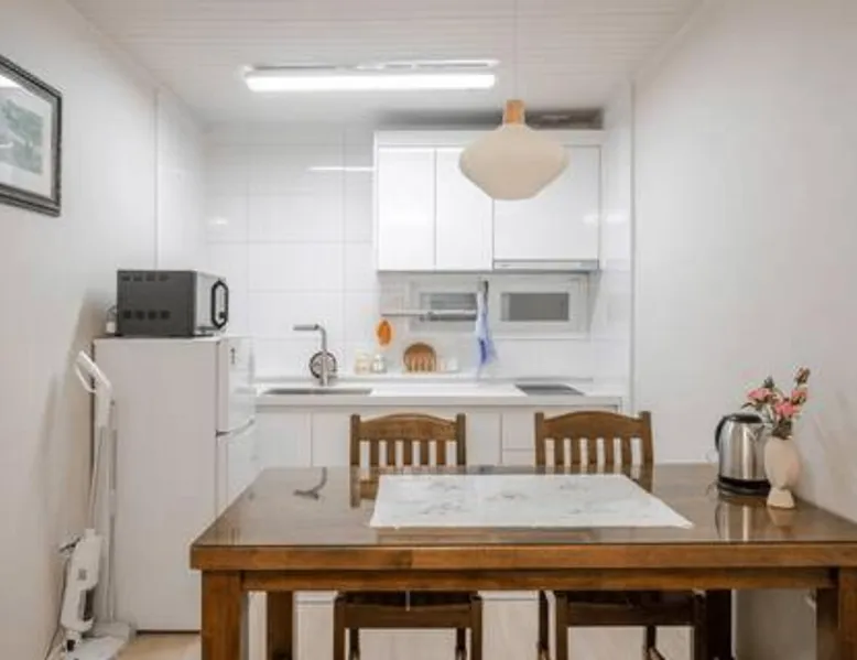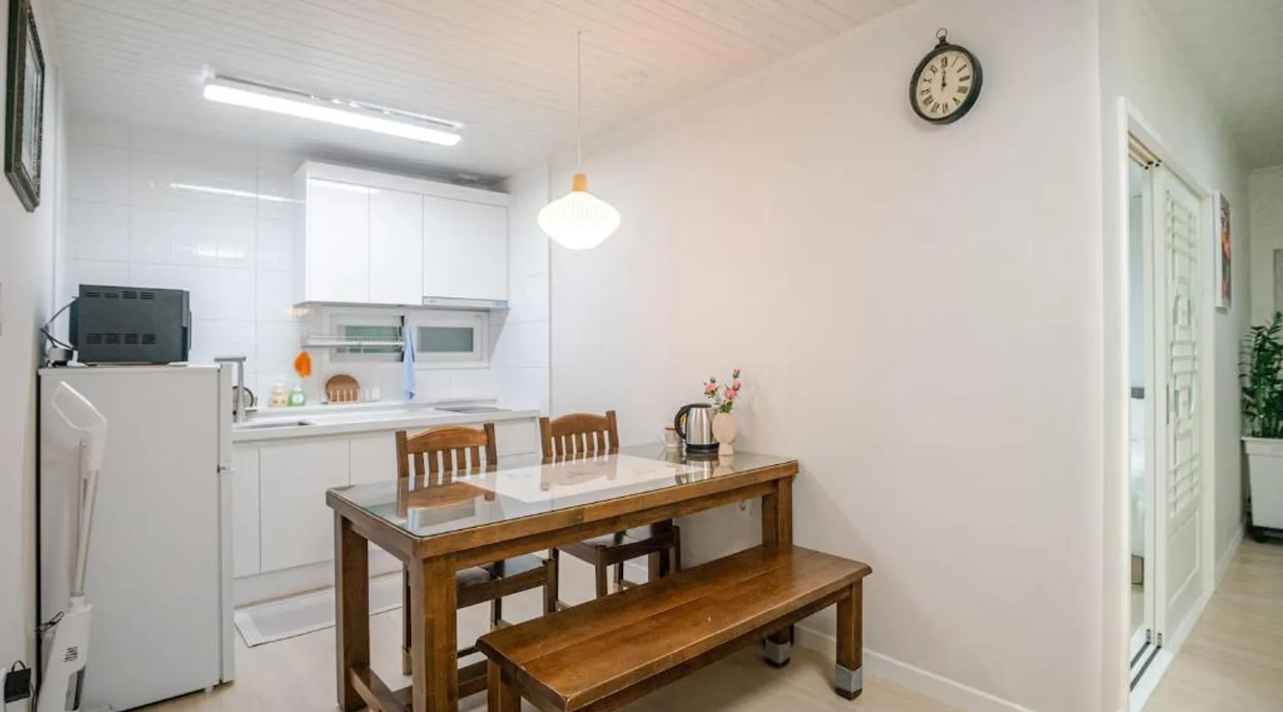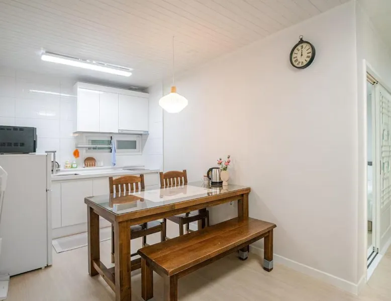 Comfortable Accommodations: 청기와하우스 in Busan offers a spacious apartment with free WiFi, air-conditioning, and a private bathroom. The property features family rooms, full-day security, and luggage storage. Modern Amenities: Guests can enjoy a fully equipped kitchen, bathrobes, hairdryer, shower, slippers, TV, and free toiletries. Additional facilities include a public bath and paid off-site private parking. Convenient Location: Located 8.7 mi from Gimhae International Airport, the apartment is less than 0.6 mi from Busan China Town and a 17-minute walk to Busan Station. Nearby attractions include Gwangbok-Dong (1.5 mi) and Gukje Market (1.7 mi). Featuring a private entrance, this air-conditioned apartment is consisted of of 1 living room, 2 separate bedrooms and 1 bathroom with a shower and a hairdryer. The apartment's kitchen is available for cooking and storing food. This apartment offers heating, a flat-screen TV with satellite channels and a quiet street view. The unit offers 3 beds and 2 futons.