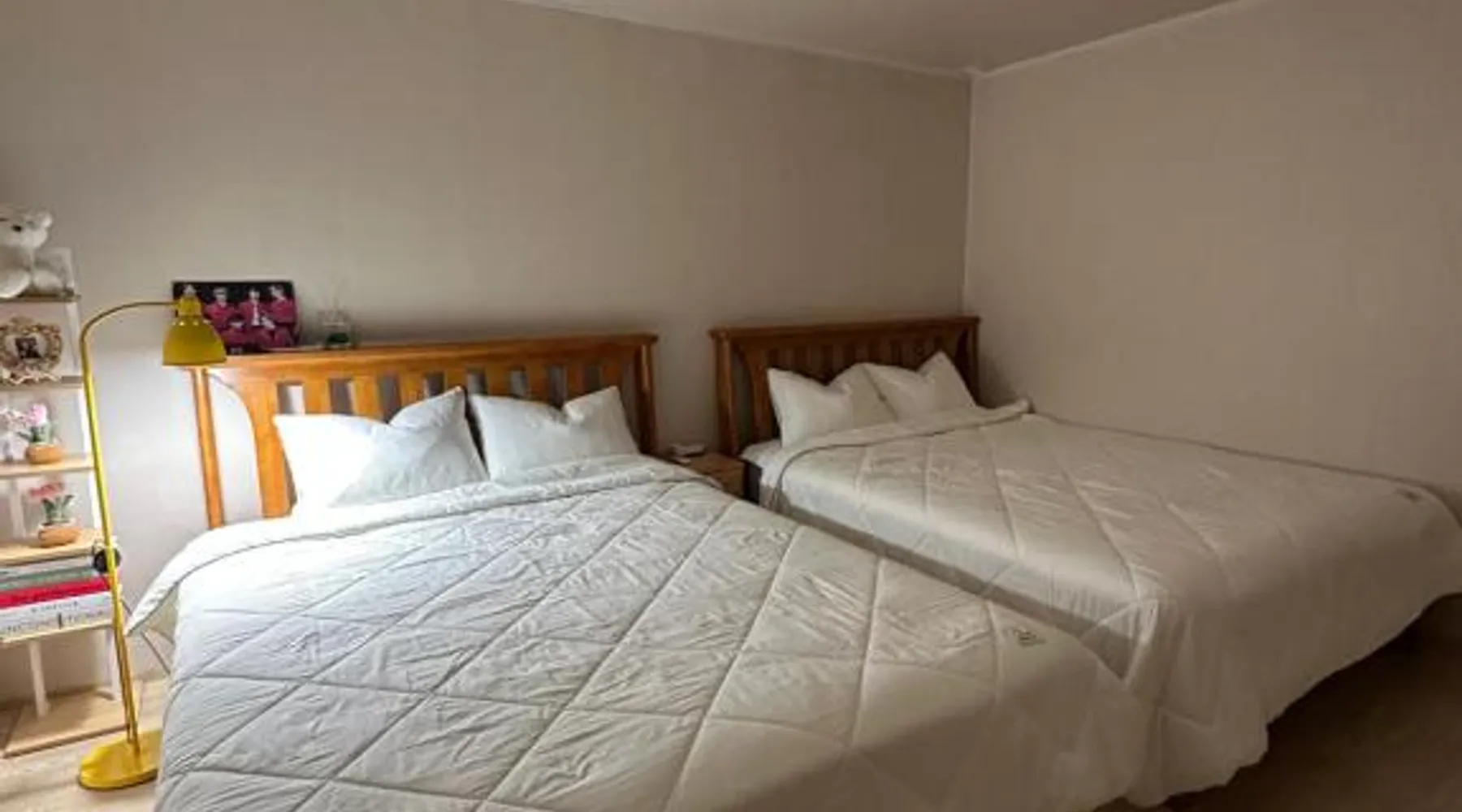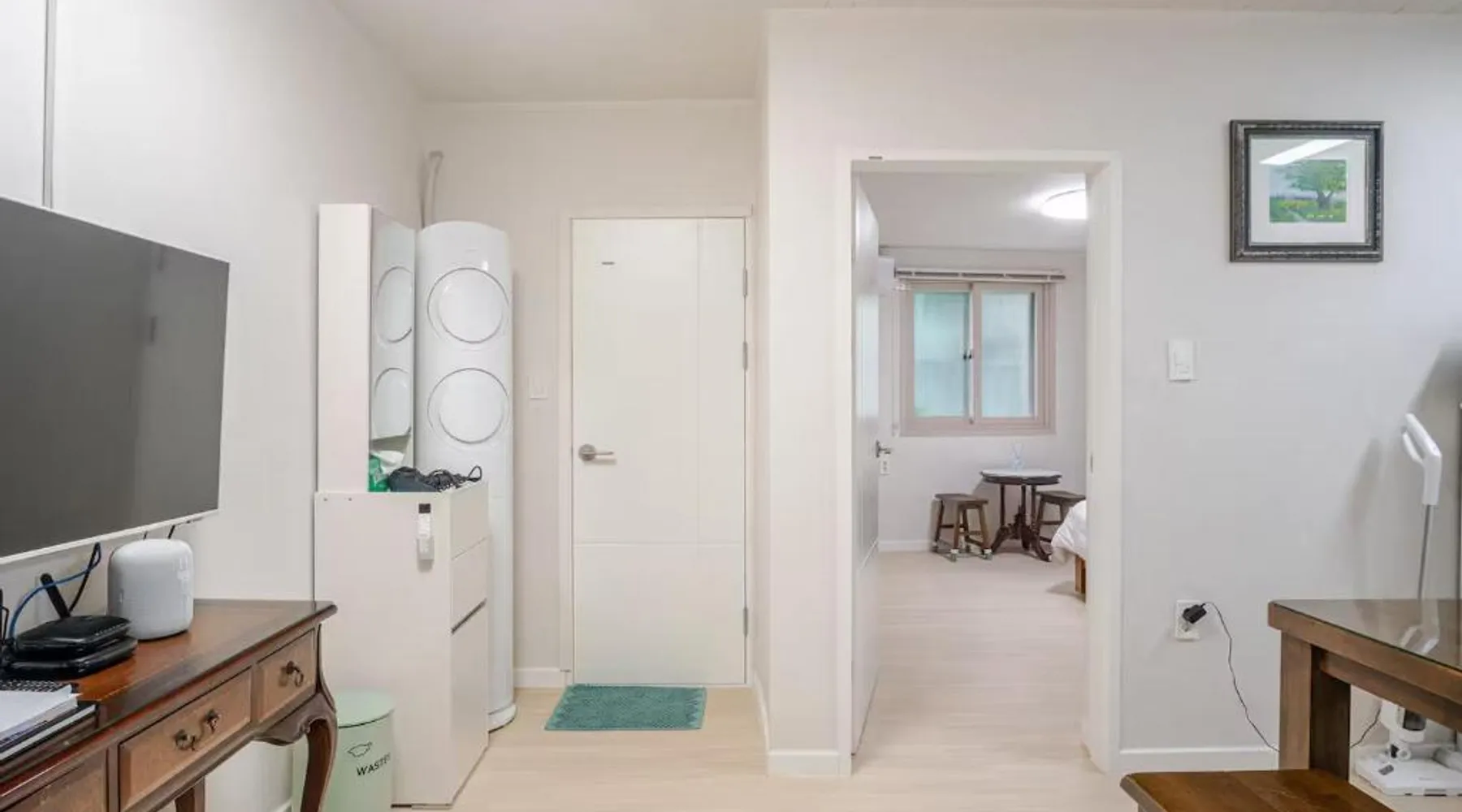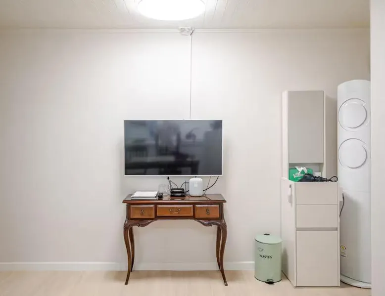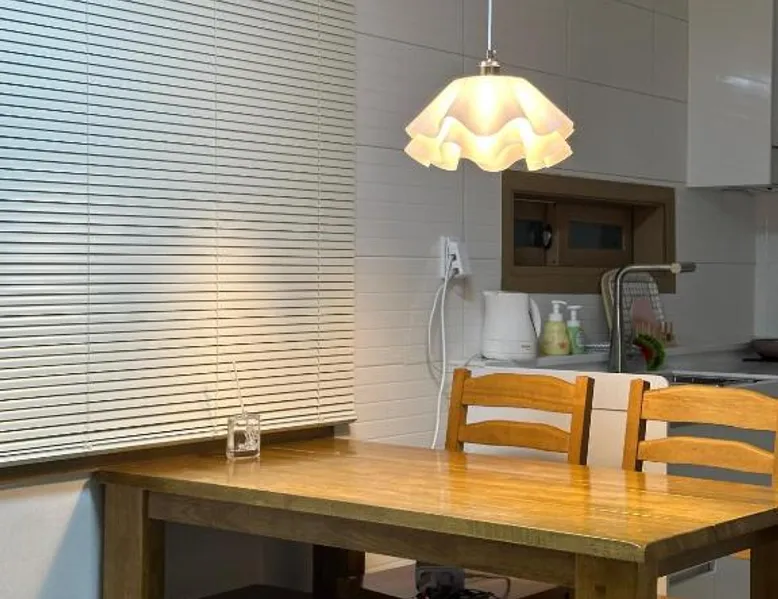Comfortable Accommodations: 청기와하우스 in Busan offers a spacious apartment with free WiFi, air-conditioning, and a private bathroom. The property features family rooms, full-day security, and luggage storage. Modern Amenities: Guests can enjoy a fully equipped kitchen, bathrobes, hairdryer, shower, slippers, TV, and free toiletries. Additional facilities include a public bath and paid off-site private parking. Convenient Location: Located 8.7 mi from Gimhae International Airport, the apartment is less than 0.6 mi from Busan China Town and a 17-minute walk to Busan Station. Nearby attractions include Gwangbok-Dong (1.5 mi) and Gukje Market (1.7 mi). Featuring a private entrance, this air-conditioned apartment is consisted of of 1 living room, 2 separate bedrooms and 1 bathroom with a shower and a hairdryer. The apartment's kitchen is available for cooking and storing food. This apartment offers heating, a flat-screen TV with satellite channels and a quiet street view. The unit offers 3 beds and 2 futons.