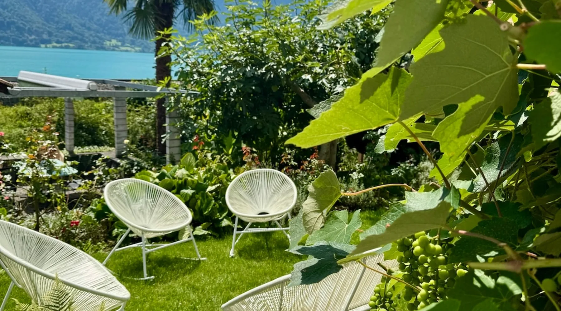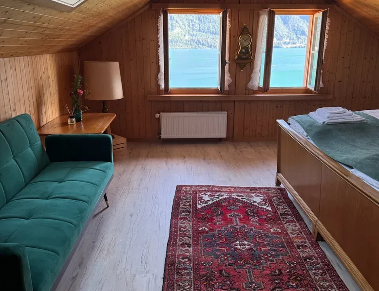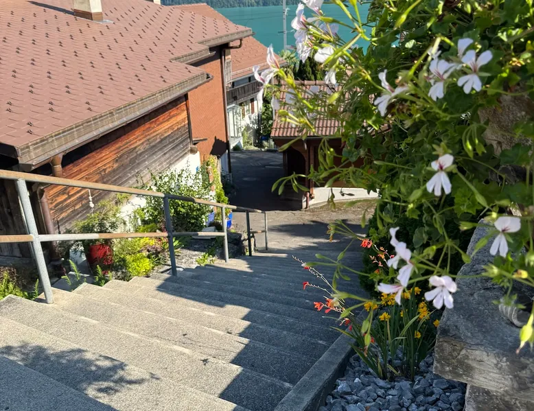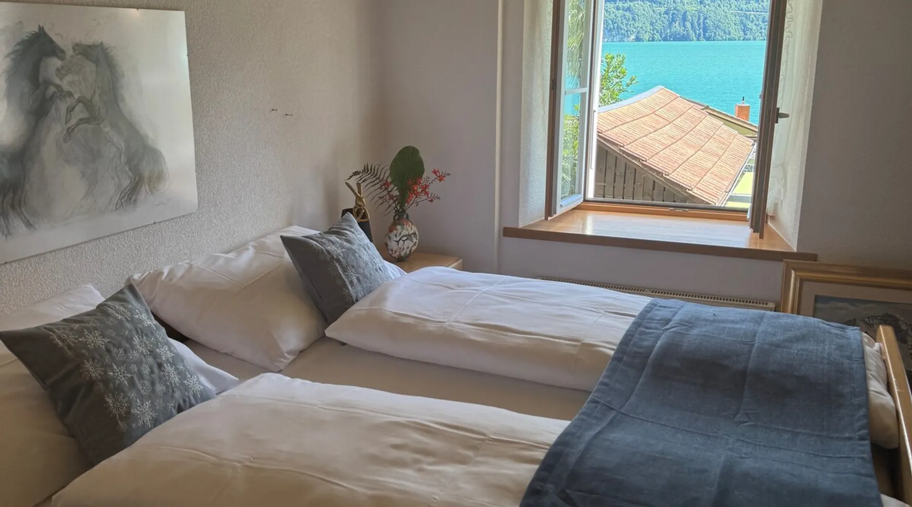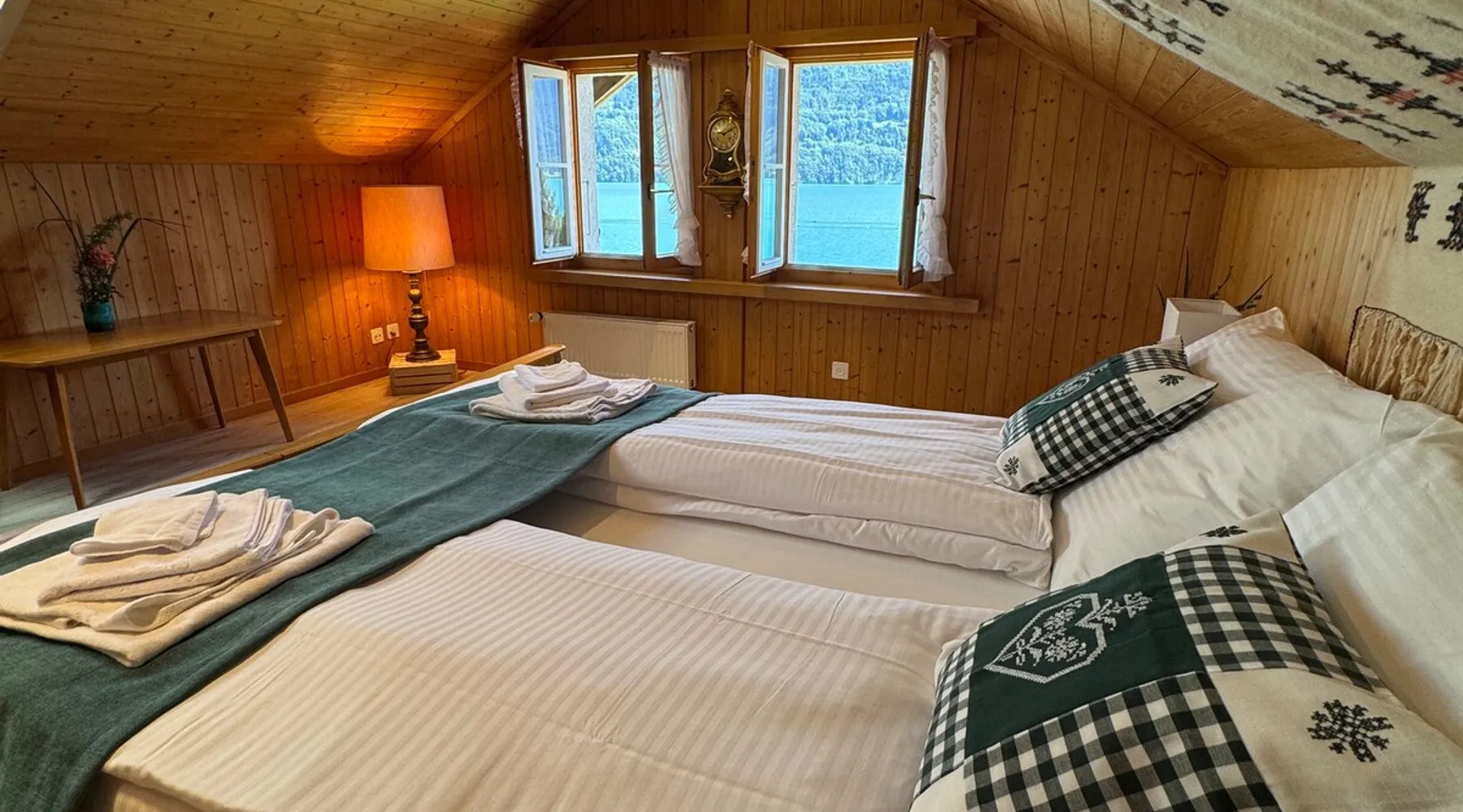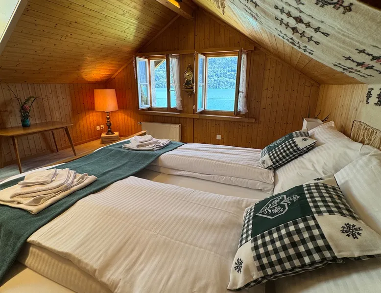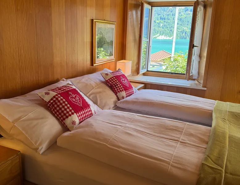 Experience an unforgettable stay in our beautifully restored Swiss Dream HERITAGE Chalet, steeped in 200 years of history and offering breathtaking views of Lake Brienz. This historic home combines authentic alpine charm with modern comforts, with a large garden and a cozy fireplace. Located just 10 minutes from Interlaken, ideal for families and nature lovers · Free Guest Card & Tourist Tax Included · A perfect base for year-round Swiss holidays in the Jungfrau region for up to 10 guests. The space Welcome to Chalet Swiss Dream Heritage – a lovingly restored 200-year-old lakeview home, just 10 minutes from Interlaken. Designed to host up to 10 guests, this rare gem combines timeless Swiss character with comfort and curated touches for an unforgettable alpine getaway. 🛋️ LIVING & DINING: Where Stories Begin The heart of the chalet is a cozy, open living space complete with a wood-burning fireplace, smart TV, and alpine accents. The fully equipped kitchen includes everything you need—from morning espresso to full family dinners. And for a truly Swiss evening, enjoy our fondue 🫕 and raclette 🧀 sets. 🌿 THE GARDEN: Three Levels of Outdoor Bliss Step into a rare multi-level garden filled with tropical trees, fruit trees (fig, banana, grape, olive), and berry bushes. Dine alfresco with a BBQ, relax under the palms, or enjoy the mountain air with stunning views of Lake Brienz. 🛏️ SLEEPING SPACES: Comfort Meets Charm The chalet offers 3 bedrooms and flexible sleeping arrangements to host families and groups comfortably: - Bedroom 1: King-size bed - Bedroom 2: King-size bed + cozy sofa bed - Bedroom 3: King-size bed + cozy sofa bed - Living room: Comfortable Sofa bed for 2 - Crib & high chair available for little guests 👶 🚿 BATHROOMS & AMENITIES - 2 full bathrooms with modern fixtures - Air conditioning in every room - High-speed Wi-Fi throughout the house - Dedicated desk & chair for remote work - Smart TV for streaming and relaxing - Private washer & dryer - Parking for 2 cars 🚗 ARRIVAL MADE EASY - To welcome you in style, we can arrange a luxury car transfer from (or to) Interlaken train station—making arrival seamless and stress-free (for a fee) - Train Station – 🚶 5 min walk for scenic, car-free travel across the region - Ferry Station (to Iseltwald, Brienz & beyond) – 🚶 2 min walk for a memorable cruise across Lake Brienz to some of Switzerland’s most picturesque lakeside villages Other things to note 🏠 Ceiling height on the ground floor is 190 cm, part of the home’s historic charm 👶 Families welcome – we provide a crib, high chair, and children’s games 🚗 Car recommended, but train access is just a 5-minute walk away 🧼 Professionally cleaned before every stay 🛶 Stand-up paddleboards available in summer near Thunersee (subject to availability and use at your own risk) 🏔️ Prime Location: Your Gateway to the Jungfrau Region Nestled just 10 minutes from Interlaken, Swiss Dream Heritage Chalet is your ideal base to discover the breathtaking beauty and adventure of the Bernese Oberland. Whether you're chasing adrenaline, seeking alpine charm, or planning unforgettable family outings, everything is within easy reach. 🎢 ADVENTURE & OUTDOOR FUN Paragliding Interlaken – 🚗 10 min Experience the thrill of flying as you glide over sparkling lakes and towering peaks—an unforgettable bucket-list moment. Seilpark Interlaken (Rope Park) – 🚗 13 min Challenge yourself in the treetops with zip lines and high rope courses suitable for all ages, surrounded by mountain scenery. Lake Brienz Shoreline – 🚶 2 min Just steps from the chalet, enjoy peaceful walks, refreshing swims, or stand-up paddleboarding on turquoise waters. 🏘️ CULTURE & ALPINE CHARM Interlaken Town Center – 🚗 10 min Explore quaint streets, indulge in Swiss chocolate, browse local boutiques, and relax in Kursaal Park’s floral elegance. Ballenberg Open-Air Museum – 🚗 20 min Step back in time through centuries of Swiss tradition, with restored farmhouses, craft demonstrations, and living heritage. 🏔️ LEGENDARY MOUNTAIN ADVENTURES Grindelwald, Lauterbrunnen, Wengen & Mürren – 🚗 ~30 min These postcard-perfect villages are your entry point to the world-famous Jungfrau, Schilthorn, and Männlichen mountains—ideal for hiking, skiing, and scenic excursions. 🛒 ESSENTIALS MADE EASY Everything you need is close by to make your stay effortless and enjoyable: - Coop, Aldi & Landi – 🚗 7–9 min for groceries, local cheeses, wines, and fresh produce - Bakeries, cafés & restaurants – within easy walking distance - Train Station – 🚶 5 min walk - Ferry Station (to Iseltwald, Brienz & beyond) – 🚶 2 min walk