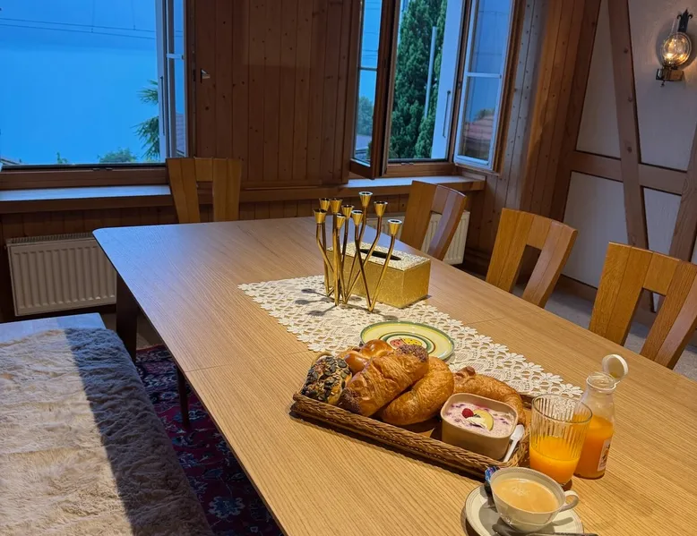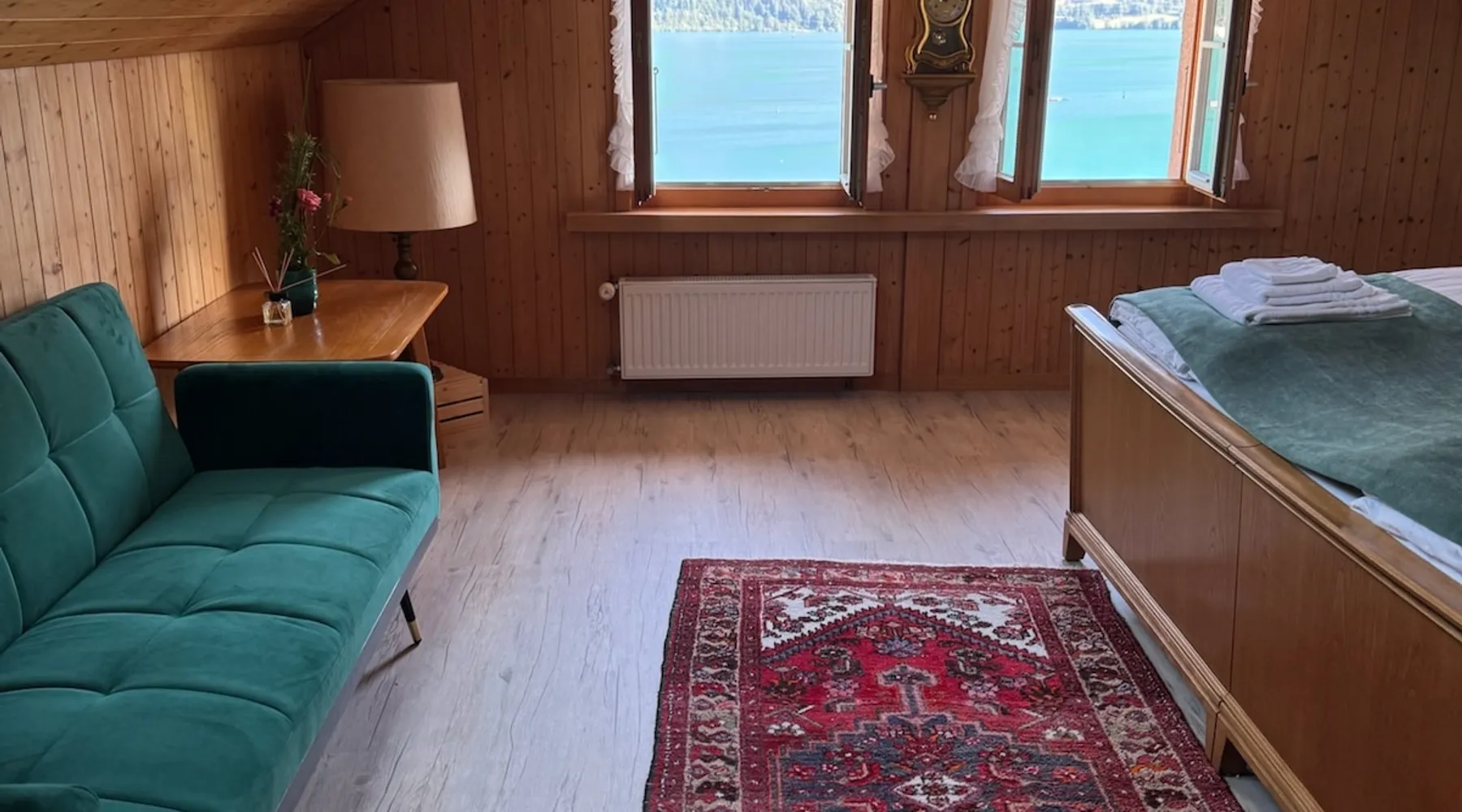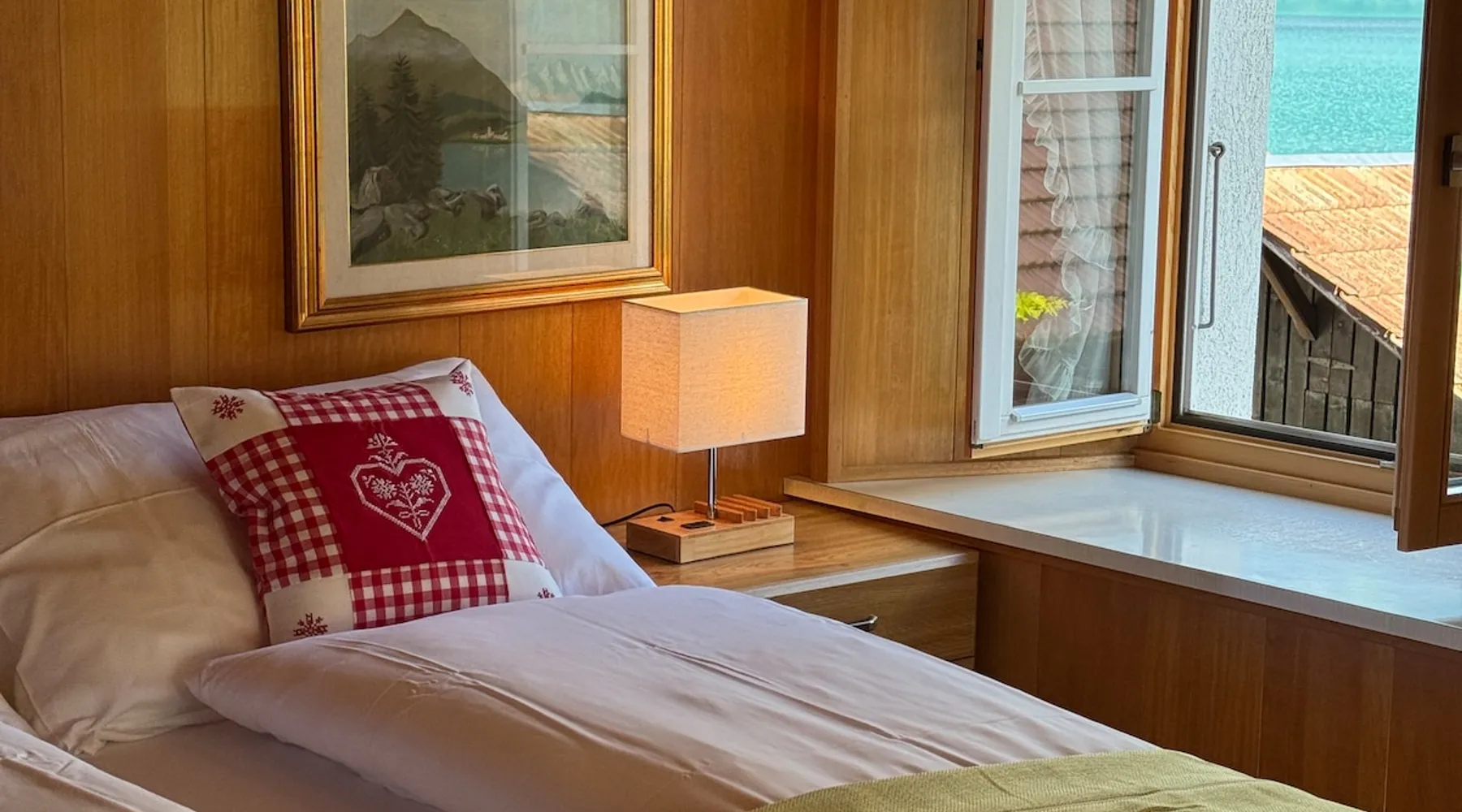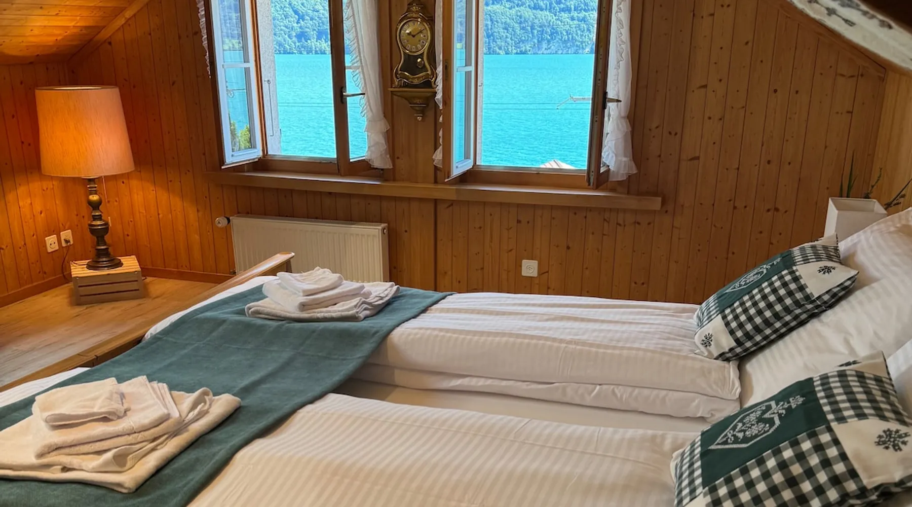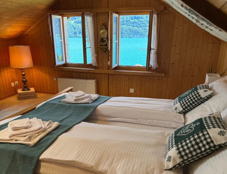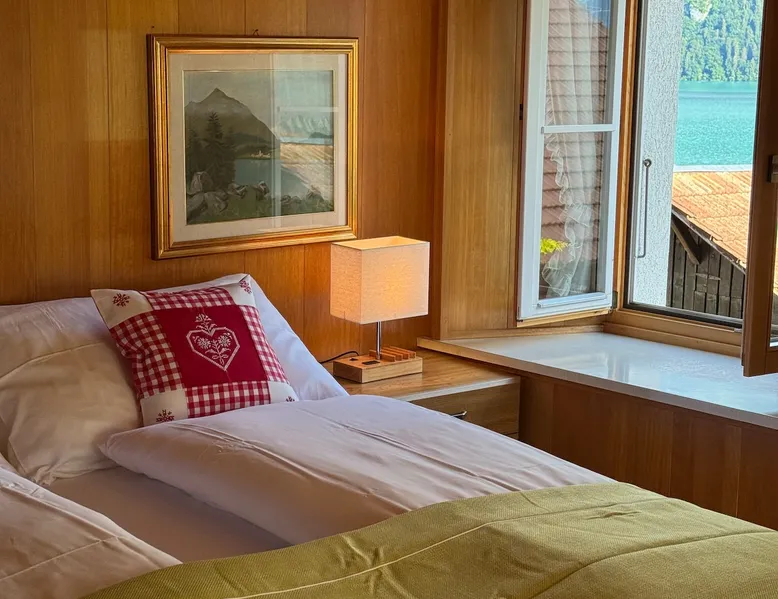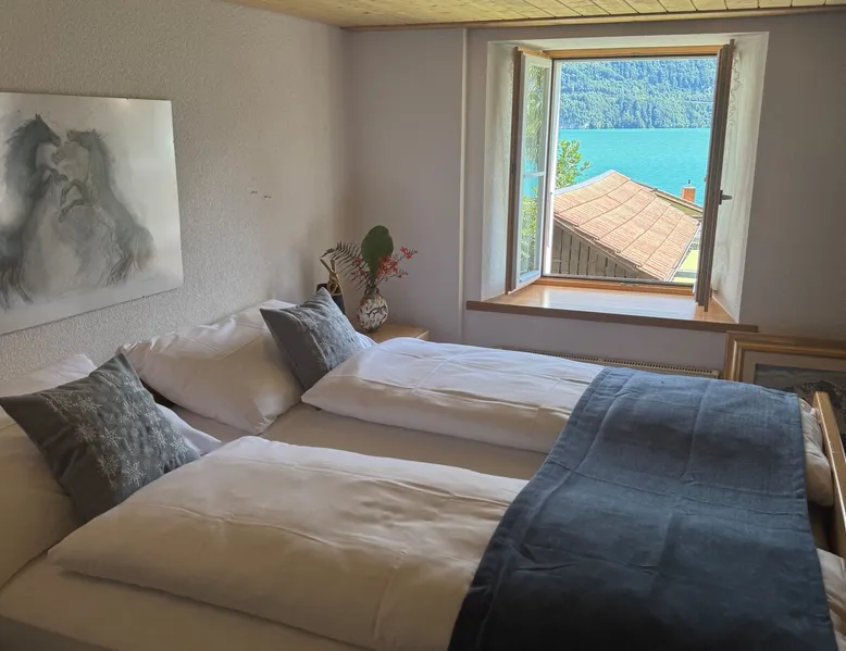 Experience an unforgettable stay in our beautifully restored Swiss Dream HERITAGE Chalet, steeped in 200 years of history and offering breathtaking views of Lake Brienz. This historic home combines authentic alpine charm with modern comforts, with a large garden and a cozy fireplace. Located just 10 minutes from Interlaken, ideal for families and nature lovers · Free Guest Card & Tourist Tax Included · A perfect base for year-round Swiss holidays in the Jungfrau region for up to 10 guests. The space Welcome to Chalet Swiss Dream Heritage – a lovingly restored 200-year-old lakeview home, just 10 minutes from Interlaken. Designed to host up to 10 guests, this rare gem combines timeless Swiss character with comfort and curated touches for an unforgettable alpine getaway. 🛋️ LIVING & DINING: Where Stories Begin The heart of the chalet is a cozy, open living space complete with a wood-burning fireplace, smart TV, and alpine accents. The fully equipped kitchen includes everything you need—from morning espresso to full family dinners. And for a truly Swiss evening, enjoy our fondue 🫕 and raclette 🧀 sets. 🌿 THE GARDEN: Three Levels of Outdoor Bliss Step into a rare multi-level garden filled with tropical trees, fruit trees (fig, banana, grape, olive), and berry bushes. Dine alfresco with a BBQ, relax under the palms, or enjoy the mountain air with stunning views of Lake Brienz. 🛏️ SLEEPING SPACES: Comfort Meets Charm The chalet offers 3 bedrooms and flexible sleeping arrangements to host families and groups comfortably: - Bedroom 1: King-size bed - Bedroom 2: King-size bed + cozy sofa bed - Bedroom 3: King-size bed + cozy sofa bed - Living room: Comfortable Sofa bed for 2 - Crib & high chair available for little guests 👶 🚿 BATHROOMS & AMENITIES - 2 full bathrooms with modern fixtures - Air conditioning in every room - High-speed Wi-Fi throughout the house - Dedicated desk & chair for remote work - Smart TV for streaming and relaxing - Private washer & dryer - Parking for 2 cars 🚗 ARRIVAL MADE EASY - To welcome you in style, we can arrange a luxury car transfer from (or to) Interlaken train station—making arrival seamless and stress-free (for a fee) - Train Station – 🚶 5 min walk for scenic, car-free travel across the region - Ferry Station (to Iseltwald, Brienz & beyond) – 🚶 2 min walk for a memorable cruise across Lake Brienz to some of Switzerland’s most picturesque lakeside villages Other things to note 🏠 Ceiling height on the ground floor is 190 cm, part of the home’s historic charm 👶 Families welcome – we provide a crib, high chair, and children’s games 🚗 Car recommended, but train access is just a 5-minute walk away 🧼 Professionally cleaned before every stay 🛶 Stand-up paddleboards available in summer near Thunersee (subject to availability and use at your own risk) 🏔️ Prime Location: Your Gateway to the Jungfrau Region Nestled just 10 minutes from Interlaken, Swiss Dream Heritage Chalet is your ideal base to discover the breathtaking beauty and adventure of the Bernese Oberland. Whether you're chasing adrenaline, seeking alpine charm, or planning unforgettable family outings, everything is within easy reach. 🎢 ADVENTURE & OUTDOOR FUN Paragliding Interlaken – 🚗 10 min Experience the thrill of flying as you glide over sparkling lakes and towering peaks—an unforgettable bucket-list moment. Seilpark Interlaken (Rope Park) – 🚗 13 min Challenge yourself in the treetops with zip lines and high rope courses suitable for all ages, surrounded by mountain scenery. Lake Brienz Shoreline – 🚶 2 min Just steps from the chalet, enjoy peaceful walks, refreshing swims, or stand-up paddleboarding on turquoise waters. 🏘️ CULTURE & ALPINE CHARM Interlaken Town Center – 🚗 10 min Explore quaint streets, indulge in Swiss chocolate, browse local boutiques, and relax in Kursaal Park’s floral elegance. Ballenberg Open-Air Museum – 🚗 20 min Step back in time through centuries of Swiss tradition, with restored farmhouses, craft demonstrations, and living heritage. 🏔️ LEGENDARY MOUNTAIN ADVENTURES Grindelwald, Lauterbrunnen, Wengen & Mürren – 🚗 ~30 min These postcard-perfect villages are your entry point to the world-famous Jungfrau, Schilthorn, and Männlichen mountains—ideal for hiking, skiing, and scenic excursions. 🛒 ESSENTIALS MADE EASY Everything you need is close by to make your stay effortless and enjoyable: - Coop, Aldi & Landi – 🚗 7–9 min for groceries, local cheeses, wines, and fresh produce - Bakeries, cafés & restaurants – within easy walking distance - Train Station – 🚶 5 min walk - Ferry Station (to Iseltwald, Brienz & beyond) – 🚶 2 min walk
