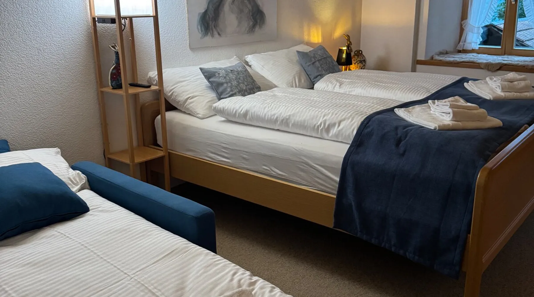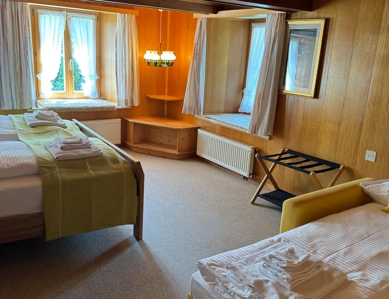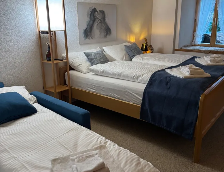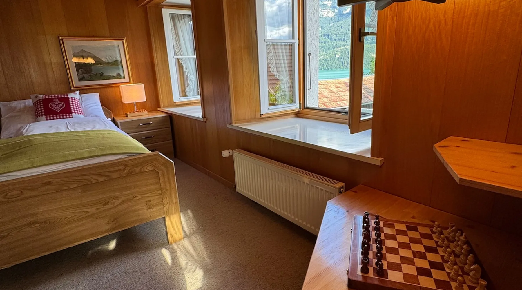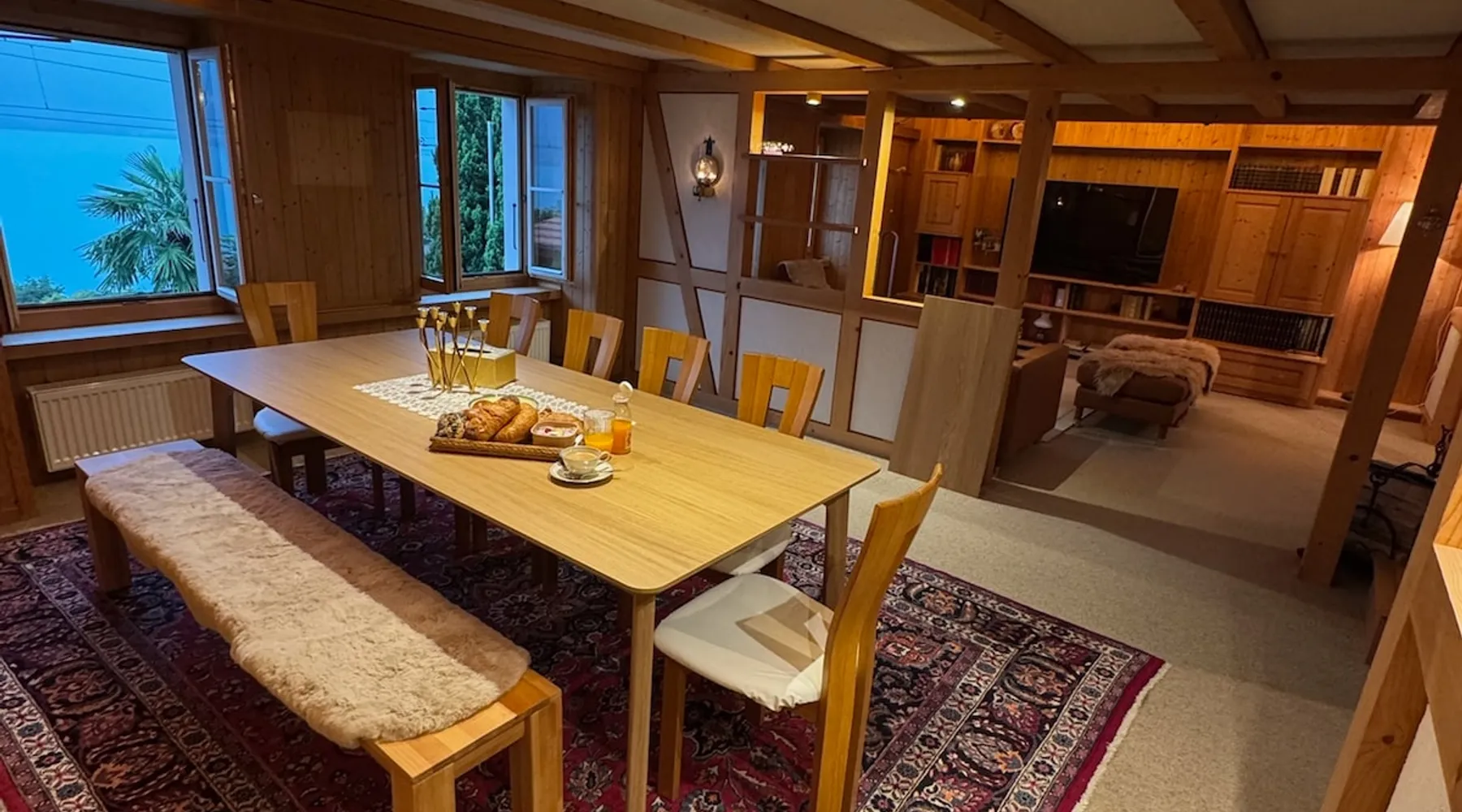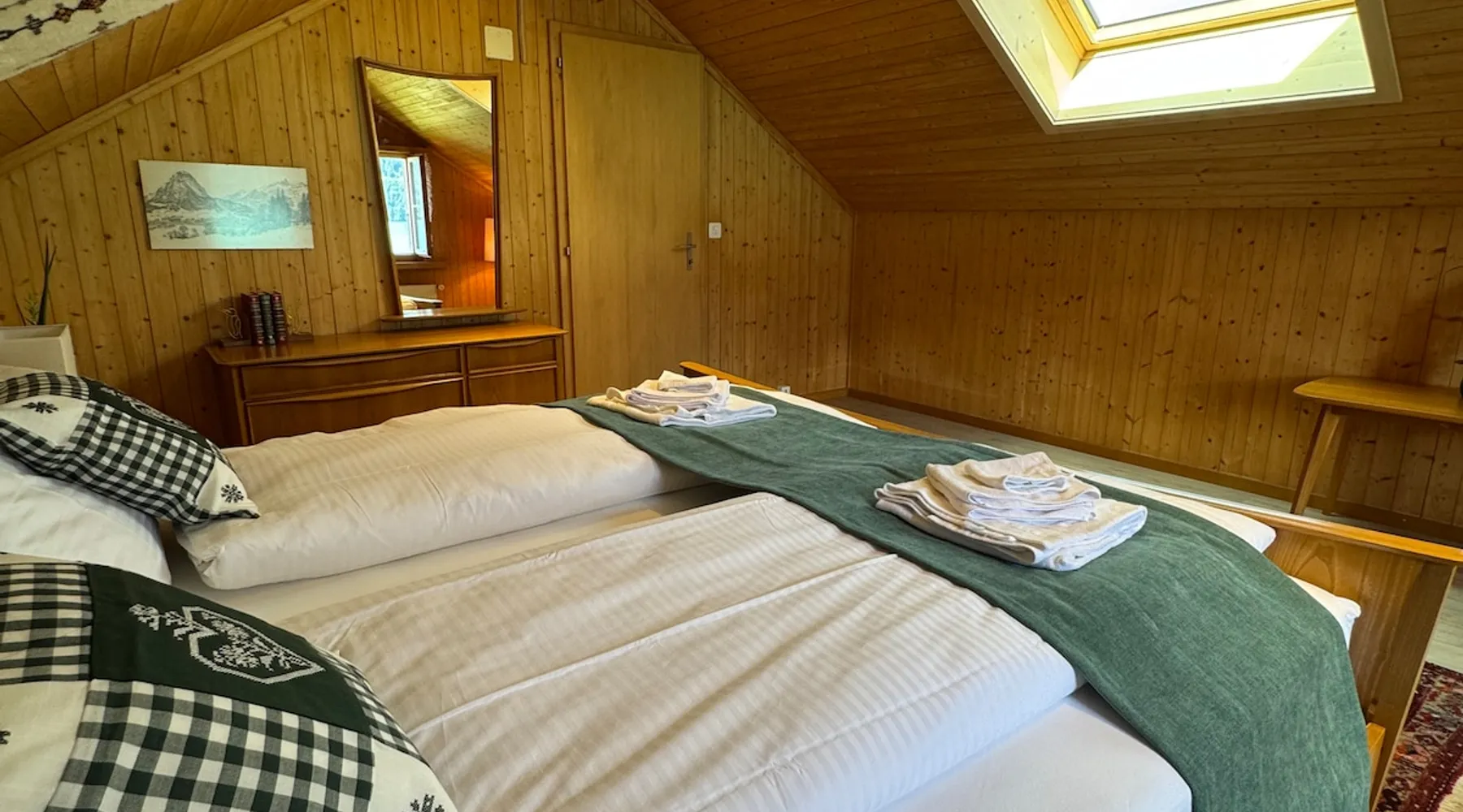 Experience an unforgettable stay in our beautifully restored Swiss Dream HERITAGE Chalet, steeped in 200 years of history and offering breathtaking views of Lake Brienz. This historic home combines authentic alpine charm with modern comforts, with a large garden and a cozy fireplace. Located just 10 minutes from Interlaken, ideal for families and nature lovers · Free Guest Card & Tourist Tax Included · A perfect base for year-round Swiss holidays in the Jungfrau region for up to 10 guests. The space Welcome to Chalet Swiss Dream Heritage – a lovingly restored 200-year-old lakeview home, just 10 minutes from Interlaken. Designed to host up to 10 guests, this rare gem combines timeless Swiss character with comfort and curated touches for an unforgettable alpine getaway. 🛋️ LIVING & DINING: Where Stories Begin The heart of the chalet is a cozy, open living space complete with a wood-burning fireplace, smart TV, and alpine accents. The fully equipped kitchen includes everything you need—from morning espresso to full family dinners. And for a truly Swiss evening, enjoy our fondue 🫕 and raclette 🧀 sets. 🌿 THE GARDEN: Three Levels of Outdoor Bliss Step into a rare multi-level garden filled with tropical trees, fruit trees (fig, banana, grape, olive), and berry bushes. Dine alfresco with a BBQ, relax under the palms, or enjoy the mountain air with stunning views of Lake Brienz. 🛏️ SLEEPING SPACES: Comfort Meets Charm The chalet offers 3 bedrooms and flexible sleeping arrangements to host families and groups comfortably: - Bedroom 1: King-size bed - Bedroom 2: King-size bed + cozy sofa bed - Bedroom 3: King-size bed + cozy sofa bed - Living room: Comfortable Sofa bed for 2 - Crib & high chair available for little guests 👶 🚿 BATHROOMS & AMENITIES - 2 full bathrooms with modern fixtures - Air conditioning in every room - High-speed Wi-Fi throughout the house - Dedicated desk & chair for remote work - Smart TV for streaming and relaxing - Private washer & dryer - Parking for 2 cars 🚗 ARRIVAL MADE EASY - To welcome you in style, we can arrange a luxury car transfer from (or to) Interlaken train station—making arrival seamless and stress-free (for a fee) - Train Station – 🚶 5 min walk for scenic, car-free travel across the region - Ferry Station (to Iseltwald, Brienz & beyond) – 🚶 2 min walk for a memorable cruise across Lake Brienz to some of Switzerland’s most picturesque lakeside villages Other things to note 🏠 Ceiling height on the ground floor is 190 cm, part of the home’s historic charm 👶 Families welcome – we provide a crib, high chair, and children’s games 🚗 Car recommended, but train access is just a 5-minute walk away 🧼 Professionally cleaned before every stay 🛶 Stand-up paddleboards available in summer near Thunersee (subject to availability and use at your own risk) 🏔️ Prime Location: Your Gateway to the Jungfrau Region Nestled just 10 minutes from Interlaken, Swiss Dream Heritage Chalet is your ideal base to discover the breathtaking beauty and adventure of the Bernese Oberland. Whether you're chasing adrenaline, seeking alpine charm, or planning unforgettable family outings, everything is within easy reach. 🎢 ADVENTURE & OUTDOOR FUN Paragliding Interlaken – 🚗 10 min Experience the thrill of flying as you glide over sparkling lakes and towering peaks—an unforgettable bucket-list moment. Seilpark Interlaken (Rope Park) – 🚗 13 min Challenge yourself in the treetops with zip lines and high rope courses suitable for all ages, surrounded by mountain scenery. Lake Brienz Shoreline – 🚶 2 min Just steps from the chalet, enjoy peaceful walks, refreshing swims, or stand-up paddleboarding on turquoise waters. 🏘️ CULTURE & ALPINE CHARM Interlaken Town Center – 🚗 10 min Explore quaint streets, indulge in Swiss chocolate, browse local boutiques, and relax in Kursaal Park’s floral elegance. Ballenberg Open-Air Museum – 🚗 20 min Step back in time through centuries of Swiss tradition, with restored farmhouses, craft demonstrations, and living heritage. 🏔️ LEGENDARY MOUNTAIN ADVENTURES Grindelwald, Lauterbrunnen, Wengen & Mürren – 🚗 ~30 min These postcard-perfect villages are your entry point to the world-famous Jungfrau, Schilthorn, and Männlichen mountains—ideal for hiking, skiing, and scenic excursions. 🛒 ESSENTIALS MADE EASY Everything you need is close by to make your stay effortless and enjoyable: - Coop, Aldi & Landi – 🚗 7–9 min for groceries, local cheeses, wines, and fresh produce - Bakeries, cafés & restaurants – within easy walking distance - Train Station – 🚶 5 min walk - Ferry Station (to Iseltwald, Brienz & beyond) – 🚶 2 min walk