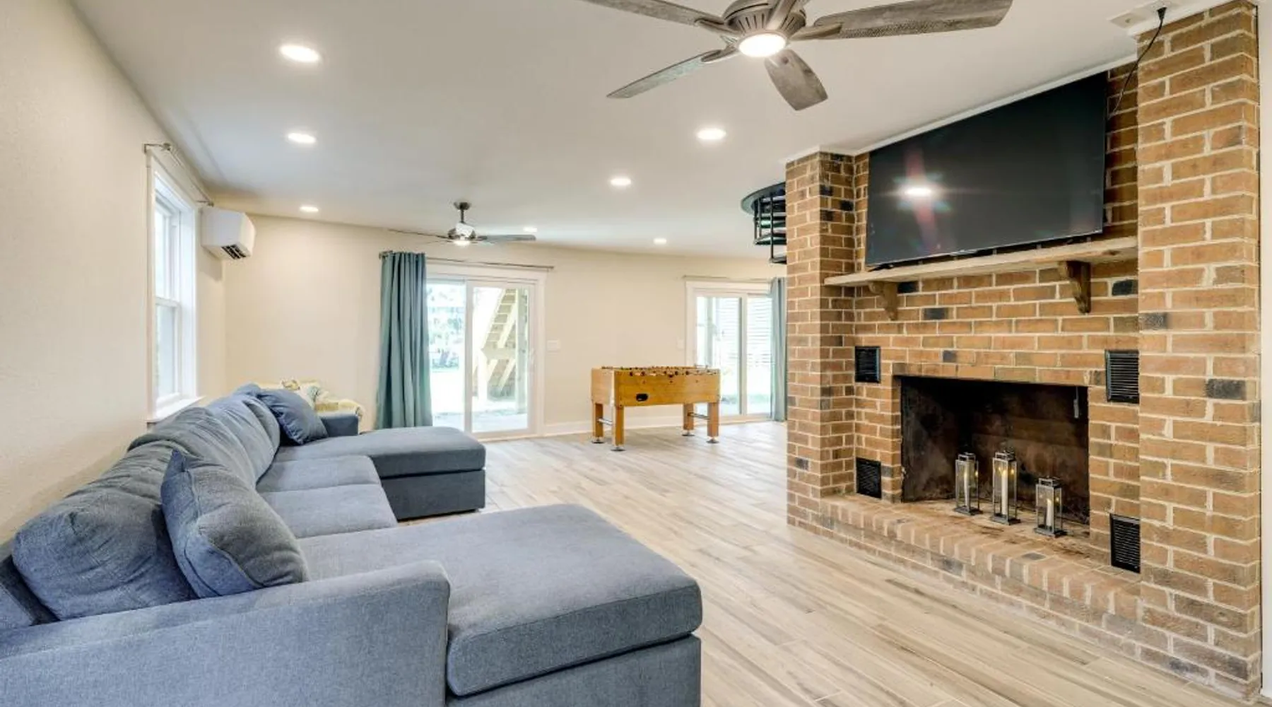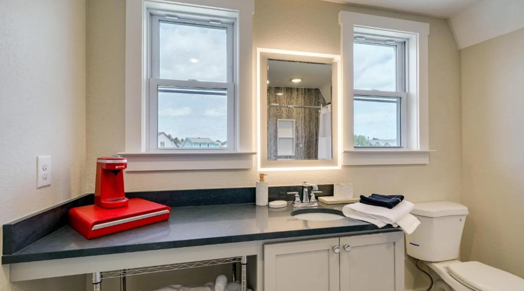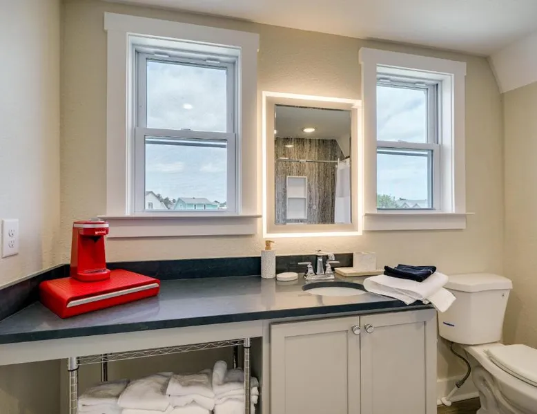 Spacious Accommodations: The Private Dock and Beach Access Outer Banks Area Home in Kill Devil Hills offers five bedrooms and three bathrooms. The spacious layout ensures comfort for all guests. Outdoor Amenities: Guests can enjoy an outdoor swimming pool and a balcony with stunning views. Free WiFi is available throughout the property, enhancing the stay experience. Leisure Facilities: The holiday home features a games room, perfect for entertainment. Additional amenities include air-conditioning, a washing machine, and a fully equipped kitchen with modern appliances. Convenient Location: Norfolk International Airport is 85 mi away, providing easy access for travelers. Paid on-site parking is available for guests' convenience. Featuring a private entrance, this spacious holiday home also is consisted of of 5 separate bedrooms and 3 bathrooms with a shower and a hairdryer. Guests will find a stovetop, a refrigerator, a dishwasher and kitchenware in the well-fitted kitchen. The holiday home also has a barbecue. This holiday home features air conditioning, a washing machine, a flat-screen TV and a patio. The unit offers 6 beds.