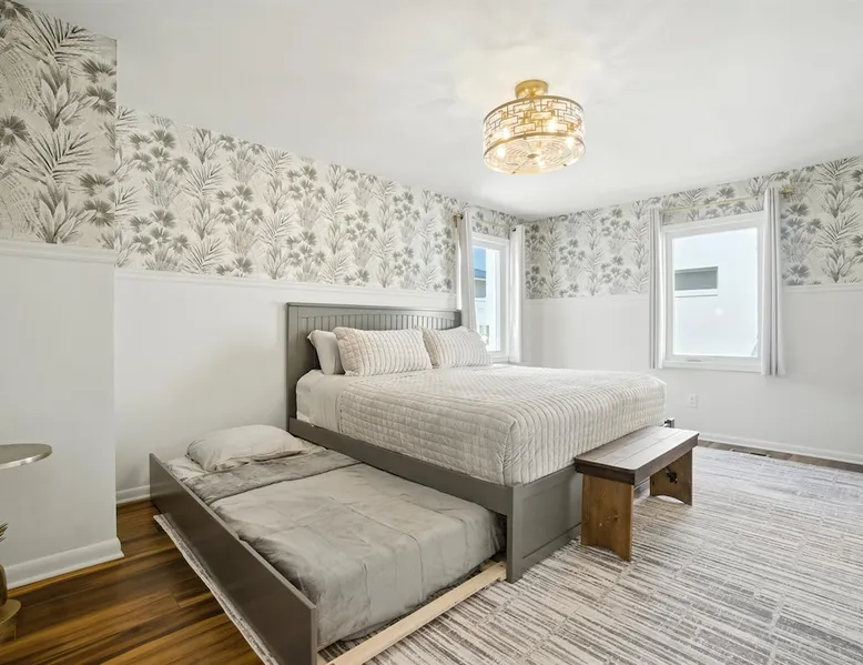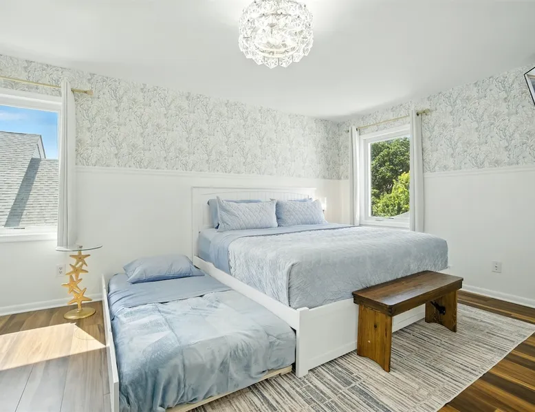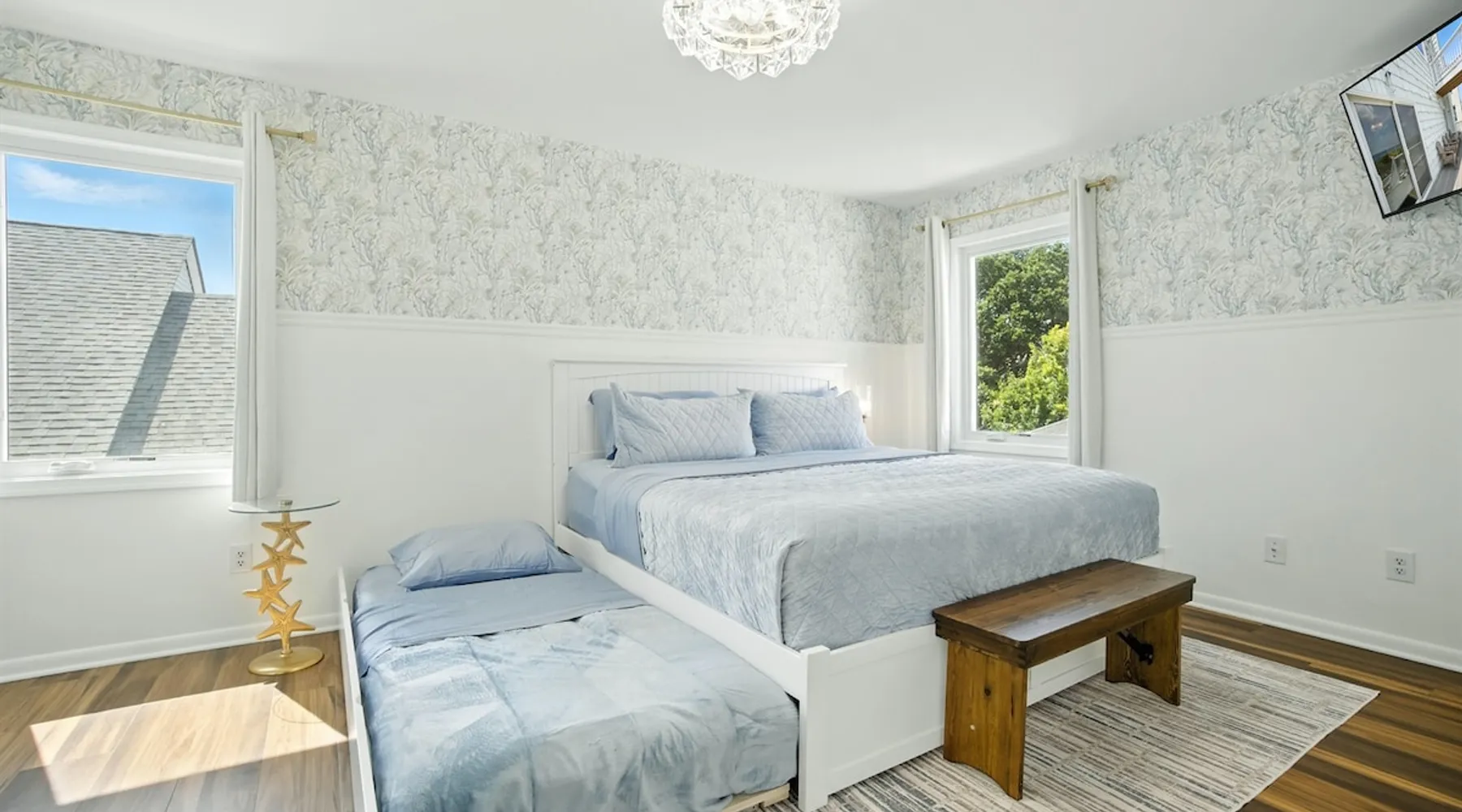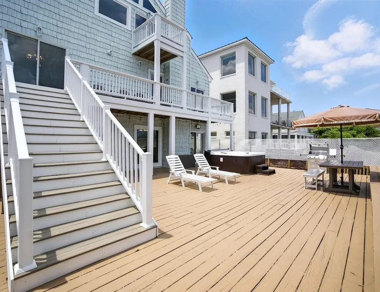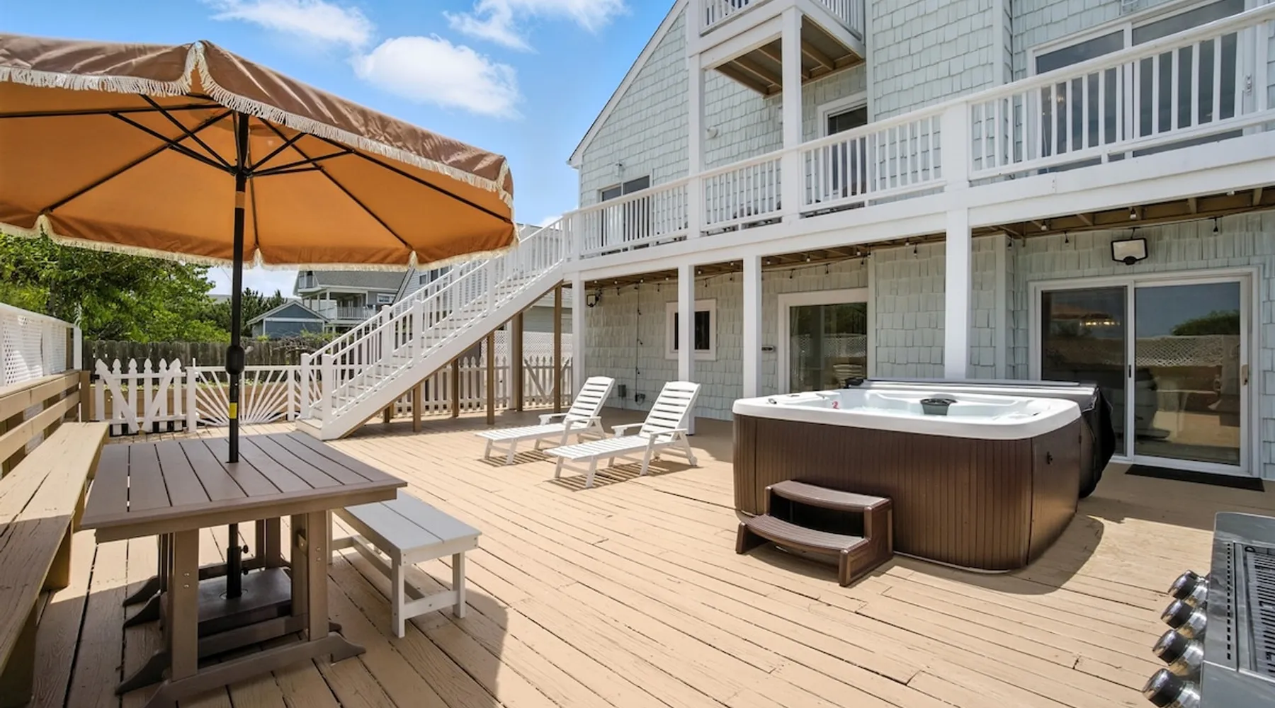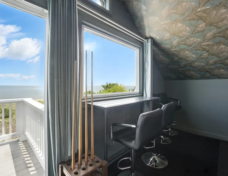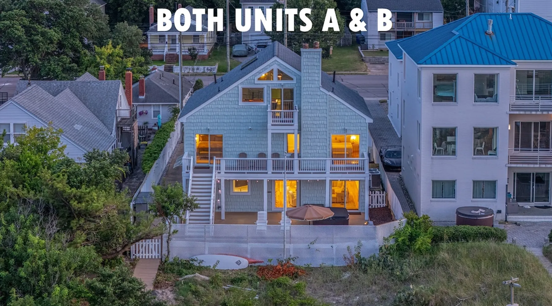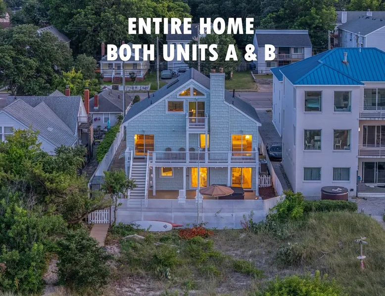 Located right on the beach and overlooking the scenic Chesapeake Bay, this beachfront home is the perfect place for a family retreat, romantic getaway or friends seeking adventure. Marvel at the panoramic views and dramatic colors from sunrise to sunset. Go for a swim or relax, soak up the sun & let the gentle sea breeze wash your worries away! You’ll love the direct private beach access, hot tub, sauna, chef’s kitchen, game room with pool table, bar areas, large deck and more!! The space ***This listing is for the entire property - BOTH UNITS A & B*** Smaller groups can book part of the property: Listing for Unit A (Beach-facing with Ocean Views; up to 6 guests): airbnb.com/h/sunriseretreatva Listing for Unit B (Street-facing, NO OCEAN VIEWS; up to 4 guests): airbnb.com/h/seabreezestayva HIGHLIGHTS ♦ ON THE BEACH - Beach front house with direct beach access (first row) ♦ Free Parking 🚗 ♦ Dog Friendly 🦮 ♦ 3 Person Sauna 💦 ♦ 7 Person Hot Tub 🌡️ ♦ Chef’s kitchen with a high-end ZLINE 36” gas cooktop with 6 burners👨🍳 ♦ Game room with boardgames, a bar and a pool / billiards table 🎱 ♦ BBQ Grills (Natural Gas and Charcoal) 🔥 ♦ 3 Fireplaces (Gas and Electric)🔥 ♦ Jetted tub 🛁 ♦ Beach Gear 🏖️ ♦ Milkshake Station 🍧 ♦ Coffee Bar ☕️ ♦ Wetbars 🍾 ♦ Wine Fridge 🥂 ♦ Vinyl Record Players ⏺️ ♦ Board Games 🎲 ♦ Large front and back yards for the family to relax, grill and play🌳 ♦ 2 Unit Duplex, with one shared wall between each unit (separate / private entrance to each unit) ♦ Open floorplan living/dining with abundance of natural light ♦ High speed internet and dedicated working stations (office and desk) ♦ Linens, towels, toiletries, and kitchen appliances provided ♦ Kitchen with all cooking essentials (pots, pans, baking utensils, coffee machine, etc.) ♦ 2 Full-size Washers & 2 Dryers ♦ This property includes security features, such as smart locks & floodlight cameras, for your safety and peace of mind ACCOMODATIONS Newly renovated in 2025. Very spacious with 5 Bedrooms plus a Game Room (11 beds total), 7 Bathrooms (5 full baths, 3 half baths). There is also an outdoor shower to wash off after a beach adventure Bedrooms 🛏️ ● 5 bedrooms plus a Game Room with 11 beds total - can accommodate up to 10 people very comfortably ● All bedrooms have a Smart Roku TV 📺 ● Each bedroom has brand-new and comfortable mattresses with fresh linens, blankets, towels, washcloths, and all the other essentials you'd expect from a well-stocked home Upstairs (2nd Floors - all bedrooms are upstairs) - 5 Bedrooms + 3 Full Baths + 1 Half Bath ● Bedroom 1 (Primary - Unit A): Ocean View with a King bed, a twin trundle underneath and en-suite bathroom, including a double vanity & an extra-large whirlpool jetted tub 🛁 ● Bedroom 2 (Unit A): Ocean View with a Cal King bed ● Bedroom 3 (Unit A): Non-Ocean View with a Cal King bed ● Bedroom 4 (Unit B): Non-Ocean View with a King bed and a twin trundle underneath ● Bedroom 5 (Unit B): Non-Ocean View with a King bed and a twin trundle underneath ● Office (Unit B): Pull out twin sofa bed Attic Level (3rd Floor of Unit A) - Large open concept Game Room, 1 Full Bathroom + SAUNA ● Twin day bed with a twin trundle bed underneath ● Full bathroom with extra-large walk-in shower, double vanity and a 3-person Sauna inside the bathroom Kitchens 🥘 ● 2 Full Kitchens, one in each unit ● To whip up a meal, head to the fully-equipped kitchens boasting quartz countertops, stainless steel appliances, and a 36-inch gas ZLINE cooktop with 6 burners in Unit A - a chef’s dream! 👨🍳 ● Cooking pots, pans, and utensils are all provided to make meal preparation a breeze 🍲 ● You’ll find dishes and silverware stored in the cabinets / drawers Dining Rooms 🍽️ ● 2 Dining Rooms, one in each unit ● The dining rooms have large tables that can seat 16+ people (total) and there are bar stools to seat 3 off of each kitchen's peninsula Living Rooms 🛋️ ● 2 Living Rooms, one in each unit ● Tastefully decorated in a modern style, the living rooms include gas or electric fireplaces, an are the perfect place to relax after a long day of adventures 🔥 Outside Spaces ☀️🌳 ● Enjoy your morning coffee or evening glass of wine with some fresh air ☕️ ● The deck in the backyard and two top balconies offers a lovely space to relax with comfortable seating and breathtaking views of the ocean from the upper levels ● Enjoy grilling some lunch or dinner on the outdoor BBQ grills (charcoal grill in the front yard and natural gas grill in the backyard) ● Rinse off any sand after a day at the beach at the outdoor shower ● Enjoy peace of mind with fully-fenced front, side and rear yards for kids and pups As soon as you arrive, you'll be captivated by endless panoramic ocean views! This is a newly renovated oceanfront duplex, making it a perfect getaway for every season! Stepping inside Unit A, you find a large living room with plenty of natural light in the open concept design. A cozy fireplace sets the perfect ambience for warm conversations. Dive into entertainment with Roku TV and lounging on the huge sectional. You can whip up your favorite meal in the chef’s kitchen, which has a 36” ZLINE cooktop with 6 burners. You can also keep your drinks cold in a beverage refrigerator. The modern kitchen is fully equipped with a selection of pots, pans, and baking utensils, inviting you to explore your culinary and baking adventures. Prepare a tasty drink at the fully equipped bar, which also has an espresso machine, a Keurig coffee maker and a milkshake station. On the second level, you'll find three bedrooms all equipped with Roku TVs. The primary bedroom has a King bed with the twin trundle underneath and a dedicated workspace with high speed Wi-Fi for seamless connectivity. Enjoy expansive views of the ocean from the primary bedroom or
