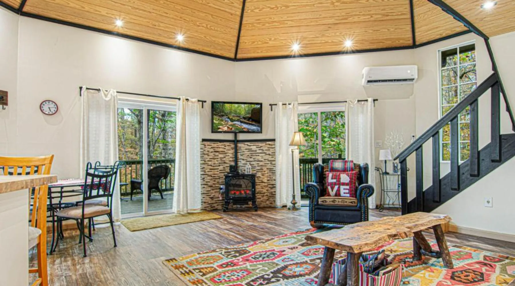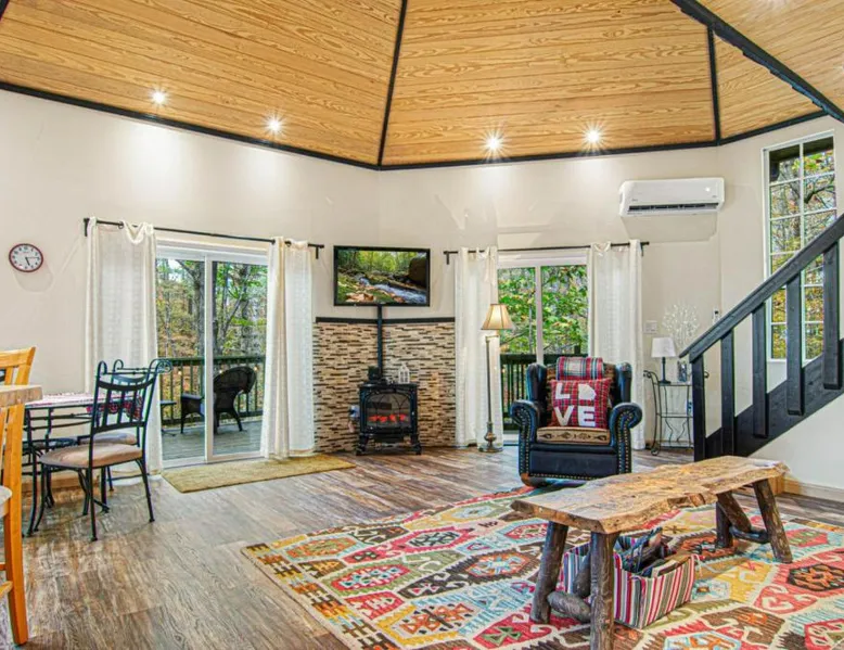 Spa and Wellness Center: The villa offers a spa and wellness center, providing relaxation and rejuvenation for guests. Outdoor Spaces: Guests can enjoy a terrace with a firepit and barbecue, perfect for outdoor gatherings. Comfortable Living: The property features three bedrooms and two bathrooms, equipped with air-conditioning, a fully fitted kitchen, and free WiFi. Convenient Amenities: Additional amenities include a washing machine, TV, and free on-site parking. Local Attractions: Located in Blue Ridge, the villa is 73 mi from Chattanooga Metropolitan Airport. The fireplace is a top feature of this villa. Boasting 3 bedrooms and 2 bathrooms with a shower, this villa has a well-fitted kitchen and a terrace. Guests will find a stovetop, a refrigerator, kitchenware and an oven in the well-equipped kitchen. The villa also includes a barbecue. The air-conditioned villa features a TV, a washing machine, a tea and coffee maker and tumble dryer. The unit offers 3 beds.