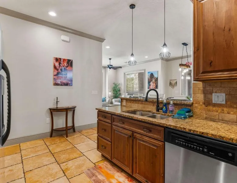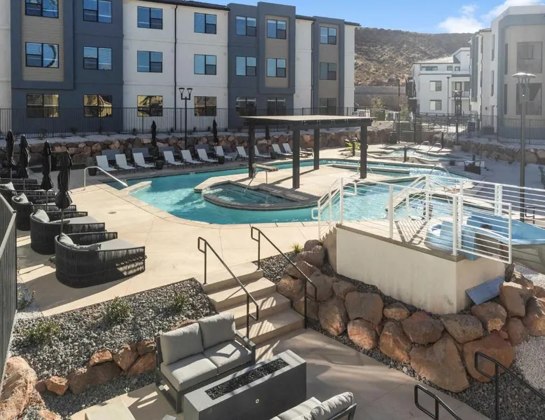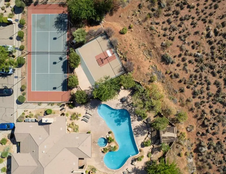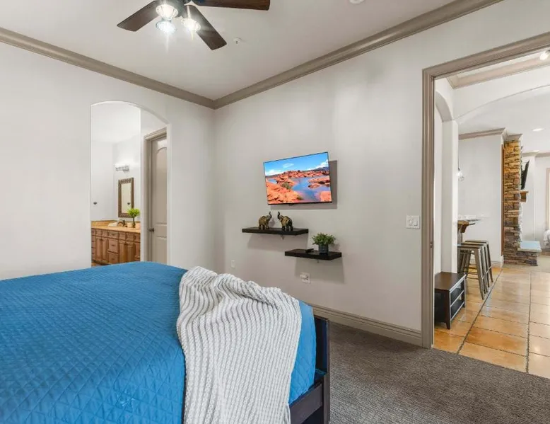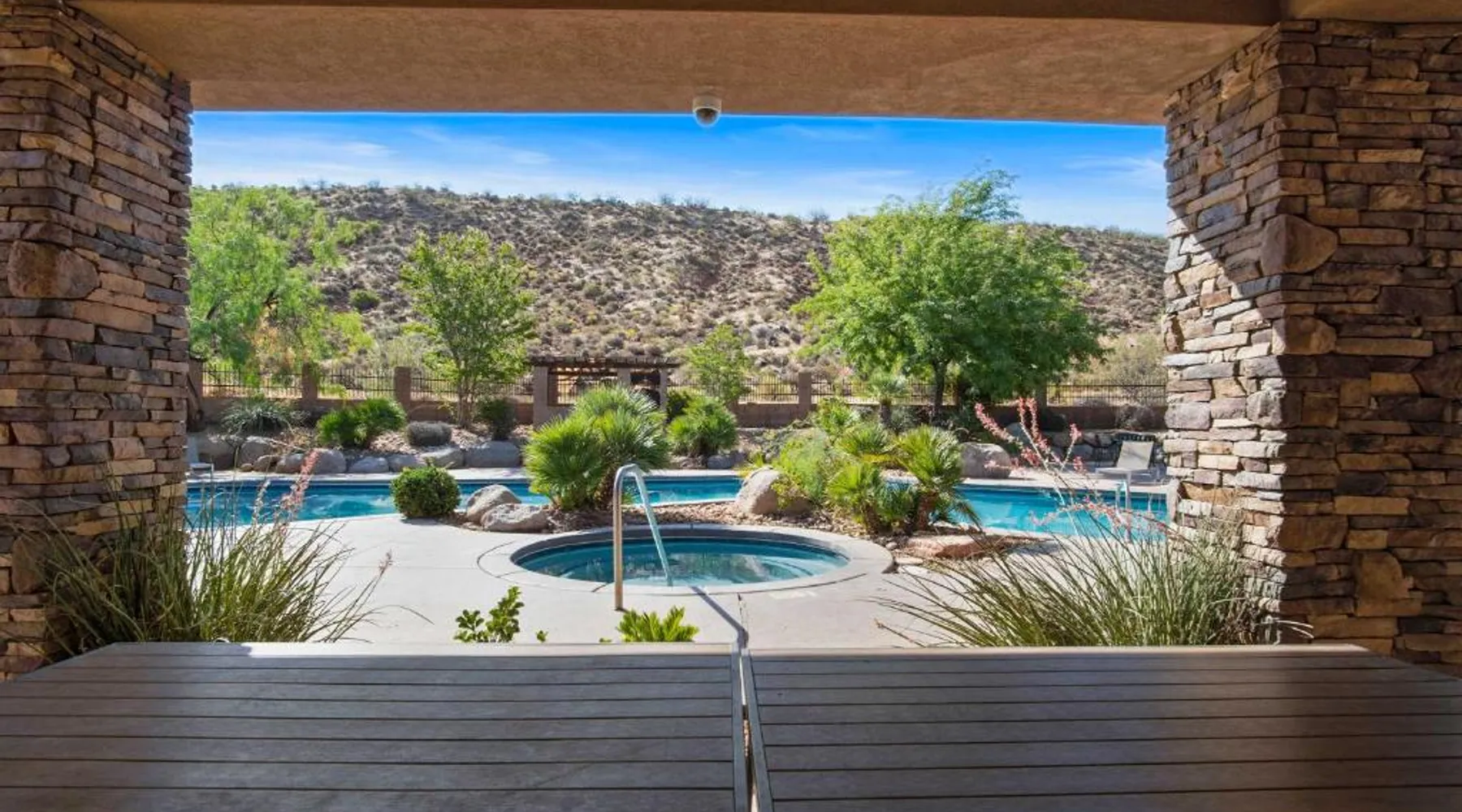 Spacious Accommodations: Sunset Vista in Washington offers a spacious holiday home with three bedrooms and two bathrooms. The property features a private entrance and a fully equipped kitchen with modern appliances. Leisure Facilities: Guests can enjoy an indoor and outdoor swimming pool, a fitness center, and free WiFi. The outdoor pool provides stunning mountain views, while the indoor pool offers a relaxing retreat. Convenient Amenities: The holiday home includes air-conditioning, a washing machine, and a fully equipped kitchen. Additional amenities include a patio, fireplace, barbecue, and free on-site parking. Local Attractions: St. George Regional Airport is 14 mi away. Nearby attractions include St George Temple (9.9 mi), Pine Valley Chapel (5.6 mi), and Dixie State University (8.7 mi). The fireplace is a top feature of this holiday home. Boasting a private entrance, this spacious holiday home also comes with 3 separate bedrooms and 2 bathrooms with a bath and a hairdryer. Guests will find a stovetop, a refrigerator, a dishwasher and kitchenware in the kitchen. The holiday home also includes a barbecue. The air-conditioned holiday home features a TV, a washing machine, a tea and coffee maker, tumble dryer as well as mountain views. The unit has 6 beds.