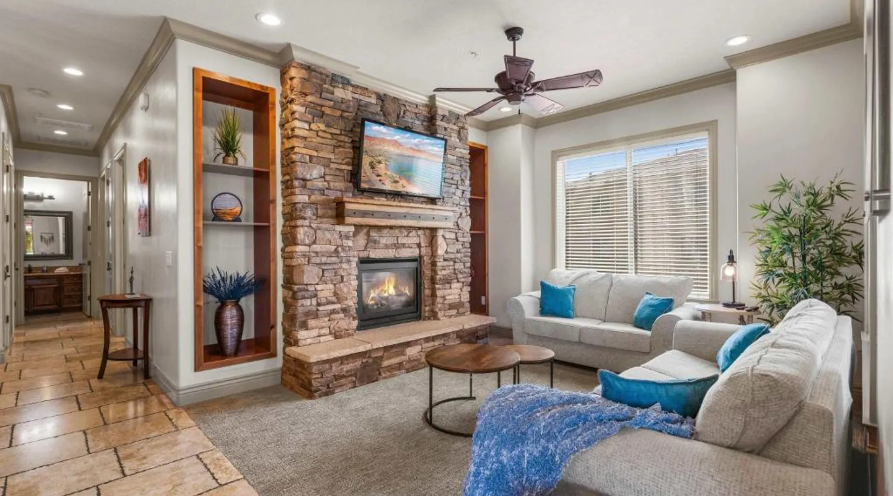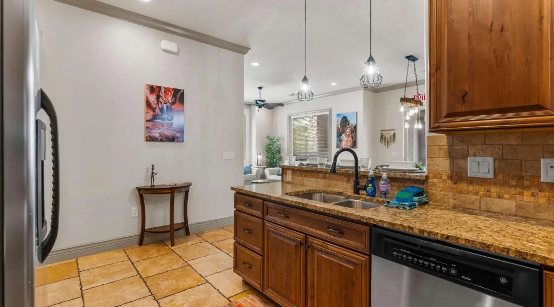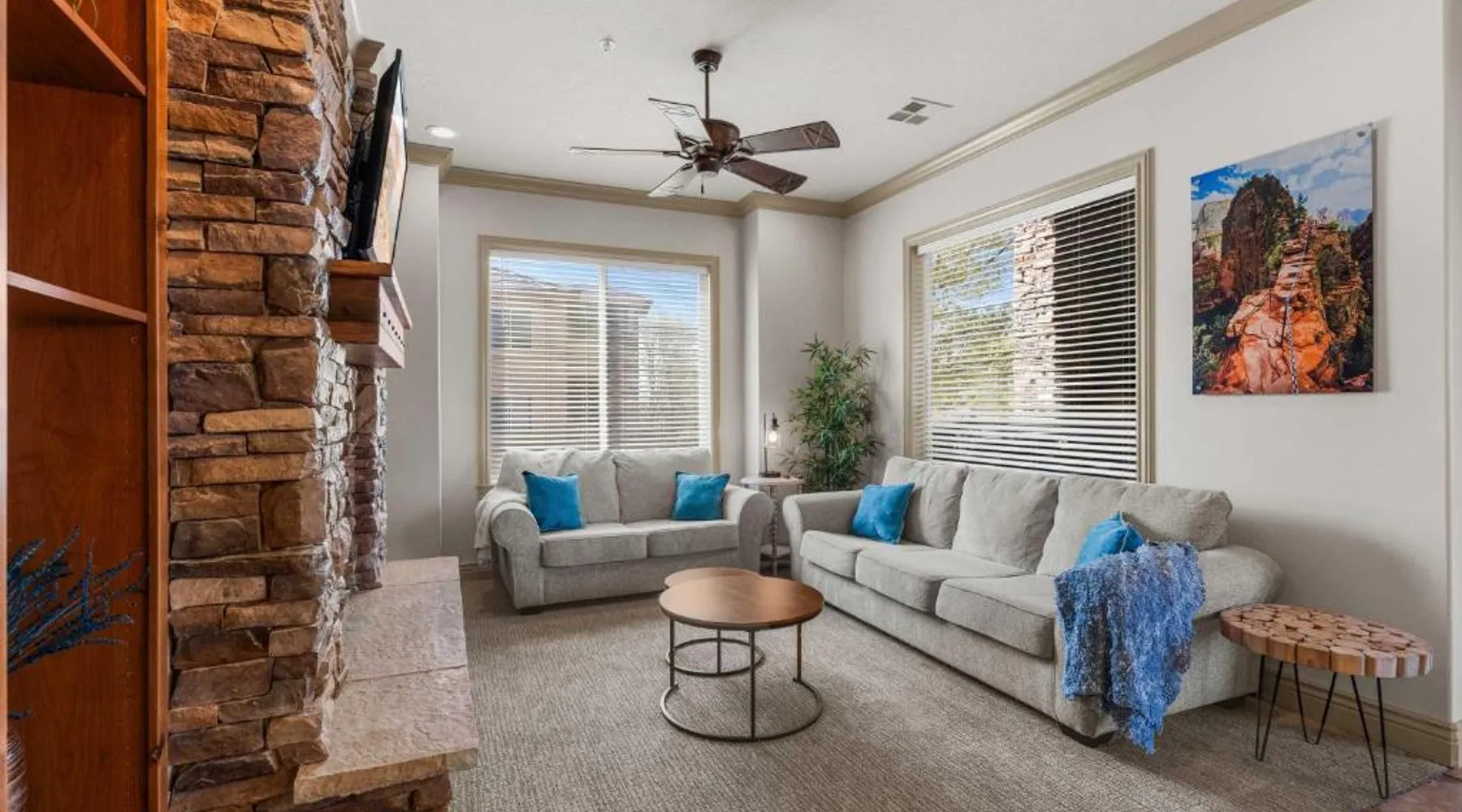 Spacious Accommodations: Sunset Vista in Washington offers a spacious holiday home with three bedrooms and two bathrooms. The property features a private entrance and a fully equipped kitchen with modern appliances. Leisure Facilities: Guests can enjoy an indoor and outdoor swimming pool, a fitness center, and free WiFi. The outdoor pool provides stunning mountain views, while the indoor pool offers a relaxing retreat. Convenient Amenities: The holiday home includes air-conditioning, a washing machine, and a fully equipped kitchen. Additional amenities include a patio, fireplace, barbecue, and free on-site parking. Local Attractions: St. George Regional Airport is 14 mi away. Nearby attractions include St George Temple (9.9 mi), Pine Valley Chapel (5.6 mi), and Dixie State University (8.7 mi). The fireplace is a top feature of this holiday home. Boasting a private entrance, this spacious holiday home also comes with 3 separate bedrooms and 2 bathrooms with a bath and a hairdryer. Guests will find a stovetop, a refrigerator, a dishwasher and kitchenware in the kitchen. The holiday home also includes a barbecue. The air-conditioned holiday home features a TV, a washing machine, a tea and coffee maker, tumble dryer as well as mountain views. The unit has 6 beds.