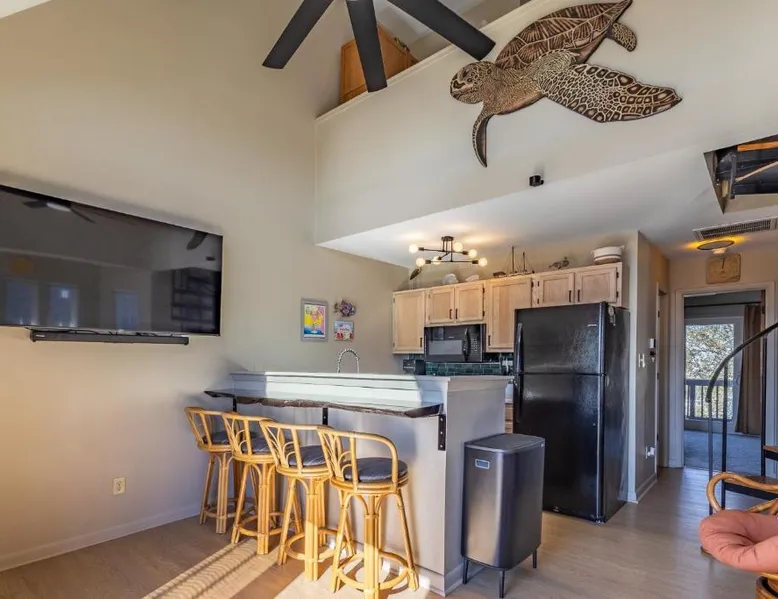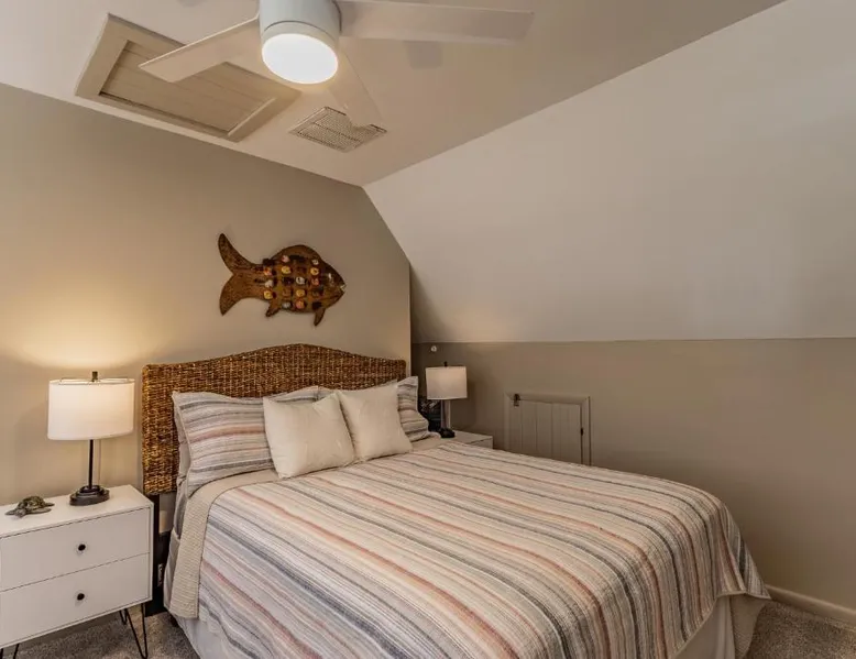 Spacious Holiday Home in Surf City: The Sandy Spot offers a spacious holiday home in Surf City, United States. Guests enjoy free WiFi, ensuring connectivity during their stay. Comfortable Living Spaces: The property features two bedrooms and two bathrooms, a living room, and a fully equipped kitchen. Amenities include air-conditioning, a balcony with sea views, washing machine, and a dishwasher. Convenient Location: Located a few steps from Surf City Beach, the holiday home is 30 mi from Wilmington International Airport. Nearby attractions include Arlie Gardens, 29 mi away. The bungalow features a seating area, a dining area, as well as a shared bathroom featuring a bath and a shower. The well-fitted kitchen features a stovetop, a refrigerator, a dishwasher and an oven. The spacious air-conditioned bungalow offers a flat-screen TV with cable channels, a washing machine, a private entrance, a tea and coffee maker as well as sea views. The unit offers 2 beds.