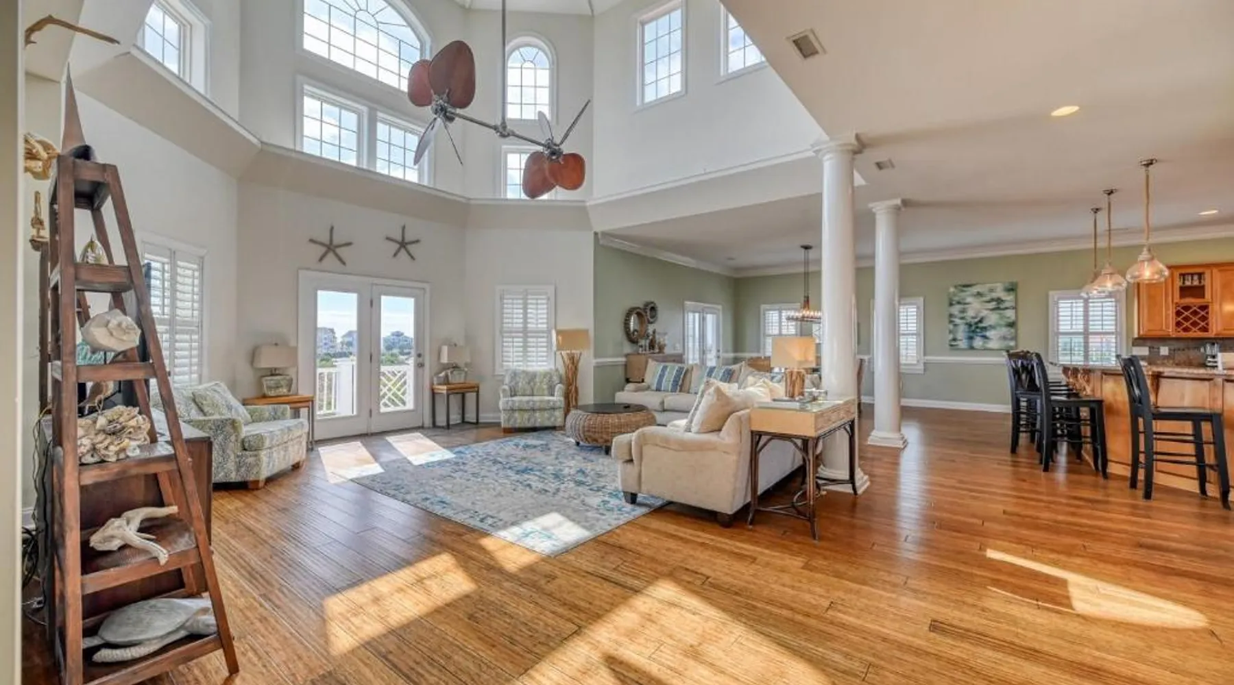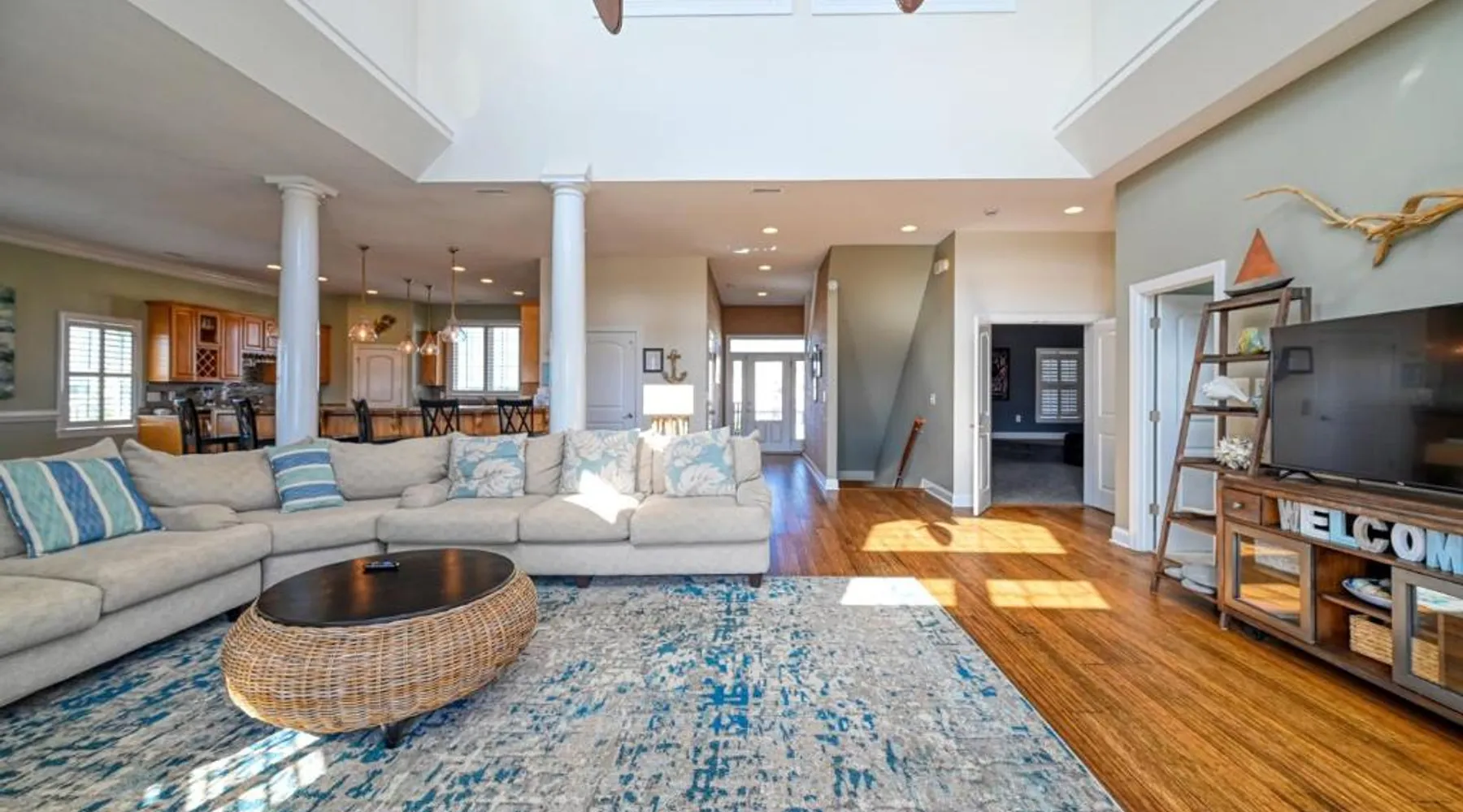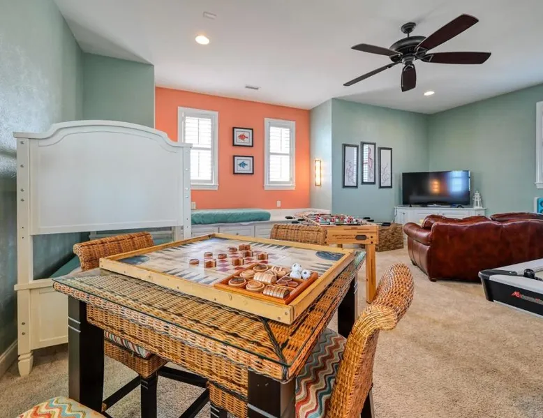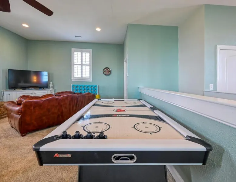 Spacious Accommodations: Dog Allowed - Oceanview- Private Beach Access in North Topsail Beach offers seven bedrooms and six bathrooms. The holiday home includes a living room with a fireplace and a fully equipped kitchen. Modern Amenities: Guests enjoy free WiFi, air-conditioning, a washing machine, and a games room. Free on-site private parking is available, along with a elevator for easy access. Outdoor Spaces: The property features a private beach access, a balcony with ocean views, and a barbecue area. A dining area and seating area provide comfortable spaces for relaxation. Local Attractions: North Topsail Beach is a 7-minute walk away, and Albert J. Ellis Airport is 34 mi from the property. This holiday home features a fireplace. Guests will find a stovetop, a refrigerator, a dishwasher and kitchenware in the fully equipped kitchen. The holiday home also comes with a barbecue. This holiday home is air-conditioned and has a seating area with a flat-screen TV, a washing machine, a tea and coffee maker, a dining area, as well as tumble dryer. The unit has 11 beds.