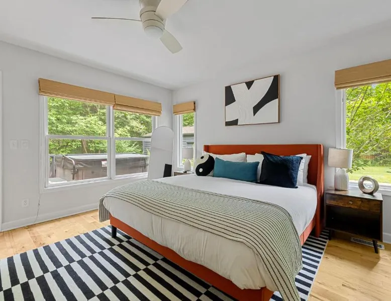 Spacious Holiday Home in Union Pier: Gray Haven offers a spacious holiday home in Union Pier, featuring four bedrooms and three bathrooms. The property includes a fully equipped kitchen, air-conditioning, and a private entrance. Outdoor Amenities: Guests can enjoy a garden, outdoor fireplace, hot tub, and outdoor seating area. Free WiFi is available throughout the property, ensuring connectivity during the stay. Convenient Facilities: The holiday home provides free on-site private parking, a washing machine, and a fully equipped kitchen with modern appliances. Additional amenities include a barbecue, outdoor dining area, and a TV. Nearby Attractions: South Bend Regional Airport is located 28 mi from Gray Haven, offering convenient travel options. This holiday home's standout features are the private pool and fireplace. Boasting a private entrance, this spacious holiday home also includes 4 separate bedrooms and 3 bathrooms with a bath. Guests will find a stovetop, a refrigerator, a dishwasher and kitchenware in the fully equipped kitchen. The holiday home also features a barbecue. This holiday home has air conditioning, a washing machine, a TV and an outdoor dining area. The unit has 5 beds.