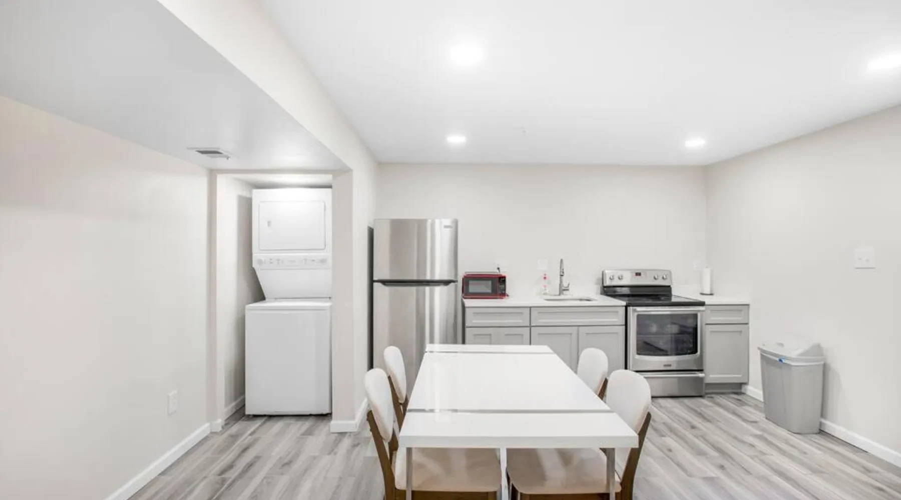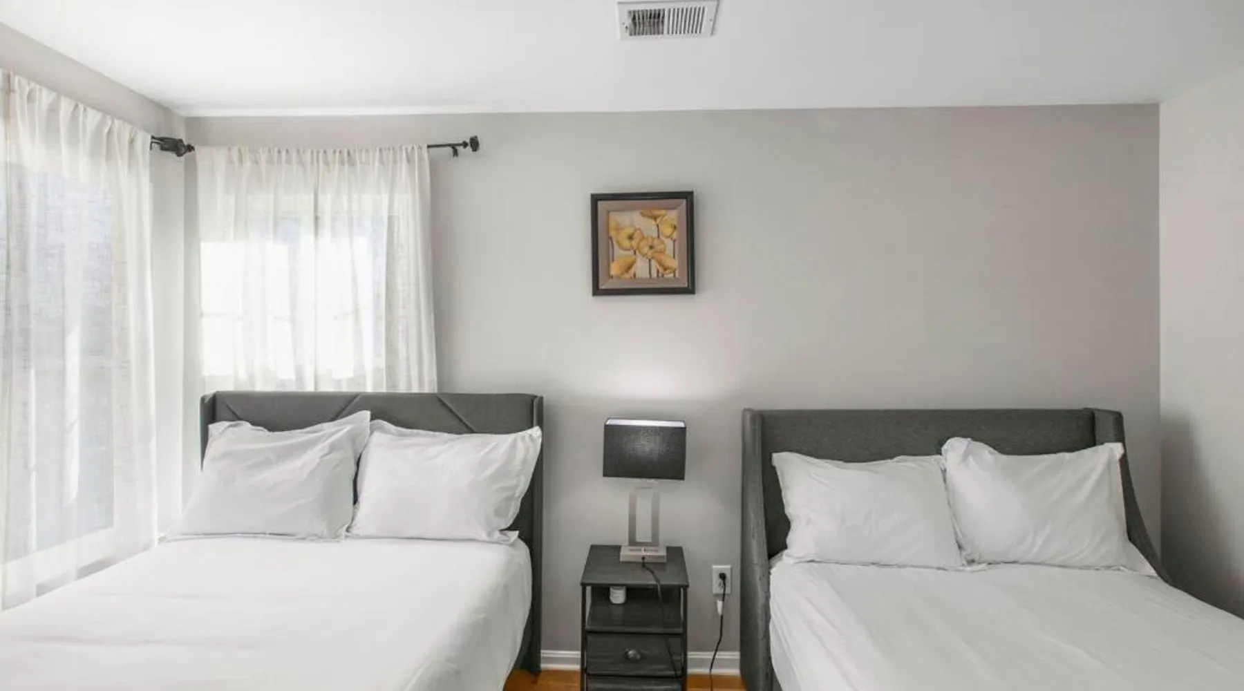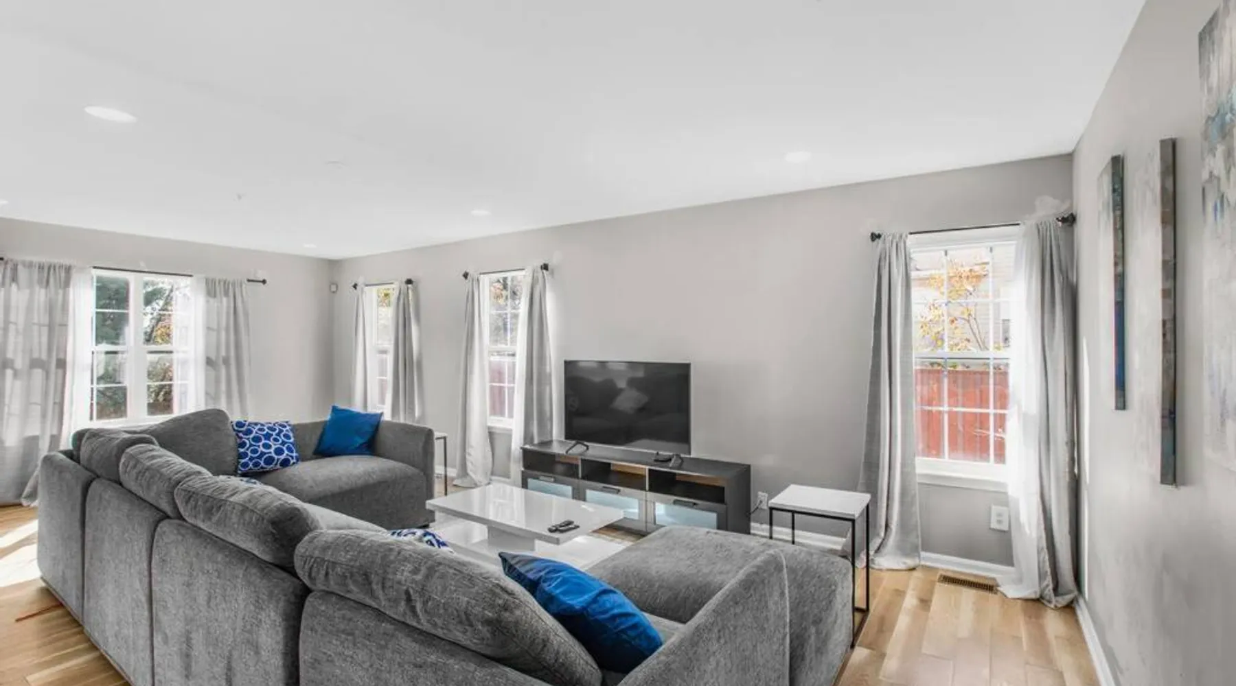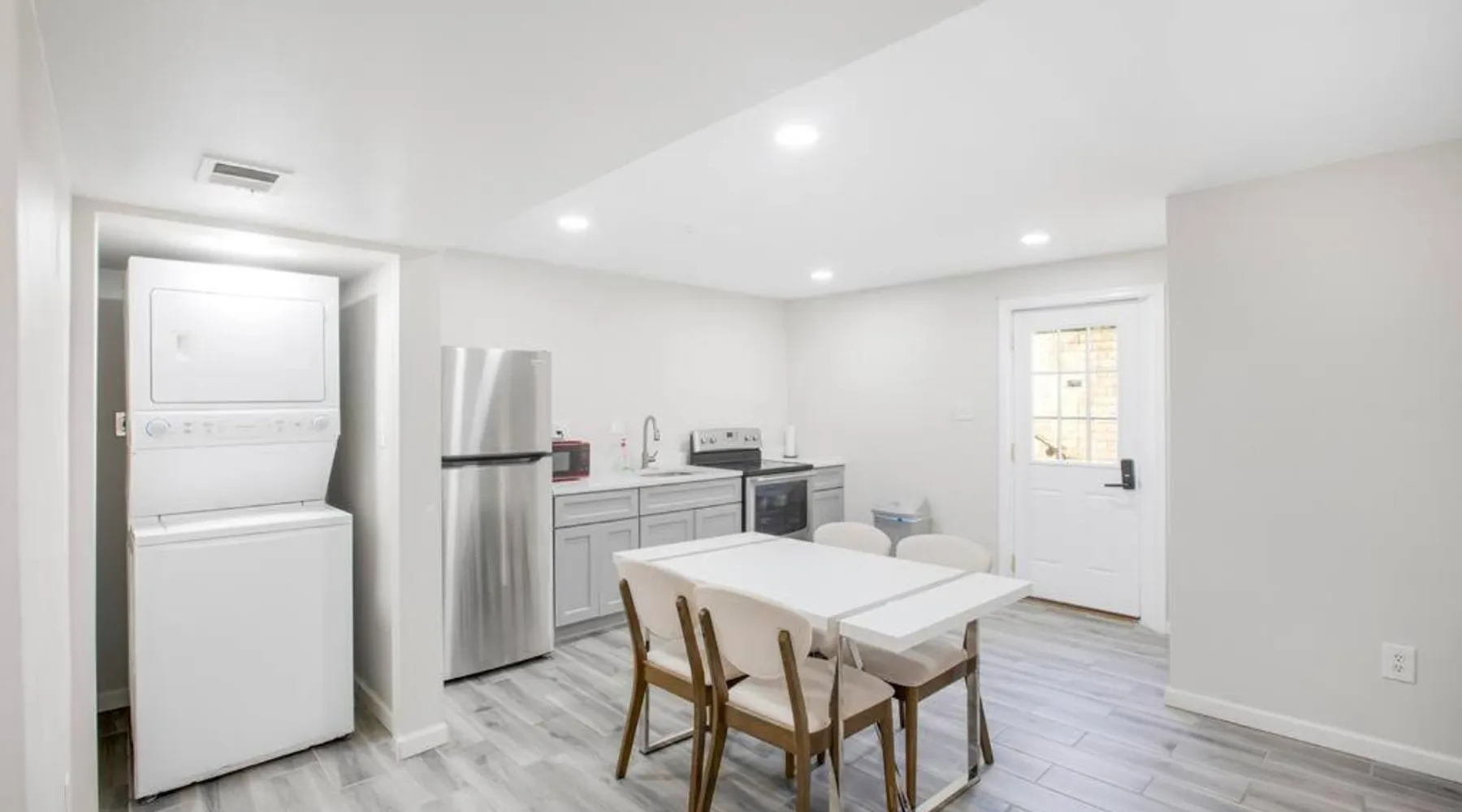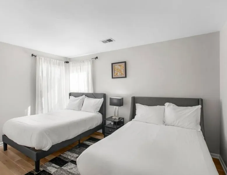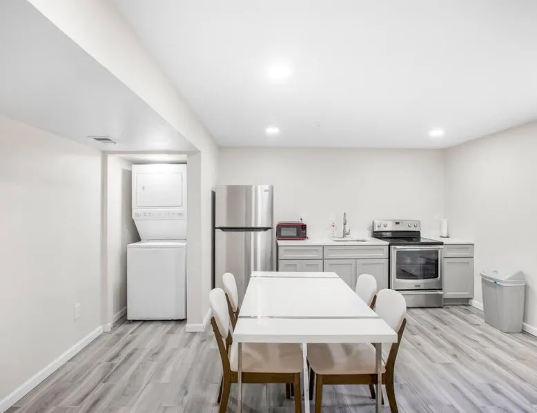 Spacious Accommodations: Charming Silver Spring Oasis in Silver Spring offers seven bedrooms and four bathrooms. Family rooms provide ample space for relaxation and comfort. Modern Amenities: Guests enjoy free WiFi, air-conditioning, a washing machine, and a fully equipped kitchen. A TV ensures entertainment throughout the stay. Convenient Location: Located 15 mi from Ronald Reagan Washington National Airport, the property is close to attractions such as Walter E Washington Convention Center (8.7 mi) and the National Mall (9.3 mi). The air-conditioned holiday home has 7 bedrooms, 4 bathrooms and a kitchen. The holiday home's kitchen is available for cooking and storing food. The holiday home offers a washing machine, tumble dryer, heating and a flat-screen TV. The unit has 8 beds.