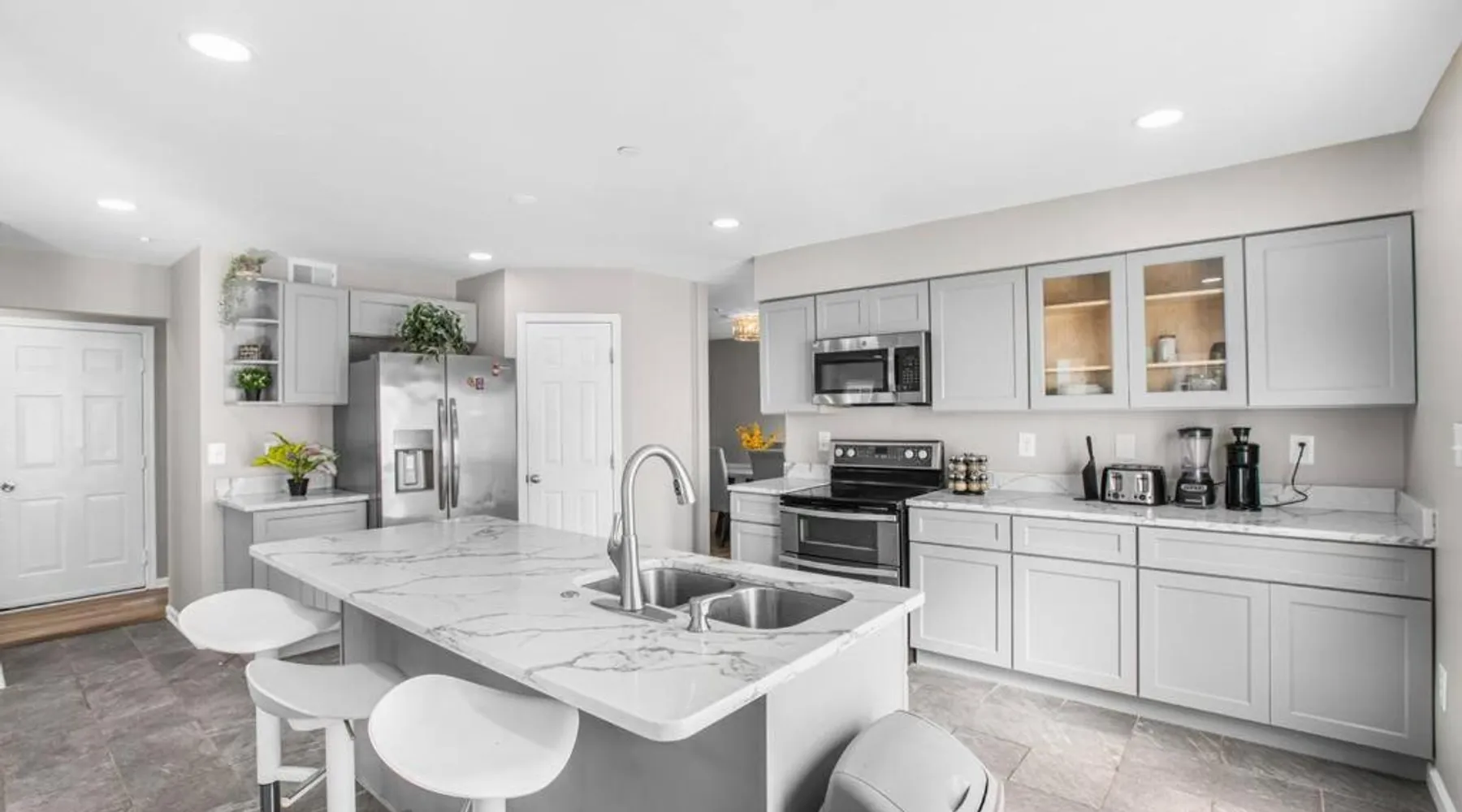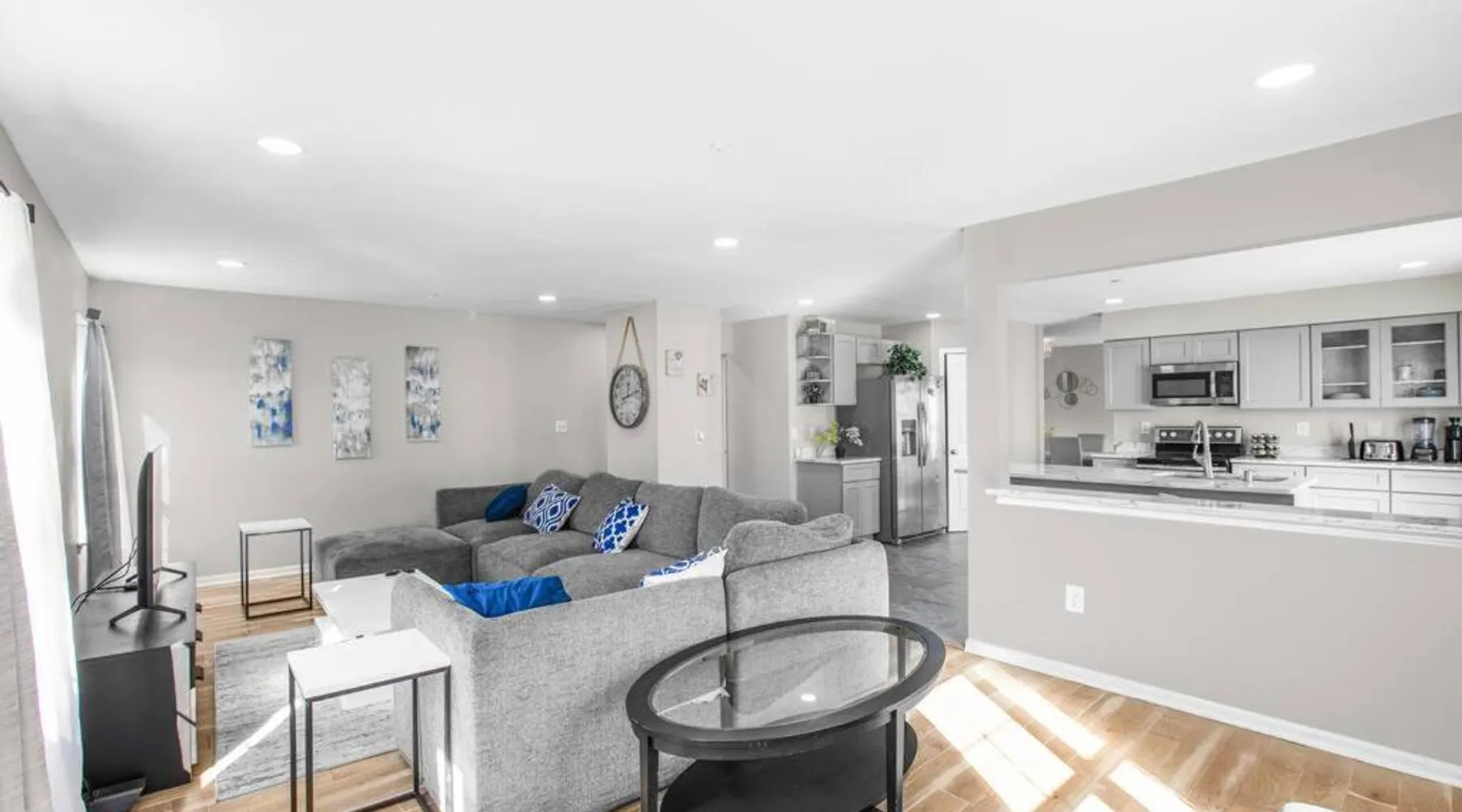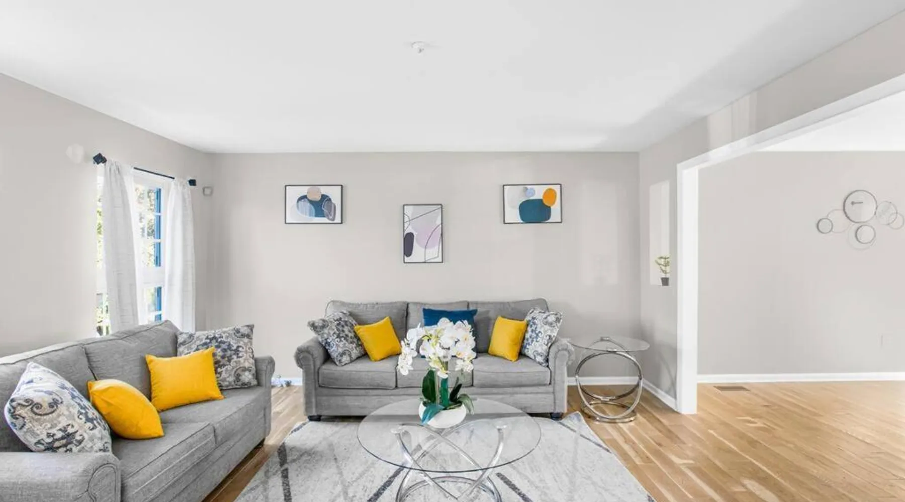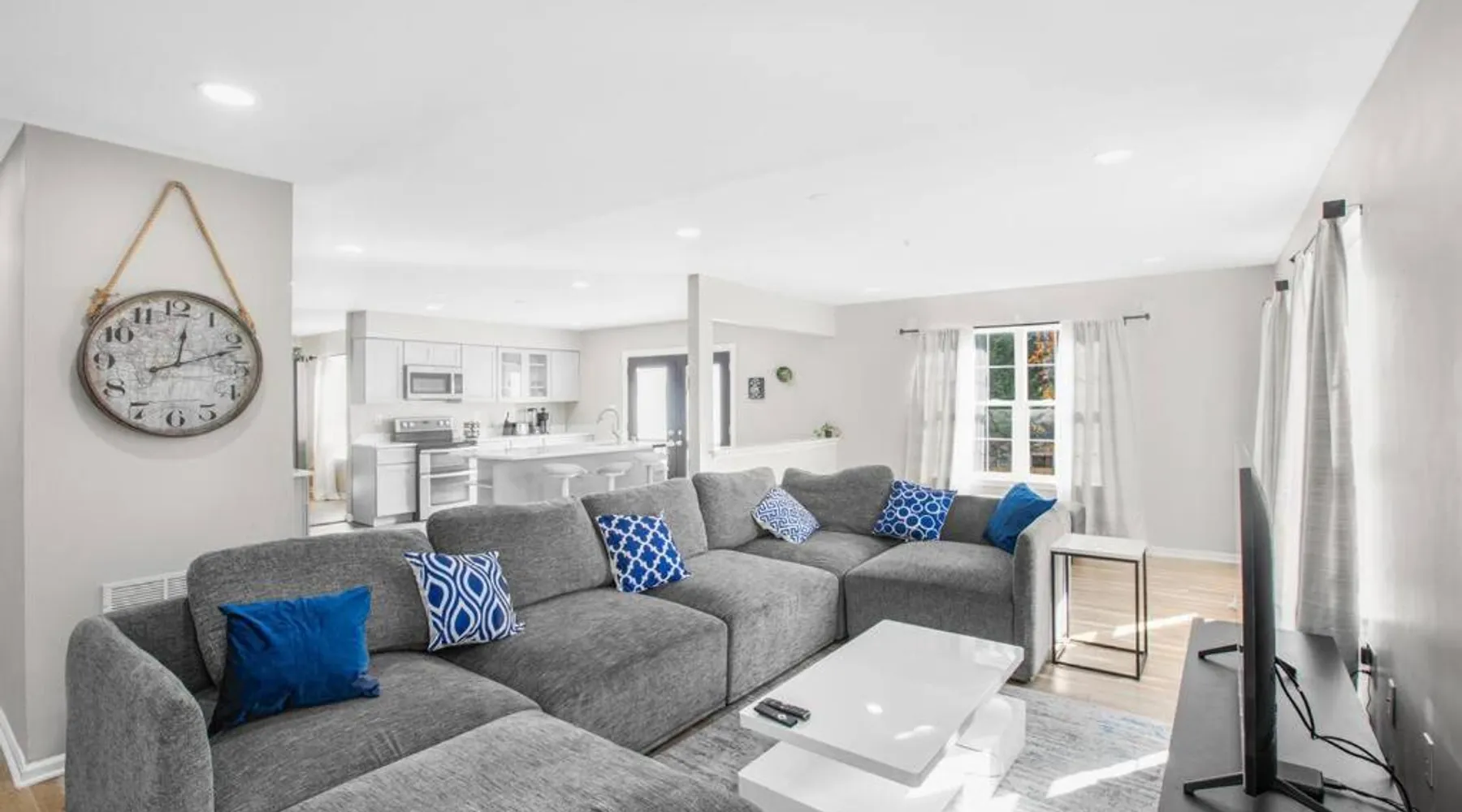 Spacious Accommodations: Charming Silver Spring Oasis in Silver Spring offers seven bedrooms and four bathrooms. Family rooms provide ample space for relaxation and comfort. Modern Amenities: Guests enjoy free WiFi, air-conditioning, a washing machine, and a fully equipped kitchen. A TV ensures entertainment throughout the stay. Convenient Location: Located 15 mi from Ronald Reagan Washington National Airport, the property is close to attractions such as Walter E Washington Convention Center (8.7 mi) and the National Mall (9.3 mi). The air-conditioned holiday home has 7 bedrooms, 4 bathrooms and a kitchen. The holiday home's kitchen is available for cooking and storing food. The holiday home offers a washing machine, tumble dryer, heating and a flat-screen TV. The unit has 8 beds.
