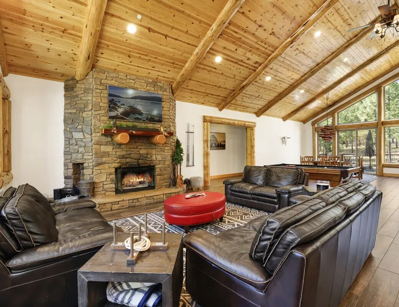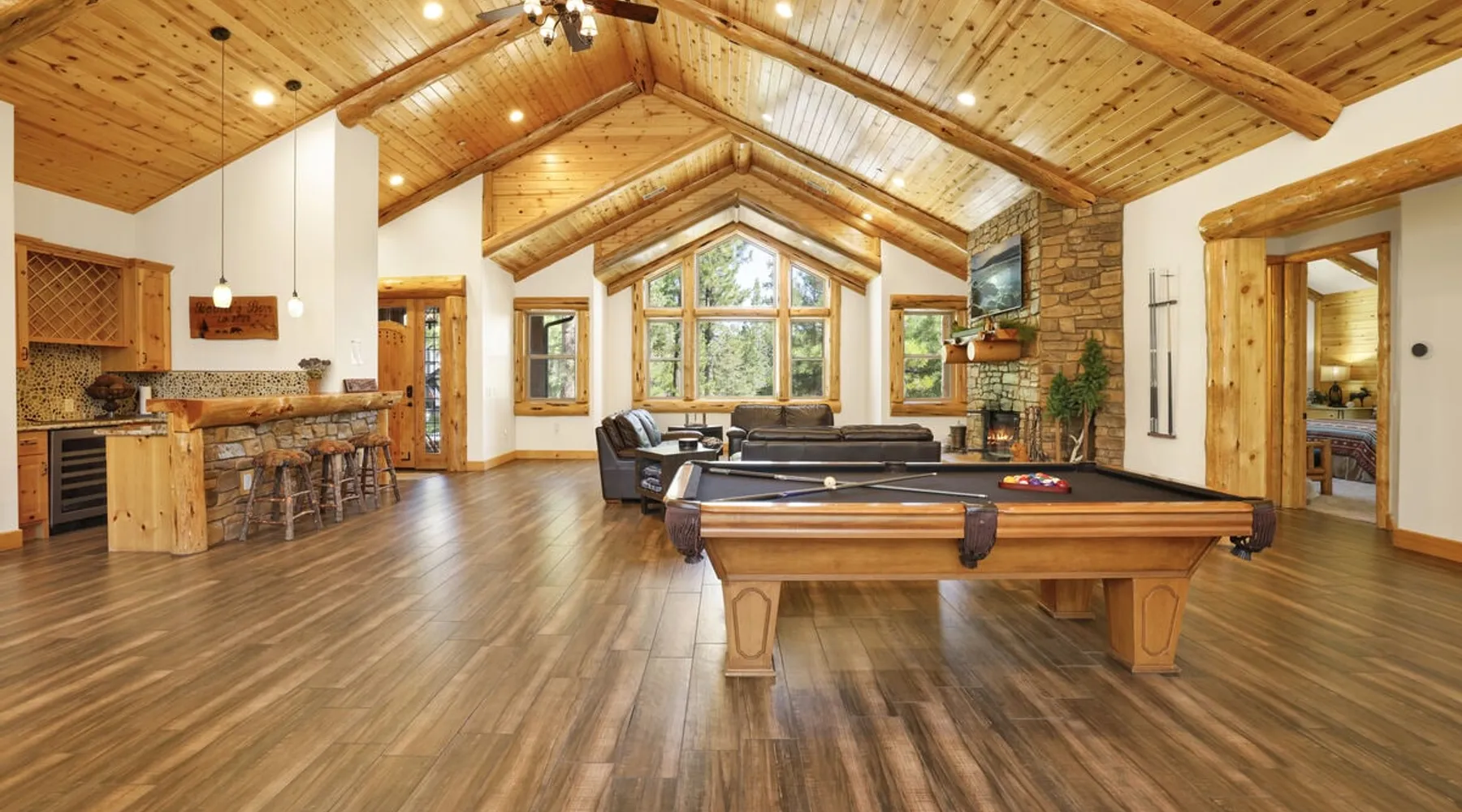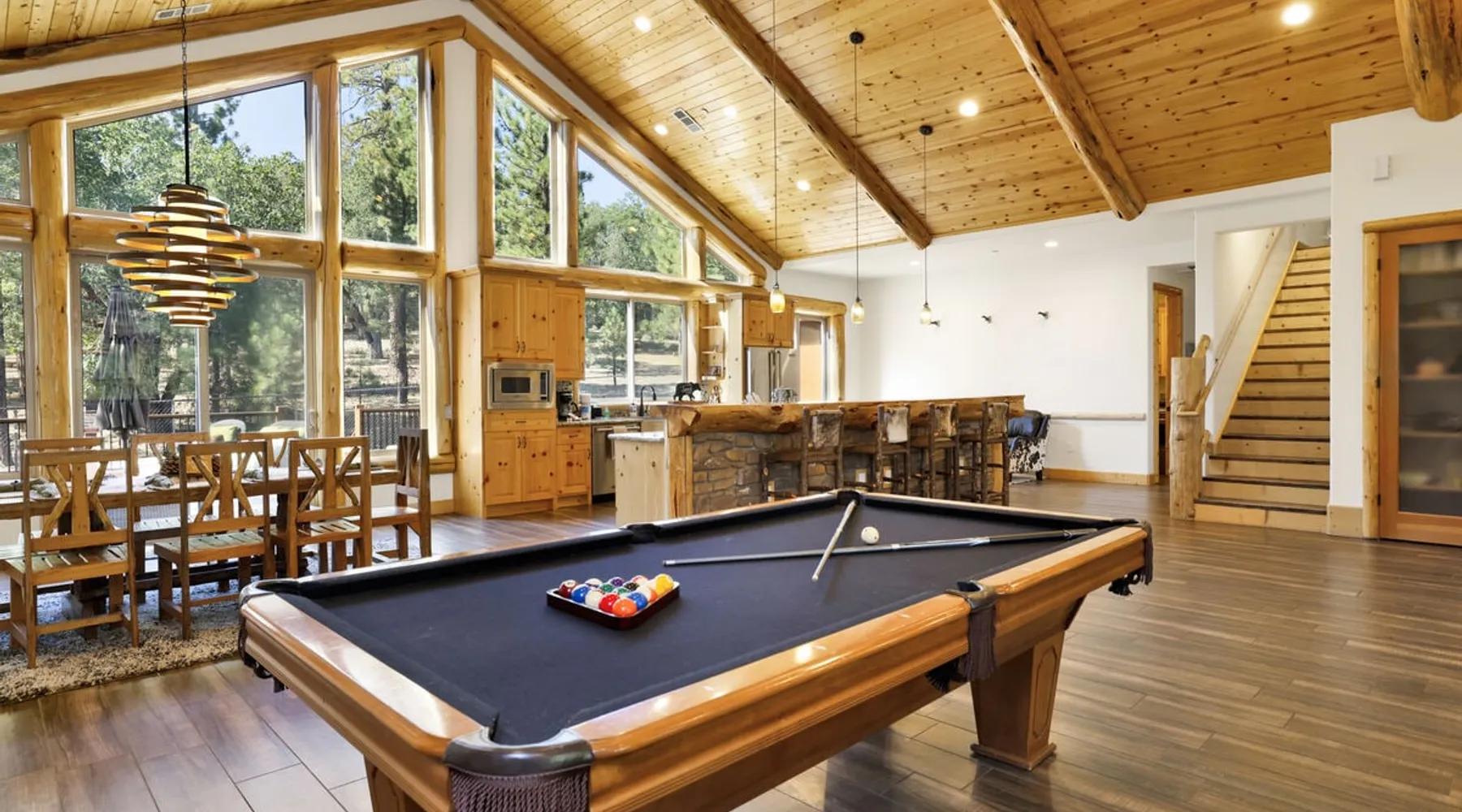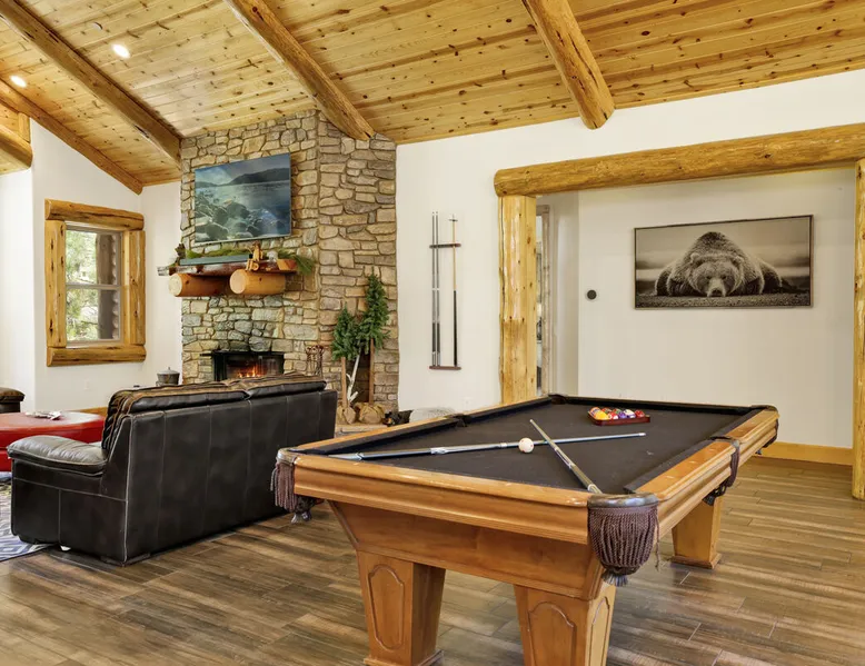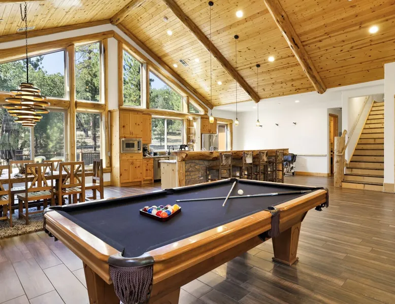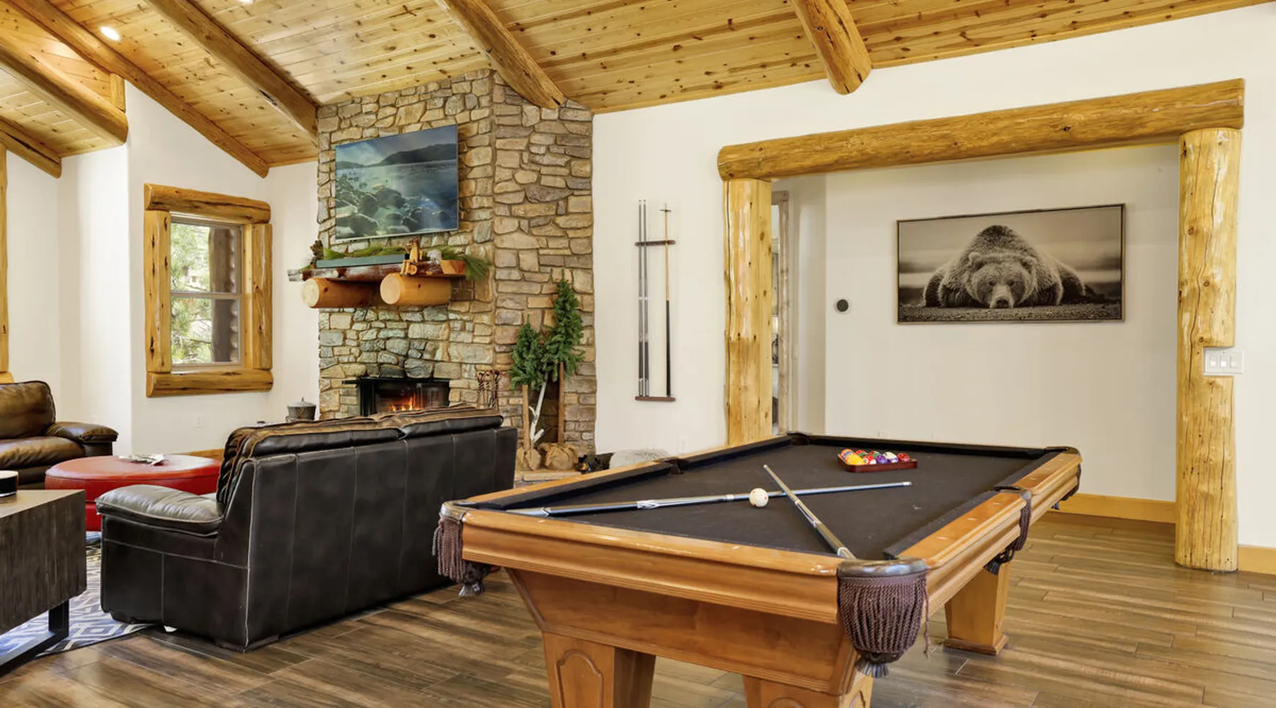 Heavenly Lodge Big Bear ~ Ultra-Modern Mountain Retreat with Hot Tub & Pool Table Welcome to Heavenly Lodge, your luxurious mountain getaway in the exclusive Heavenly Valley Estates—perfectly located between Snow Summit and Bear Mountain, and just minutes from Big Bear Lake and the Village. Packed with the comforts from home paired with your vacation stay in mind your group will be blown away by this incredible Big Bear log cabin retreat! Perfect for any season you will love your vacation here! The space Heavenly Lodge Big Bear ~ Ultra-Modern Mountain Retreat with Hot Tub & Pool Table Heavenly Log Home is your next home away from home, boasting luxury from head to toe our home is sure to impress your entire group! Located in the upscale "Heavenly Valley Estates" you can enjoy a stroll through fine luxury Big Bear homes within a forested neighborhood conveniently sat right between Snow Summit and Bear Mountain Resorts, you will be within minutes of all local activities including Big Bear Lake and the Village shops. Heavenly Log Home is the cabin that you will be returning to for all seasons with your family and friends year after year for more memorable vacations. Enter your mountain home into the great room, boasting high vaulted knotty pine ceilings, gorgeous hardwood floors, an open and spacious floor plan, and amazing windows that allow in an incredible amount of natural lighting, you will instantly understand why this place is heavenly. Enjoy sitting around the toasty fire and watching a movie on the massive 65'' flat screen TV or challenge the group at a game of pool on the provided billiards table. Perfect for entertaining you will find a cute wet bar area for your adult beverages plus so many fun areas to entertain a large group or family. The extra-large gourmet kitchen is perfect for preparing meals or entertaining a dinner party. Boasting cookware and new stainless appliances paired with gorgeous granite countertops and beautiful pine cabinets, the heavenly log décor never ends in this palace! You will love the formal dining room with sit down seating at the log dining table also ordaining floor to ceiling windows and views, plus the breakfast bar offers additional seating for group meals together. The layout will ensure your quality time together or peace and quiet to enjoy separate activities, with Amazon Alexa conveniently placed throughout the property to assist with nearby restaurants, and things to do, the modern touches make for an unbeatable vacation here! Boasting a brand-new Life Source water filtration system and fine upscale amenities. the fun never ends here at Heavenly Log Home! Your first three bedrooms are located on the first floor as you enter while the kids' room with foosball is located upstairs, all are made up for your visit with warm linens, blankets, and fresh shower towels and each boasts a massive flat screen TV- no more fighting over what to watch while you unwind at night. Venturing outside from the kitchen and dining areas you are greeted with the most amazing redwood sun deck, recently doubled in size this is the ultimate spot to spend your vacation time. Boasting ample outdoor cabana style sun chairs, a propane BBQ, and an amazing hot tub under the stars, this is the spot your group will spend your evenings unwinding while you grill up dinner and soak up your day of adventures in the spa. Bedroom 1: King Bed, Smart TV w/ Cable + DVR, Private Full Bath- Downstairs Entry Level Bedroom 2: King Bed Plus Full Futon, 65” Smart TV w/ Cable, Private Full Bath- Downstairs Entry Level Bedroom 3: King Bed, 55” Flat Screen w/ Cable, Private Full Bath w/ Jetted Spa Tub- Downstairs Entry Level Bedroom 4: Two Twin/Full Bunk Bed Sets, 55” Flat Screen w/ Cable + DVR, X- Box Game Console- Upstairs 2nd Level Private Full Bath- Bedroom 1- Downstairs Entry Level Private Full Bath- Bedroom 2- Downstairs Entry Level Private Full Bath w/ Jetted Spa Tub- Bedroom 3- Downstairs Entry Level Hallway Full Bath- Upstairs 2nd Level ~Sleeps 14 ~4 Cars Driveway Parking ~NO PETS ALLLOWED ~3,922 Square Feet ~ City Permit #: Guest access Once checked in, guests can enjoy sole access to their private property for the duration of their booked dates. Registration details 2025-1343