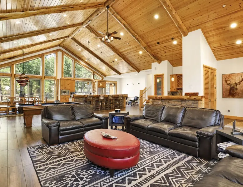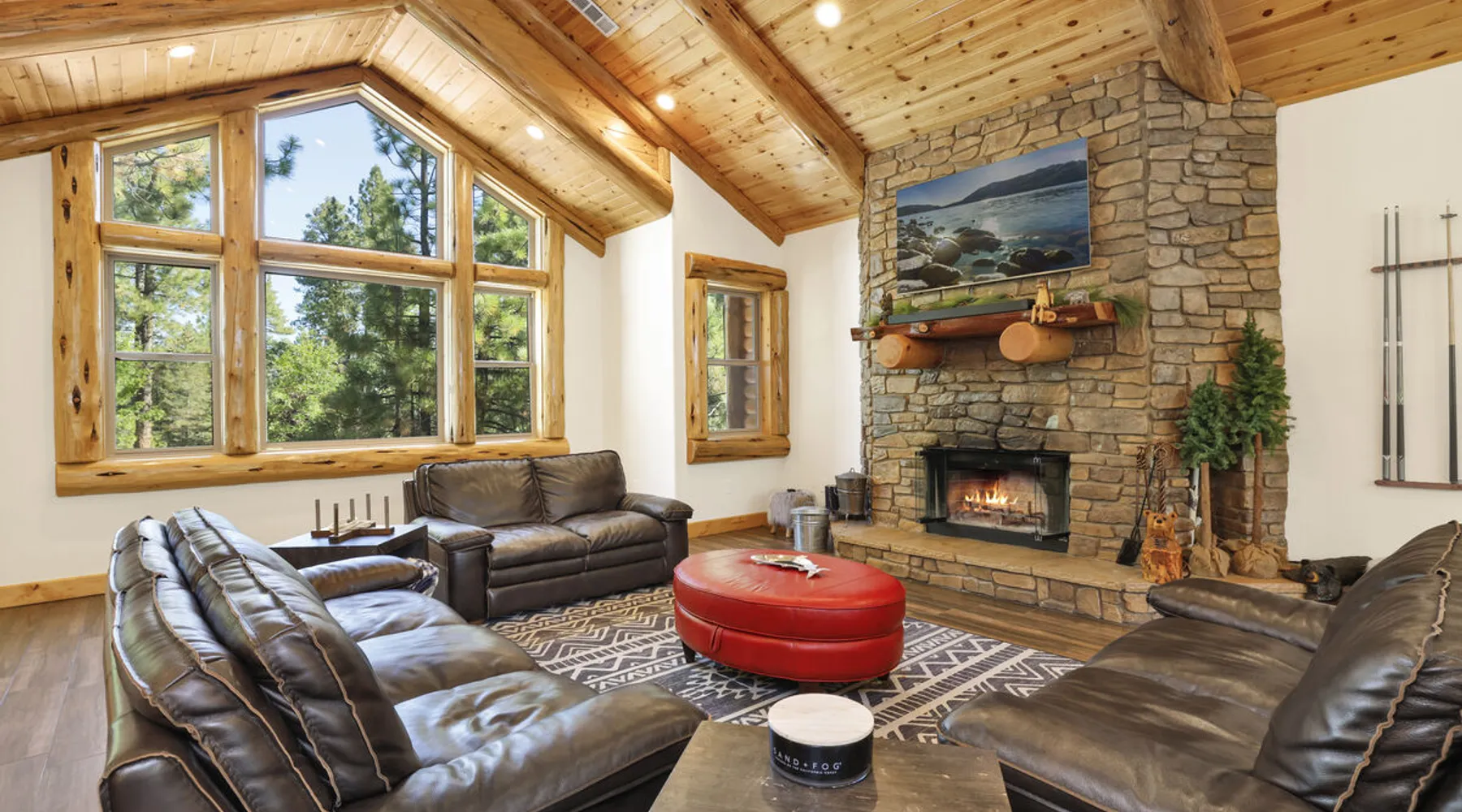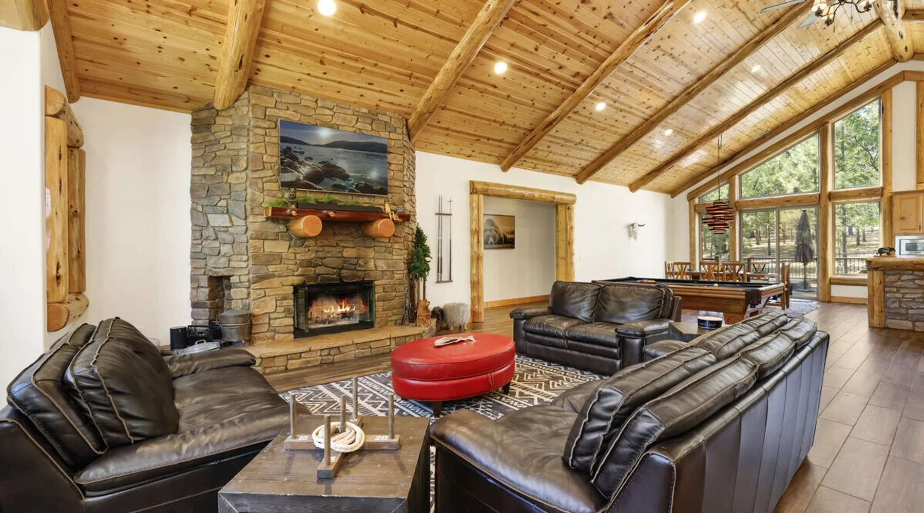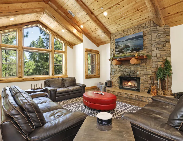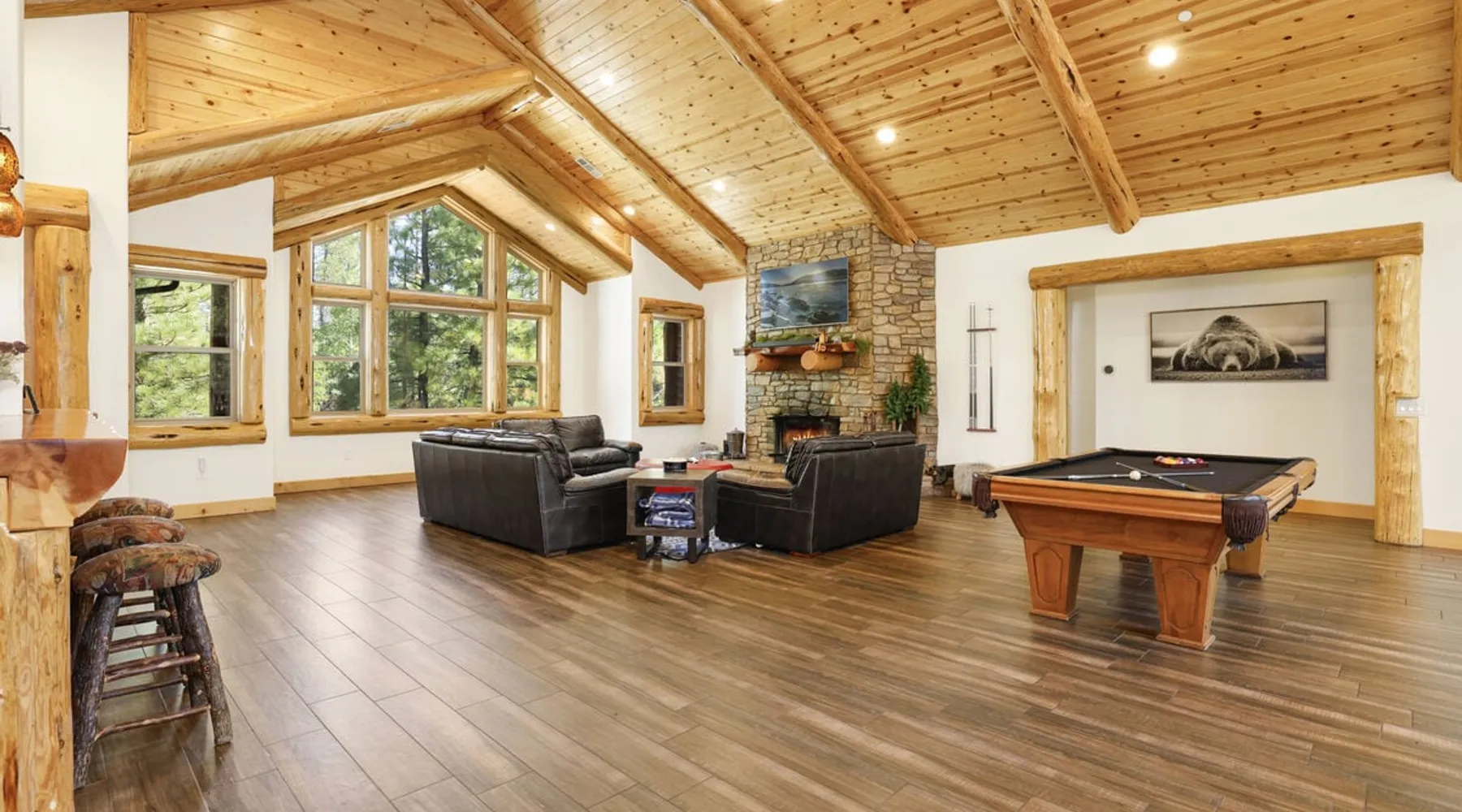 Heavenly Lodge Big Bear ~ Ultra-Modern Mountain Retreat with Hot Tub & Pool Table Welcome to Heavenly Lodge, your luxurious mountain getaway in the exclusive Heavenly Valley Estates—perfectly located between Snow Summit and Bear Mountain, and just minutes from Big Bear Lake and the Village. Packed with the comforts from home paired with your vacation stay in mind your group will be blown away by this incredible Big Bear log cabin retreat! Perfect for any season you will love your vacation here! The space Heavenly Lodge Big Bear ~ Ultra-Modern Mountain Retreat with Hot Tub & Pool Table Heavenly Log Home is your next home away from home, boasting luxury from head to toe our home is sure to impress your entire group! Located in the upscale "Heavenly Valley Estates" you can enjoy a stroll through fine luxury Big Bear homes within a forested neighborhood conveniently sat right between Snow Summit and Bear Mountain Resorts, you will be within minutes of all local activities including Big Bear Lake and the Village shops. Heavenly Log Home is the cabin that you will be returning to for all seasons with your family and friends year after year for more memorable vacations. Enter your mountain home into the great room, boasting high vaulted knotty pine ceilings, gorgeous hardwood floors, an open and spacious floor plan, and amazing windows that allow in an incredible amount of natural lighting, you will instantly understand why this place is heavenly. Enjoy sitting around the toasty fire and watching a movie on the massive 65'' flat screen TV or challenge the group at a game of pool on the provided billiards table. Perfect for entertaining you will find a cute wet bar area for your adult beverages plus so many fun areas to entertain a large group or family. The extra-large gourmet kitchen is perfect for preparing meals or entertaining a dinner party. Boasting cookware and new stainless appliances paired with gorgeous granite countertops and beautiful pine cabinets, the heavenly log décor never ends in this palace! You will love the formal dining room with sit down seating at the log dining table also ordaining floor to ceiling windows and views, plus the breakfast bar offers additional seating for group meals together. The layout will ensure your quality time together or peace and quiet to enjoy separate activities, with Amazon Alexa conveniently placed throughout the property to assist with nearby restaurants, and things to do, the modern touches make for an unbeatable vacation here! Boasting a brand-new Life Source water filtration system and fine upscale amenities. the fun never ends here at Heavenly Log Home! Your first three bedrooms are located on the first floor as you enter while the kids' room with foosball is located upstairs, all are made up for your visit with warm linens, blankets, and fresh shower towels and each boasts a massive flat screen TV- no more fighting over what to watch while you unwind at night. Venturing outside from the kitchen and dining areas you are greeted with the most amazing redwood sun deck, recently doubled in size this is the ultimate spot to spend your vacation time. Boasting ample outdoor cabana style sun chairs, a propane BBQ, and an amazing hot tub under the stars, this is the spot your group will spend your evenings unwinding while you grill up dinner and soak up your day of adventures in the spa. Bedroom 1: King Bed, Smart TV w/ Cable + DVR, Private Full Bath- Downstairs Entry Level Bedroom 2: King Bed Plus Full Futon, 65” Smart TV w/ Cable, Private Full Bath- Downstairs Entry Level Bedroom 3: King Bed, 55” Flat Screen w/ Cable, Private Full Bath w/ Jetted Spa Tub- Downstairs Entry Level Bedroom 4: Two Twin/Full Bunk Bed Sets, 55” Flat Screen w/ Cable + DVR, X- Box Game Console- Upstairs 2nd Level Private Full Bath- Bedroom 1- Downstairs Entry Level Private Full Bath- Bedroom 2- Downstairs Entry Level Private Full Bath w/ Jetted Spa Tub- Bedroom 3- Downstairs Entry Level Hallway Full Bath- Upstairs 2nd Level ~Sleeps 14 ~4 Cars Driveway Parking ~NO PETS ALLLOWED ~3,922 Square Feet ~ City Permit #: Guest access Once checked in, guests can enjoy sole access to their private property for the duration of their booked dates. Registration details 2025-1343