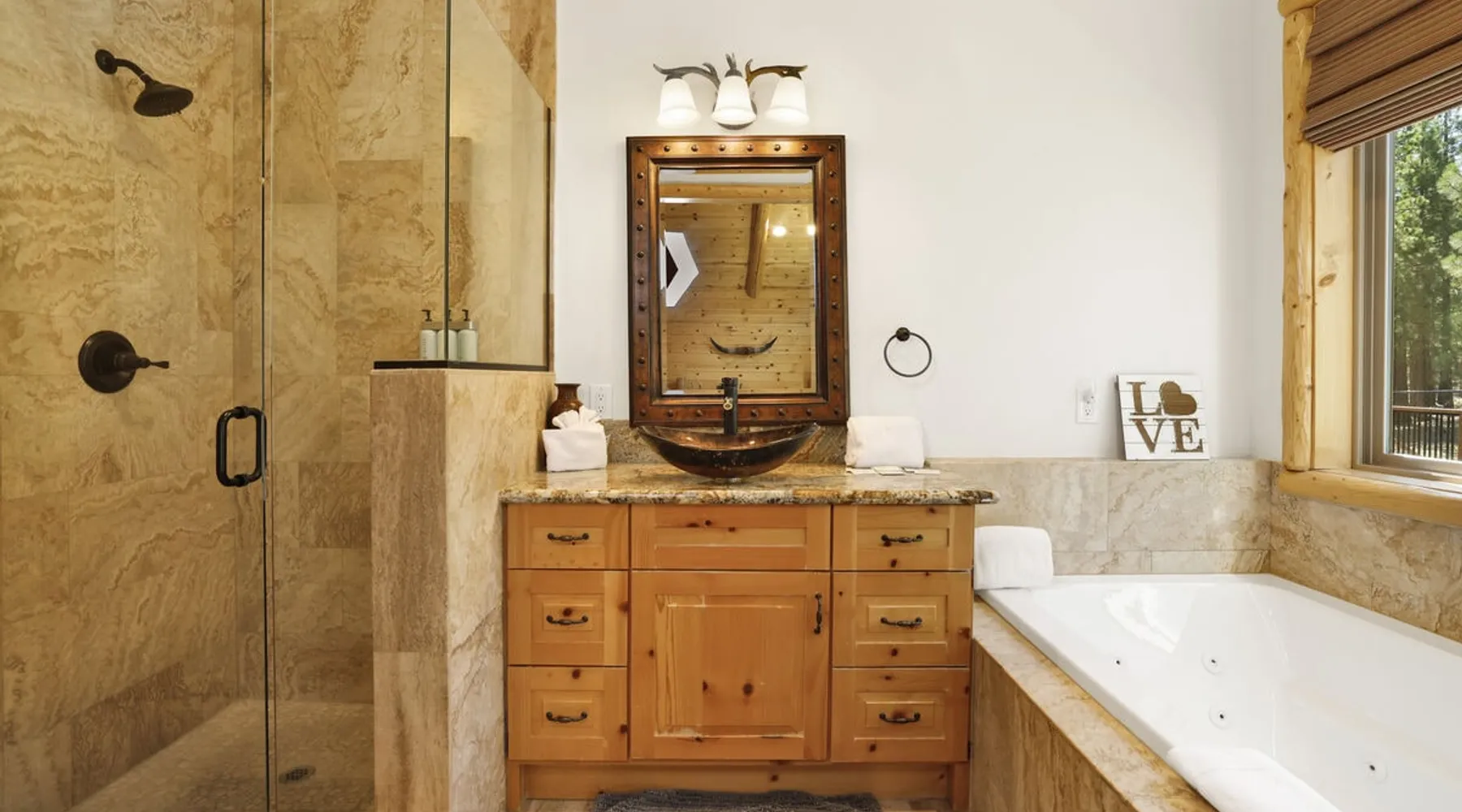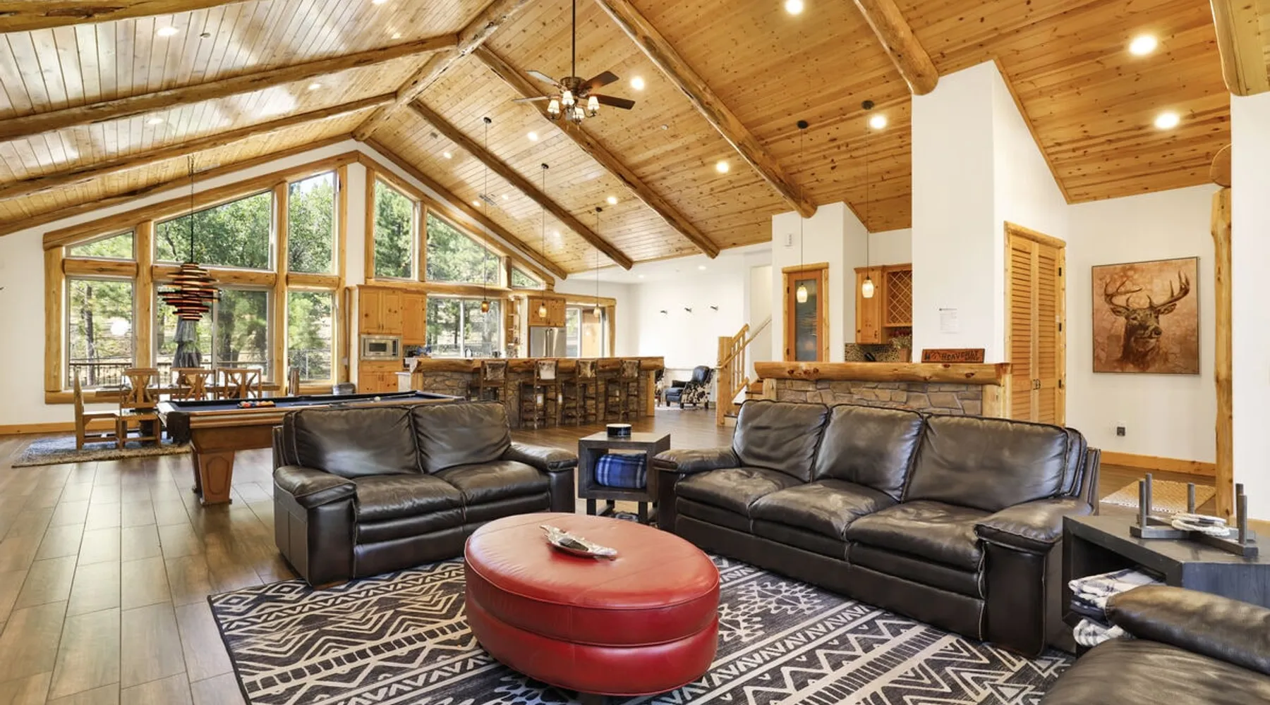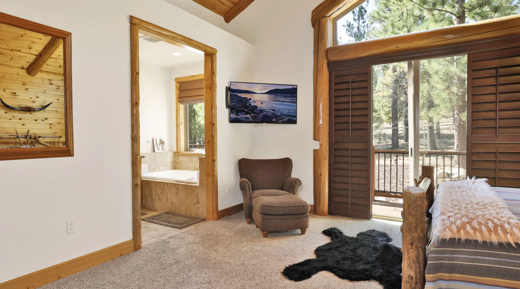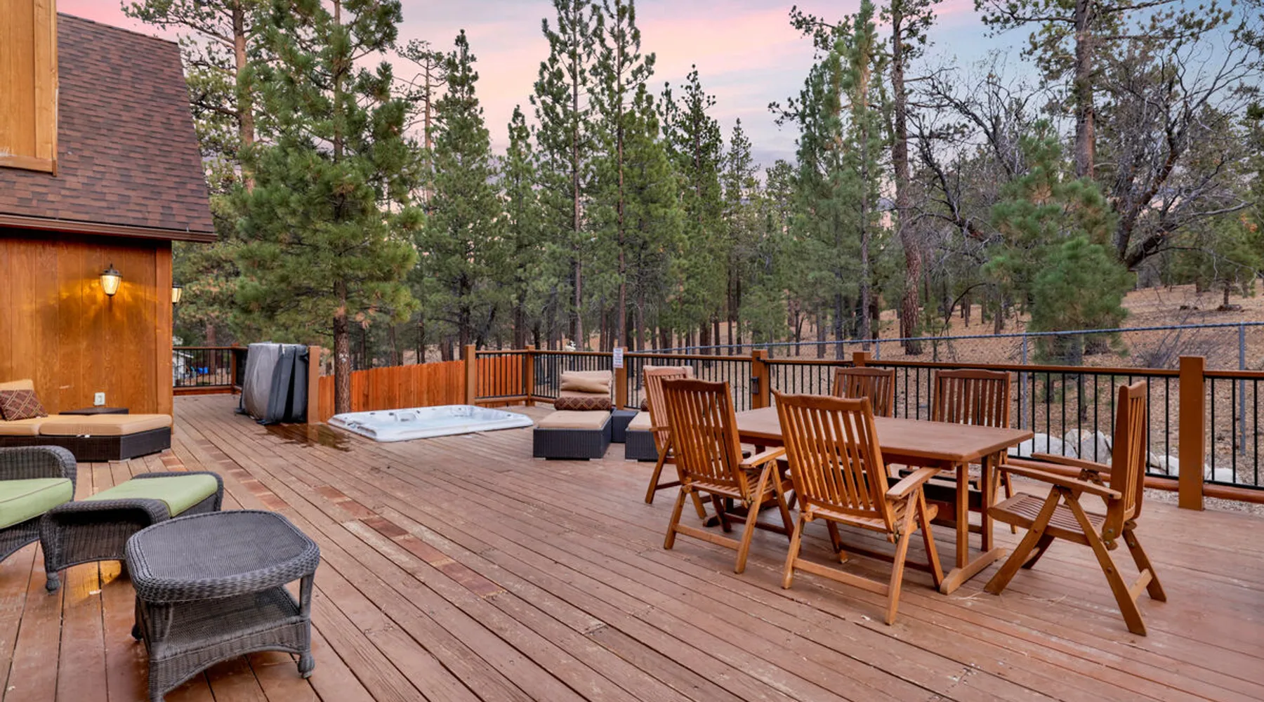 Heavenly Lodge Big Bear ~ Ultra-Modern Mountain Retreat with Hot Tub & Pool Table Welcome to Heavenly Lodge, your luxurious mountain getaway in the exclusive Heavenly Valley Estates—perfectly located between Snow Summit and Bear Mountain, and just minutes from Big Bear Lake and the Village. Packed with the comforts from home paired with your vacation stay in mind your group will be blown away by this incredible Big Bear log cabin retreat! Perfect for any season you will love your vacation here! The space Heavenly Lodge Big Bear ~ Ultra-Modern Mountain Retreat with Hot Tub & Pool Table Heavenly Log Home is your next home away from home, boasting luxury from head to toe our home is sure to impress your entire group! Located in the upscale "Heavenly Valley Estates" you can enjoy a stroll through fine luxury Big Bear homes within a forested neighborhood conveniently sat right between Snow Summit and Bear Mountain Resorts, you will be within minutes of all local activities including Big Bear Lake and the Village shops. Heavenly Log Home is the cabin that you will be returning to for all seasons with your family and friends year after year for more memorable vacations. Enter your mountain home into the great room, boasting high vaulted knotty pine ceilings, gorgeous hardwood floors, an open and spacious floor plan, and amazing windows that allow in an incredible amount of natural lighting, you will instantly understand why this place is heavenly. Enjoy sitting around the toasty fire and watching a movie on the massive 65'' flat screen TV or challenge the group at a game of pool on the provided billiards table. Perfect for entertaining you will find a cute wet bar area for your adult beverages plus so many fun areas to entertain a large group or family. The extra-large gourmet kitchen is perfect for preparing meals or entertaining a dinner party. Boasting cookware and new stainless appliances paired with gorgeous granite countertops and beautiful pine cabinets, the heavenly log décor never ends in this palace! You will love the formal dining room with sit down seating at the log dining table also ordaining floor to ceiling windows and views, plus the breakfast bar offers additional seating for group meals together. The layout will ensure your quality time together or peace and quiet to enjoy separate activities, with Amazon Alexa conveniently placed throughout the property to assist with nearby restaurants, and things to do, the modern touches make for an unbeatable vacation here! Boasting a brand-new Life Source water filtration system and fine upscale amenities. the fun never ends here at Heavenly Log Home! Your first three bedrooms are located on the first floor as you enter while the kids' room with foosball is located upstairs, all are made up for your visit with warm linens, blankets, and fresh shower towels and each boasts a massive flat screen TV- no more fighting over what to watch while you unwind at night. Venturing outside from the kitchen and dining areas you are greeted with the most amazing redwood sun deck, recently doubled in size this is the ultimate spot to spend your vacation time. Boasting ample outdoor cabana style sun chairs, a propane BBQ, and an amazing hot tub under the stars, this is the spot your group will spend your evenings unwinding while you grill up dinner and soak up your day of adventures in the spa. Bedroom 1: King Bed, Smart TV w/ Cable + DVR, Private Full Bath- Downstairs Entry Level Bedroom 2: King Bed Plus Full Futon, 65” Smart TV w/ Cable, Private Full Bath- Downstairs Entry Level Bedroom 3: King Bed, 55” Flat Screen w/ Cable, Private Full Bath w/ Jetted Spa Tub- Downstairs Entry Level Bedroom 4: Two Twin/Full Bunk Bed Sets, 55” Flat Screen w/ Cable + DVR, X- Box Game Console- Upstairs 2nd Level Private Full Bath- Bedroom 1- Downstairs Entry Level Private Full Bath- Bedroom 2- Downstairs Entry Level Private Full Bath w/ Jetted Spa Tub- Bedroom 3- Downstairs Entry Level Hallway Full Bath- Upstairs 2nd Level ~Sleeps 14 ~4 Cars Driveway Parking ~NO PETS ALLLOWED ~3,922 Square Feet ~ City Permit #: Guest access Once checked in, guests can enjoy sole access to their private property for the duration of their booked dates. Registration details 2025-1343