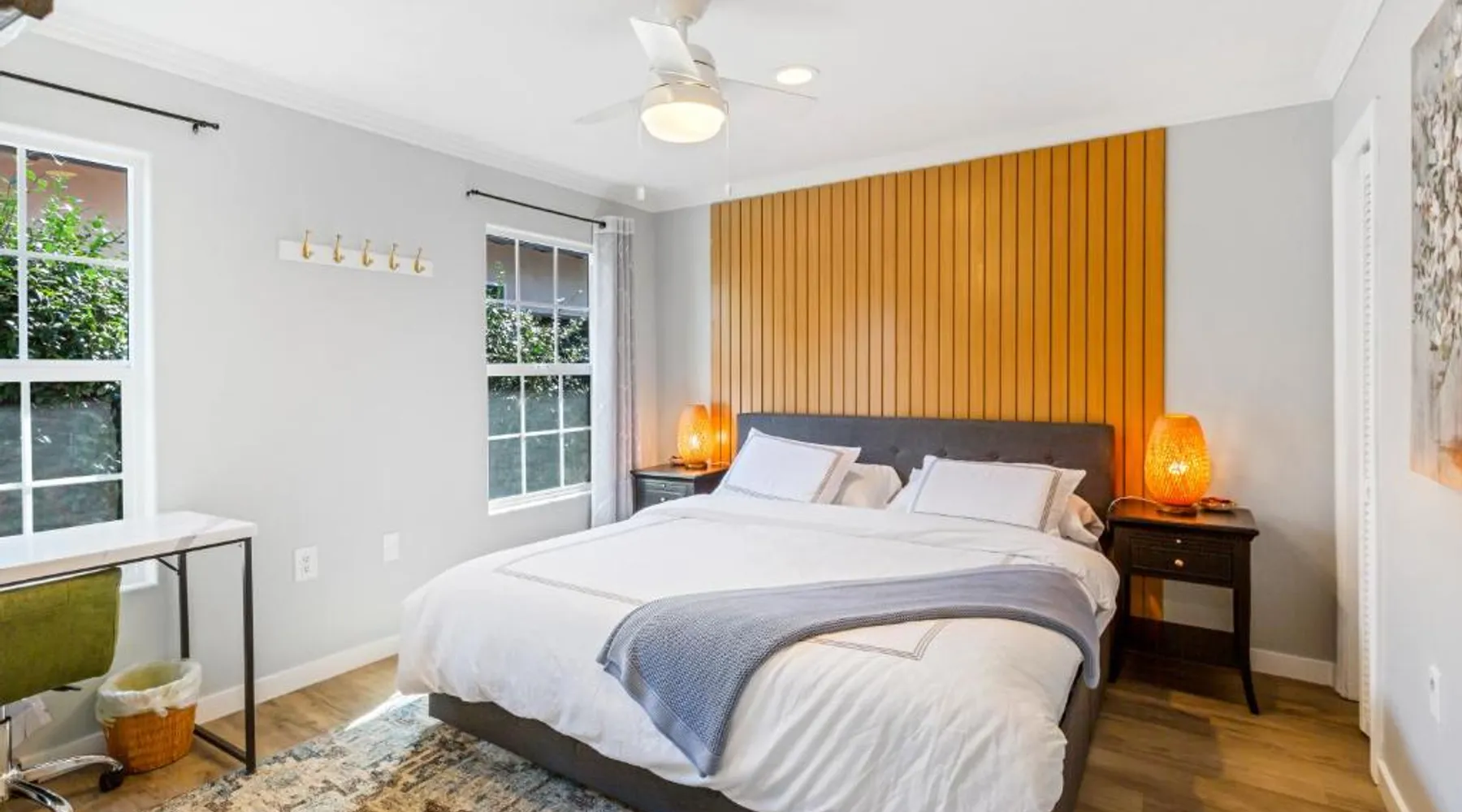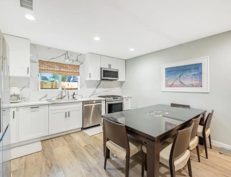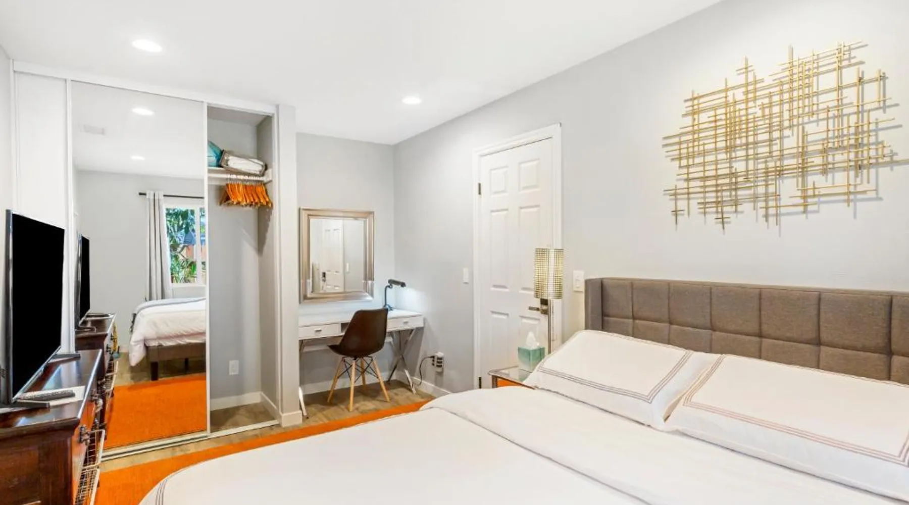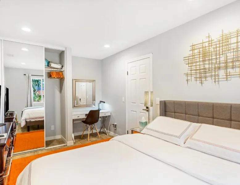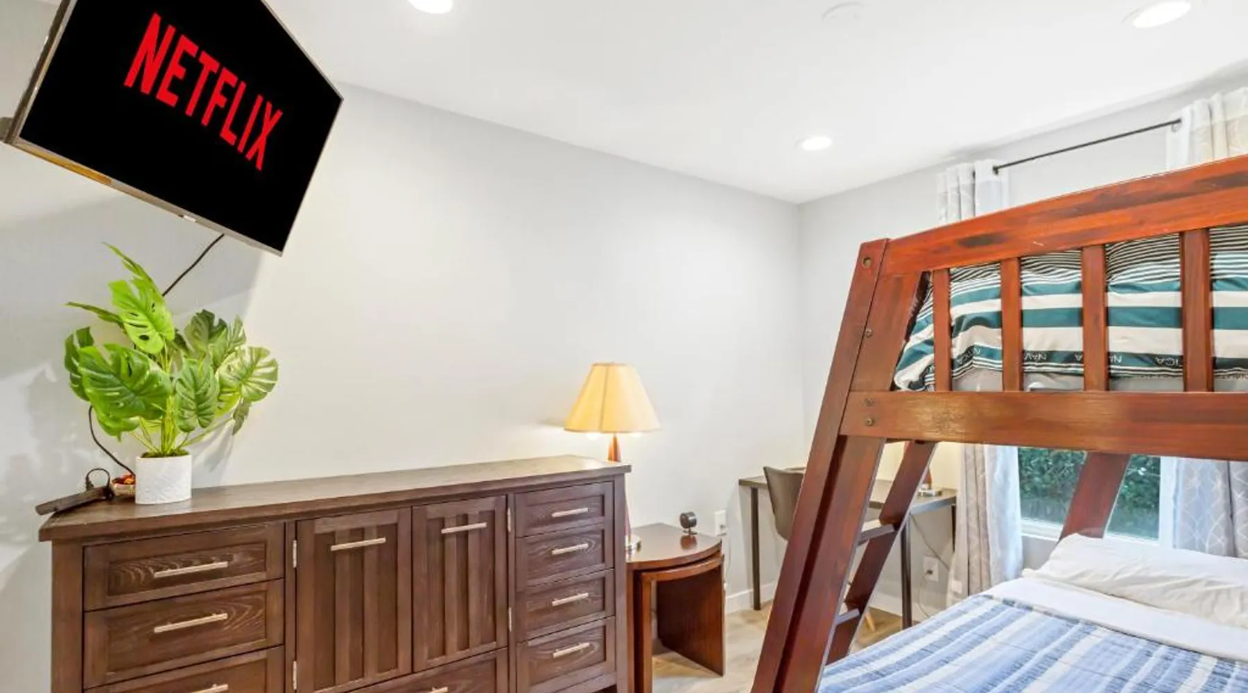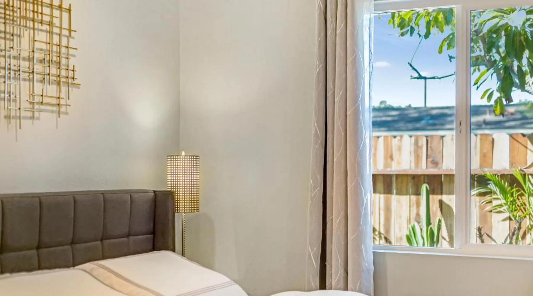 Spacious Accommodations: Remodeled House Near Disneyland in Fullerton offers a spacious, recently renovated holiday home with three bedrooms and two bathrooms. The property features family rooms and a living room, ensuring comfort for all guests. Modern Amenities: Guests enjoy free WiFi, air-conditioning, streaming services, and a fully equipped kitchen with a washing machine. Additional amenities include a fireplace, tea and coffee maker, and a work desk. Outdoor Spaces: The property includes a garden and outdoor dining area, providing a relaxing environment. Free on-site private parking is available for convenience. Convenient Location: Located 17 mi from John Wayne Airport, the holiday home is close to attractions such as Disney California Adventure (6.2 mi), Disneyland (6.8 mi), and Knotts Berry Farm (7.5 mi). Guests will have a special experience as the holiday home offers a fireplace. This spacious holiday home consists of 1 living room, 3 separate bedrooms and 2 bathrooms with a walk-in shower and free toiletries. In the well-equipped kitchen, guests will find a stovetop, a refrigerator, a dishwasher and an oven. The air-conditioned holiday home provides a flat-screen TV with streaming services, a washing machine, a tea and coffee maker, a sofa as well as an inner courtyard view. The unit offers 5 beds.