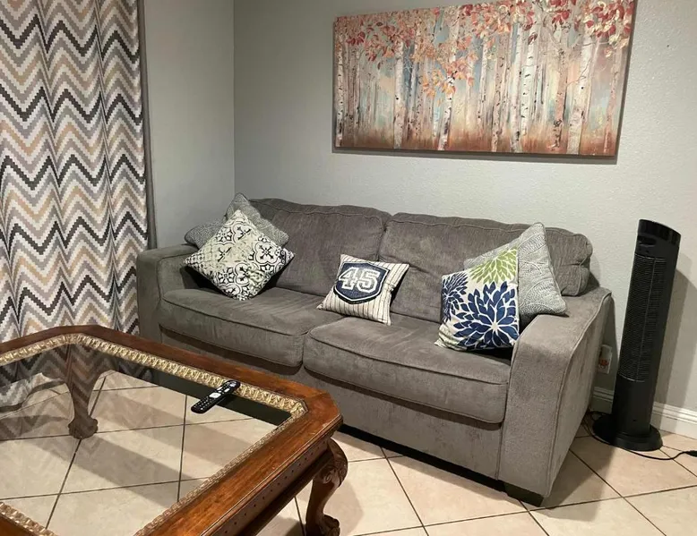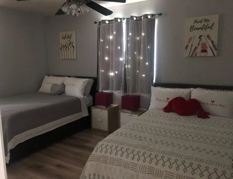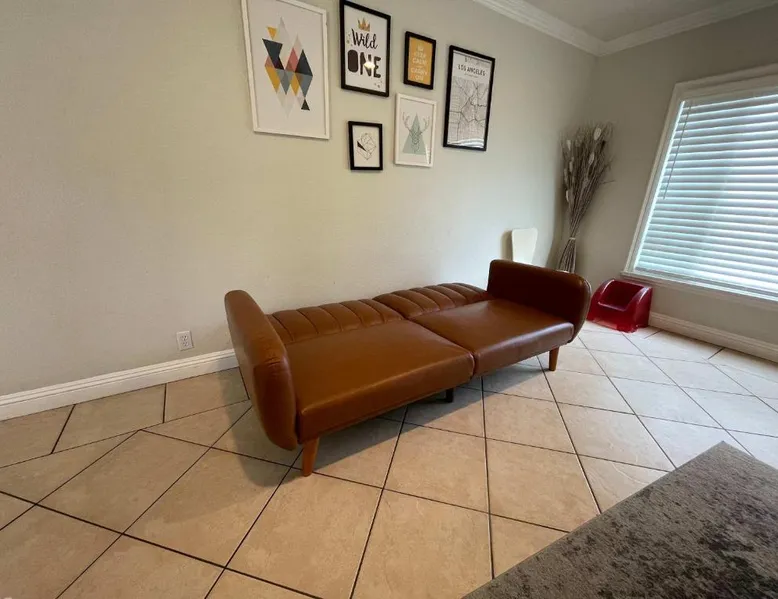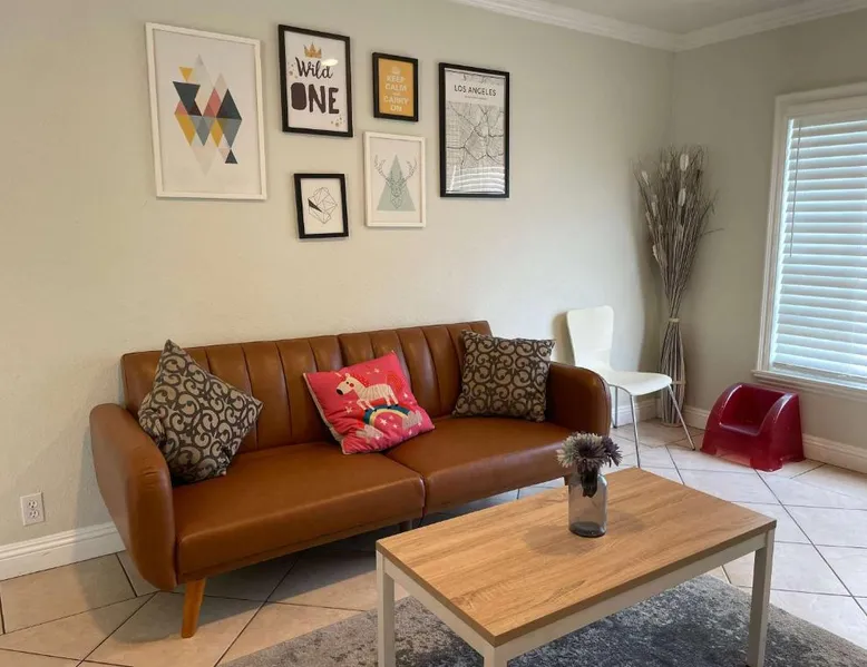 Spacious Accommodations: 10 minutes away to Disneyland or Knotts in Fullerton offers a spacious holiday home with three bedrooms and two bathrooms. The living room provides ample space for relaxation. Modern Amenities: Guests enjoy free WiFi, air-conditioning, and a fully equipped kitchen with a refrigerator, microwave, dishwasher, and oven. Additional amenities include a washing machine, dining table, and outdoor furniture. Convenient Location: Located 13 mi from Long Beach Airport, the property is close to attractions such as Knotts Berry Farm (3.1 mi), Disneyland (5 mi), and Anaheim Convention Center (5.6 mi). Free on-site parking is available. Guests can make meals in the kitchen that features a stovetop, a refrigerator, a dishwasher and kitchenware. The spacious air-conditioned holiday home features a TV, a washing machine, a private entrance and a tea and coffee maker. The unit has 6 beds.