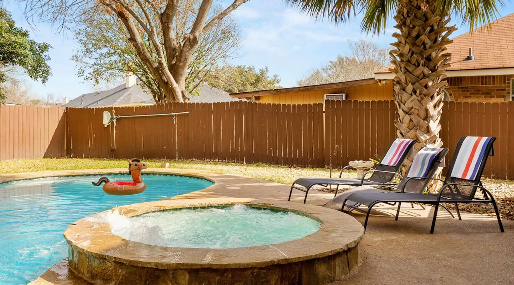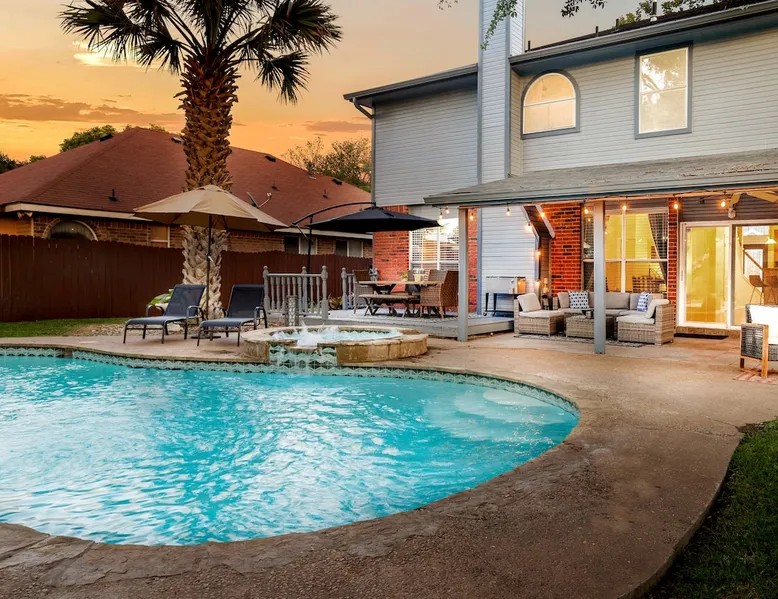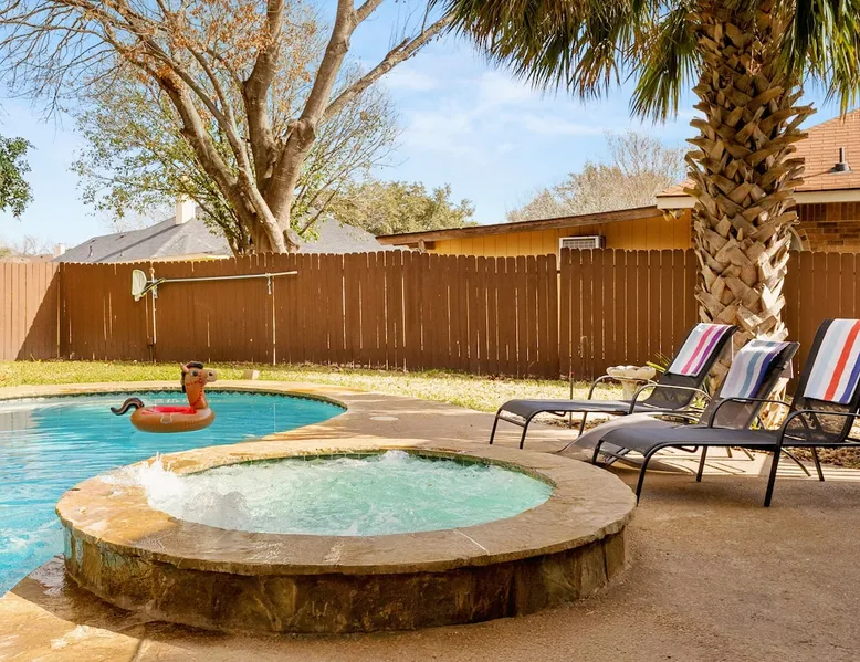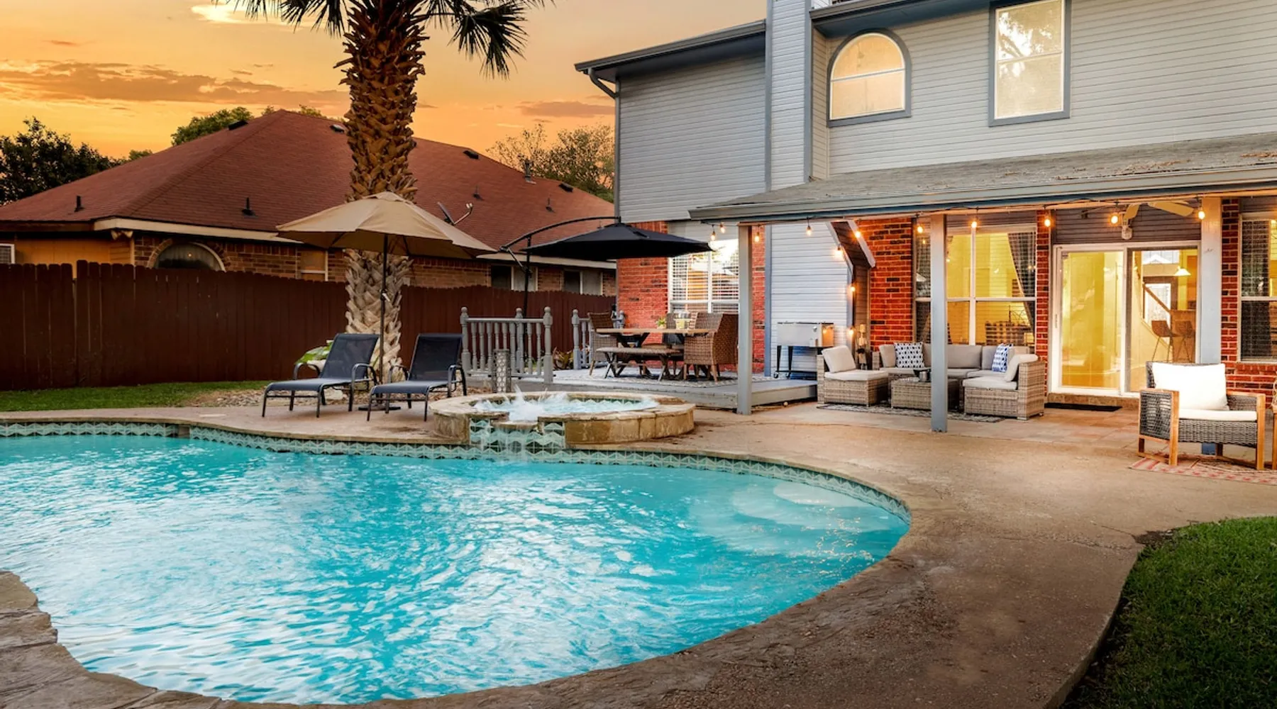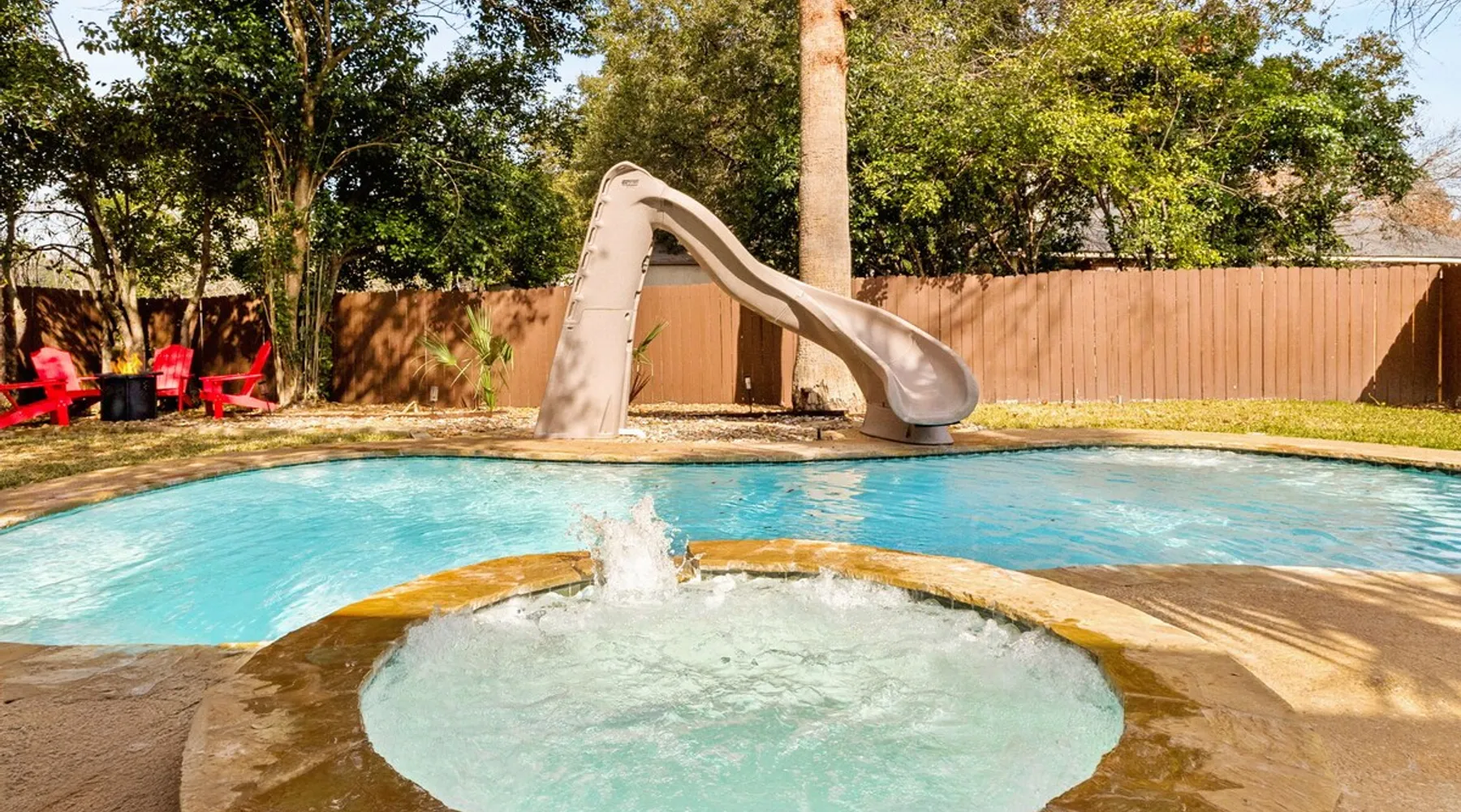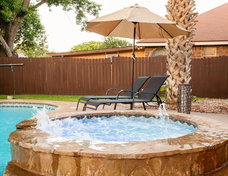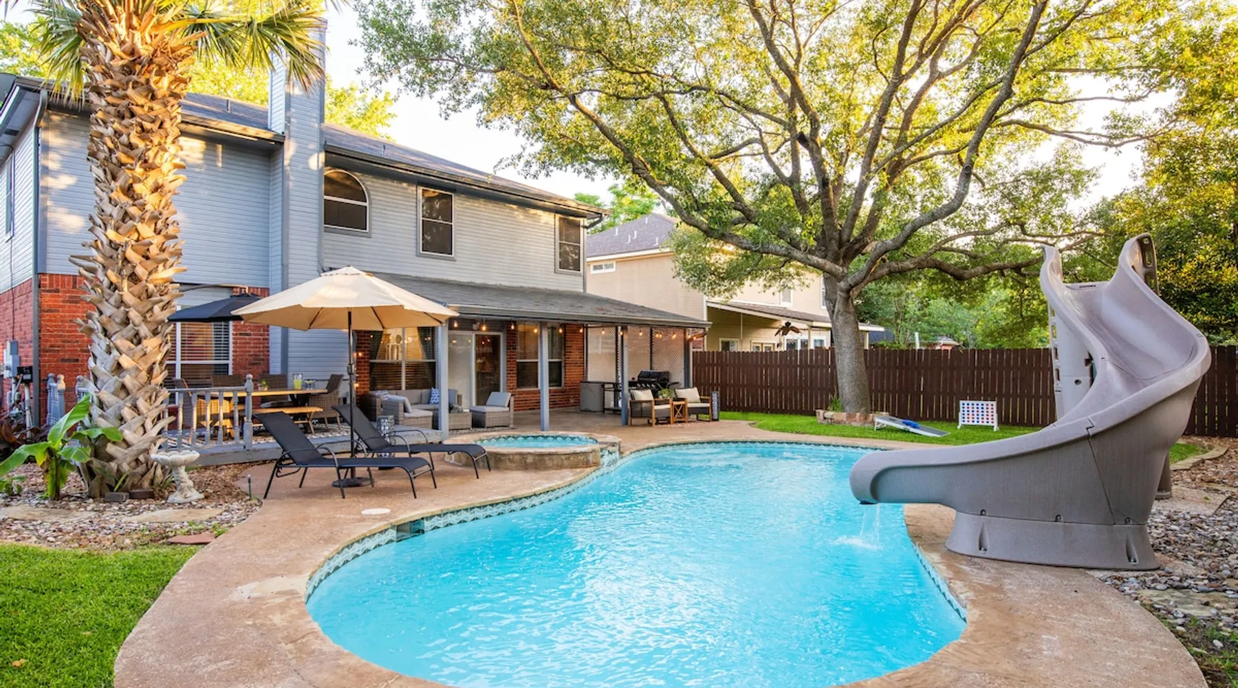 * Luxurious 4-bedroom home in gated community, sleeps 12 * Heated pool with slide, in-ground hot tub, an outdoor oasis *Brand-new Game room with Fussball, Air Hockey, Basketball * Spacious indoor living with 75" Smart TV, XBOX S and family board games * Fully LOADED kitchen for all your culinary needs * Family-friendly amenities: high chairs, pack-and-plays * Pet Friendly...bring your furry friends! * Sleep like a baby on mattresses praised by our guests! * Close to top San Antonio attractions The space Indoor Living Spaces Gather up the family and make yourself cozy in our expansive living room, complete with a wrap-around sectional sofa lined with plush chaise cushioning. Stream your favorite shows or excite the gamer in the group with the Xbox 5, all on a 75” Smart TV! For some friendly competition, there's an abundance of board games provided; Not into streaming? Challenge each other with classic board games or let the kids take over upstairs for their very own movie night. Cooking & Dining Are you a master of the kitchen? This fully-equipped kitchen has everything for your cooking adventures. Generously stocked with a spice rack, baking sheets, pots & pans galore – plus necessary tools like blenders, crockpots and a toaster – there won't be an ingredient or technique left unperfected in any dish. Afterwards, savor special meals in our spacious dining room seating up 8 lucky guests while overlooking your backyard oasis! Additional seating for 7 between the kitchen table and island. Or dine alfresco and soak in your outdoor paradise, complete with dining space and lounge area. Sleeping Accommodations and Bathrooms The home sleeps up to 12 people, making it an ideal space for family reunions, bachelor or bachelorette parties, wedding parties or traveling with friends! All of the bedrooms are outfitted with incredible mattresses that we regularly get compliments on. They're so good we bought one for our own house! The perfect abode for family and friends, the home is equipped with 4 spacious bedrooms perfectly situated on one level. Resting easy won't be a problem as 3 of these rooms offer luxurious king-sized beds while the 4th reveals its laid back vibes through an inviting twin over full bunk bed frameset that also includes a cozy trundle underneath. All of the bedrooms are equipped with 55in Smart TV's so you can wind down with a movie or your favorite show. Outdoor Living Spaces Get ready for luxury in your own backyard. Relax under the covered patio with a grill sizzling, dinner on the outdoor dining table, and cozy lounge chairs perfect for an evening spent star-gazing. And that's before you dive into the heated pool featuring its very own thrilling slide! An in-ground hot tub awaits to melt away any cares or worries of every day life - all just steps from your back door! **ABOUT OUR HEATED POOL** Our pool and spa can be heated year round, however depending on the outside temperatures during your stay, it could be more difficult to heat during January and February's coldest temperatures. Thank you for understanding. While the pool won’t reach hot-tub temperatures, the pool is consistently maintained at 86º degrees November to April/May. Our pool team comes to take care of the home on Mondays and Thursdays. On the coldest days of the year, our pool may not reach the set temperature due to the extreme cold. Most heat pumps do not function as well when outside temperature is less than 55 degrees. We’re happy to provide this added comfort at no extra charge, so you can focus on enjoying your stay. Please note that pool temperatures will vary slightly based on weather conditions. *** ✅ This property follows local compliance standards and uses a simple, secure platform called Happy Guest to streamline the check-in process. You don’t need to download an app or create an account — it’s just a quick and secure website that gives you everything you need for a smooth arrival. You’ll also get access to your personalized guest portal, where you can find all the info about the home and some of our favorite local spots. The portal also offers optional upgrades to help you customize your stay: • Extra Guest – $50 • Late Checkout – $50 • Stock the Fridge – $100 ★☆ Book Today & Let Us Take Care Of You In San Antonio! ☆★ Guest access Guests will have access to the entire home, completely private to themselves. Initial access is provided using a wifi digital keypad. Guests will be provided a unique code and can check in as late as they may need, providing the ultimate convenience. Easy Check-In Process🏡 It’s just like when you check in at a hotel and give your ID to the front desk, except our front desk is online! It's super easy to complete on your phone! We use a web-based system called Happy Guest, and you’ll receive a personalized rental agreement to sign in order to receive your arrival instructions. It’s simple: finish these steps, and you’re all set to enjoy your stay! Note: arrival info won’t be sent without completing these steps, and refunds aren’t possible if skipped. Your personalized guidebook will give you all the info about the home, our favorite local spots, automatic early check-in notifications, and sometimes even late checkout! You can even share it with friends and family! Got questions? Just message us anytime! Other things to note This listing has an additional Agreement that applies to all guests staying at the Premises. As part of the booking process, Guest(s) may be required to complete a guest verification process prior to receiving any check-in information pertaining to the Premises. Guest(s) will be required to review and sign an Agreement with the Host. This is a pet friendly property. Mailing packages to the Premises is not permitted. We use Minut noise monitoring devices in our homes. These are decibel monitoring systems that we use to keep in accordance with local noise regulations. Registration Details STR-23-13