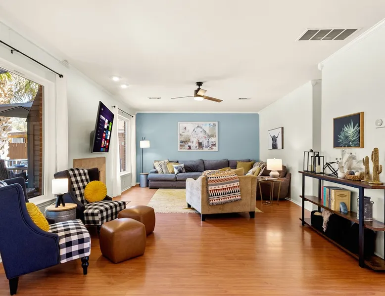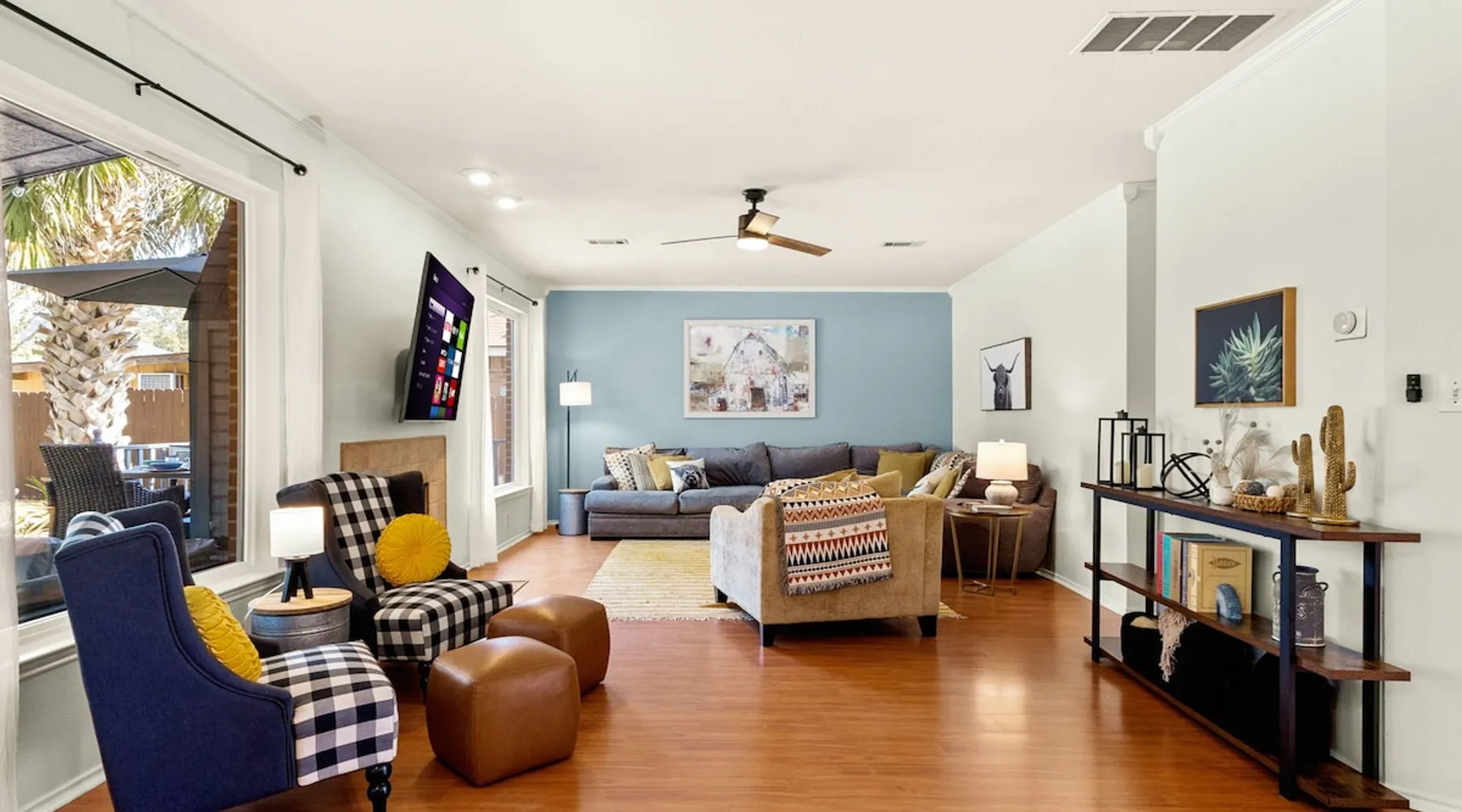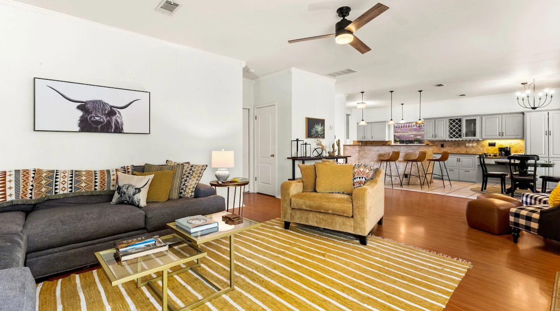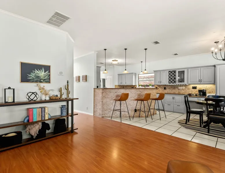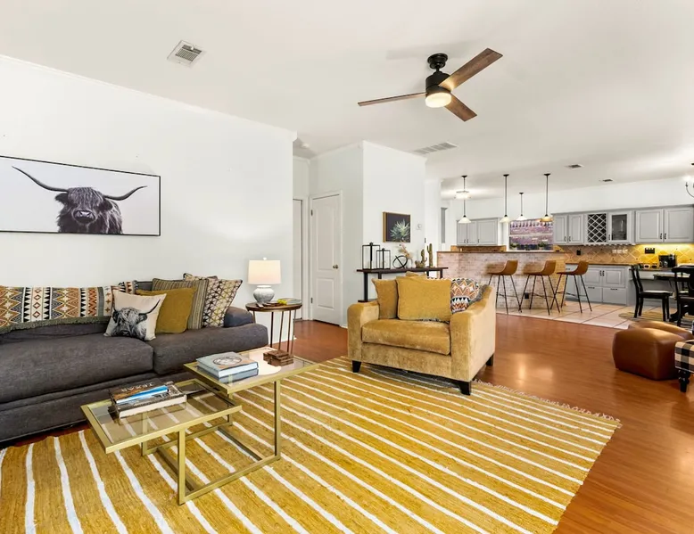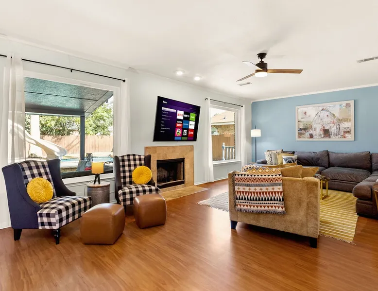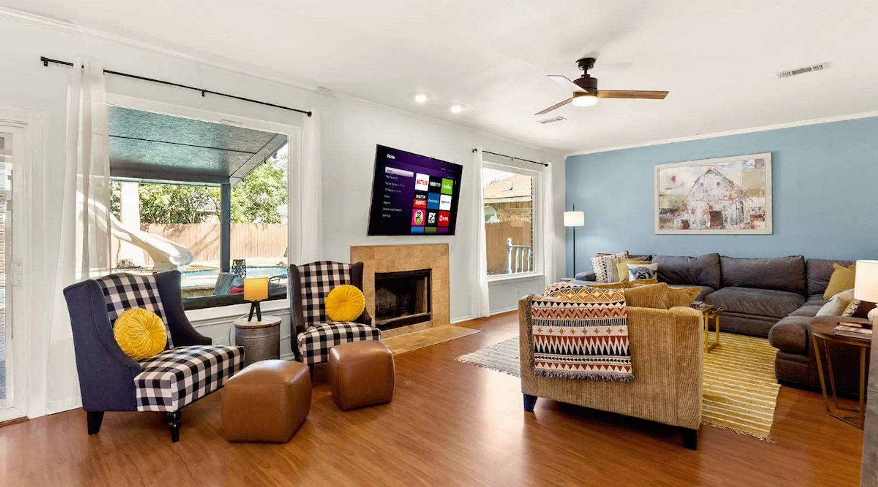 * Luxurious 4-bedroom home in gated community, sleeps 12 * Heated pool with slide, in-ground hot tub, an outdoor oasis *Brand-new Game room with Fussball, Air Hockey, Basketball * Spacious indoor living with 75" Smart TV, XBOX S and family board games * Fully LOADED kitchen for all your culinary needs * Family-friendly amenities: high chairs, pack-and-plays * Pet Friendly...bring your furry friends! * Sleep like a baby on mattresses praised by our guests! * Close to top San Antonio attractions The space Indoor Living Spaces Gather up the family and make yourself cozy in our expansive living room, complete with a wrap-around sectional sofa lined with plush chaise cushioning. Stream your favorite shows or excite the gamer in the group with the Xbox 5, all on a 75” Smart TV! For some friendly competition, there's an abundance of board games provided; Not into streaming? Challenge each other with classic board games or let the kids take over upstairs for their very own movie night. Cooking & Dining Are you a master of the kitchen? This fully-equipped kitchen has everything for your cooking adventures. Generously stocked with a spice rack, baking sheets, pots & pans galore – plus necessary tools like blenders, crockpots and a toaster – there won't be an ingredient or technique left unperfected in any dish. Afterwards, savor special meals in our spacious dining room seating up 8 lucky guests while overlooking your backyard oasis! Additional seating for 7 between the kitchen table and island. Or dine alfresco and soak in your outdoor paradise, complete with dining space and lounge area. Sleeping Accommodations and Bathrooms The home sleeps up to 12 people, making it an ideal space for family reunions, bachelor or bachelorette parties, wedding parties or traveling with friends! All of the bedrooms are outfitted with incredible mattresses that we regularly get compliments on. They're so good we bought one for our own house! The perfect abode for family and friends, the home is equipped with 4 spacious bedrooms perfectly situated on one level. Resting easy won't be a problem as 3 of these rooms offer luxurious king-sized beds while the 4th reveals its laid back vibes through an inviting twin over full bunk bed frameset that also includes a cozy trundle underneath. All of the bedrooms are equipped with 55in Smart TV's so you can wind down with a movie or your favorite show. Outdoor Living Spaces Get ready for luxury in your own backyard. Relax under the covered patio with a grill sizzling, dinner on the outdoor dining table, and cozy lounge chairs perfect for an evening spent star-gazing. And that's before you dive into the heated pool featuring its very own thrilling slide! An in-ground hot tub awaits to melt away any cares or worries of every day life - all just steps from your back door! **ABOUT OUR HEATED POOL** Our pool and spa can be heated year round, however depending on the outside temperatures during your stay, it could be more difficult to heat during January and February's coldest temperatures. Thank you for understanding. While the pool won’t reach hot-tub temperatures, the pool is consistently maintained at 86º degrees November to April/May. Our pool team comes to take care of the home on Mondays and Thursdays. On the coldest days of the year, our pool may not reach the set temperature due to the extreme cold. Most heat pumps do not function as well when outside temperature is less than 55 degrees. We’re happy to provide this added comfort at no extra charge, so you can focus on enjoying your stay. Please note that pool temperatures will vary slightly based on weather conditions. *** ✅ This property follows local compliance standards and uses a simple, secure platform called Happy Guest to streamline the check-in process. You don’t need to download an app or create an account — it’s just a quick and secure website that gives you everything you need for a smooth arrival. You’ll also get access to your personalized guest portal, where you can find all the info about the home and some of our favorite local spots. The portal also offers optional upgrades to help you customize your stay: • Extra Guest – $50 • Late Checkout – $50 • Stock the Fridge – $100 ★☆ Book Today & Let Us Take Care Of You In San Antonio! ☆★ Guest access Guests will have access to the entire home, completely private to themselves. Initial access is provided using a wifi digital keypad. Guests will be provided a unique code and can check in as late as they may need, providing the ultimate convenience. Easy Check-In Process🏡 It’s just like when you check in at a hotel and give your ID to the front desk, except our front desk is online! It's super easy to complete on your phone! We use a web-based system called Happy Guest, and you’ll receive a personalized rental agreement to sign in order to receive your arrival instructions. It’s simple: finish these steps, and you’re all set to enjoy your stay! Note: arrival info won’t be sent without completing these steps, and refunds aren’t possible if skipped. Your personalized guidebook will give you all the info about the home, our favorite local spots, automatic early check-in notifications, and sometimes even late checkout! You can even share it with friends and family! Got questions? Just message us anytime! Other things to note This listing has an additional Agreement that applies to all guests staying at the Premises. As part of the booking process, Guest(s) may be required to complete a guest verification process prior to receiving any check-in information pertaining to the Premises. Guest(s) will be required to review and sign an Agreement with the Host. This is a pet friendly property. Mailing packages to the Premises is not permitted. We use Minut noise monitoring devices in our homes. These are decibel monitoring systems that we use to keep in accordance with local noise regulations. Registration Details STR-23-13