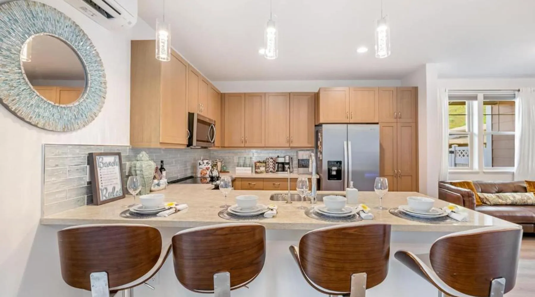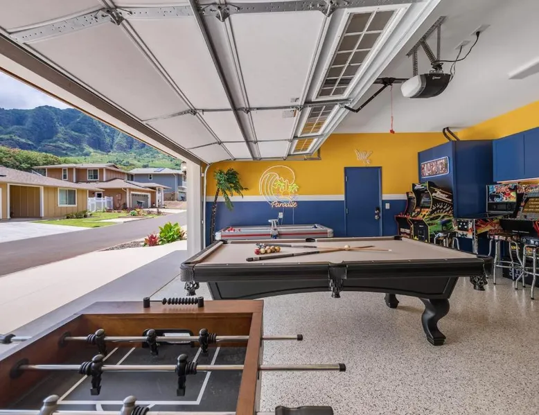 Spacious Accommodations: The Hideouts Two Next-door Homes in Waianae offers seven bedrooms and six bathrooms. The property includes a living room with a sofa bed, ensuring comfort for all guests. Modern Amenities: Guests enjoy free WiFi, air-conditioning, and a private pool. Additional facilities include a hot tub, patio, and barbecue area. Free on-site private parking is available. Convenient Location: Located 32 mi from Honolulu International Airport, the holiday home is near attractions such as Pacific Aviation Museum Pearl Harbor (25 mi) and USS Arizona Memorial (29 mi). This apartment offers a private pool. The spacious apartment provides air conditioning, a washing machine, as well as a shared bathroom featuring a bath and a hairdryer. Guests will find a stovetop, a refrigerator, a dishwasher and an oven in the well-fitted kitchen. The apartment also provides guests with a barbecue. Boasting a patio, this apartment also features a tea and coffee maker, a wardrobe and a TV. The unit offers 8 beds.