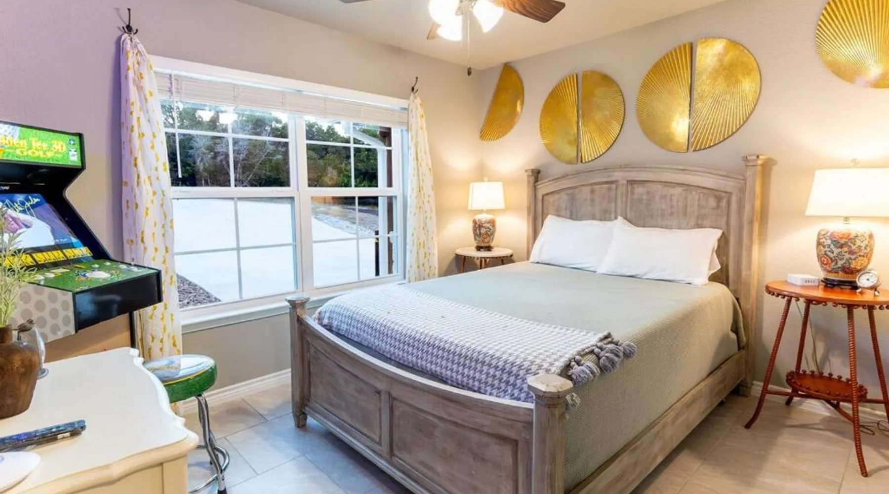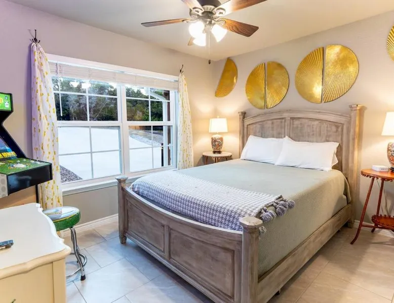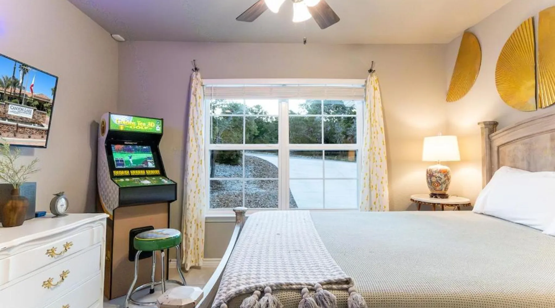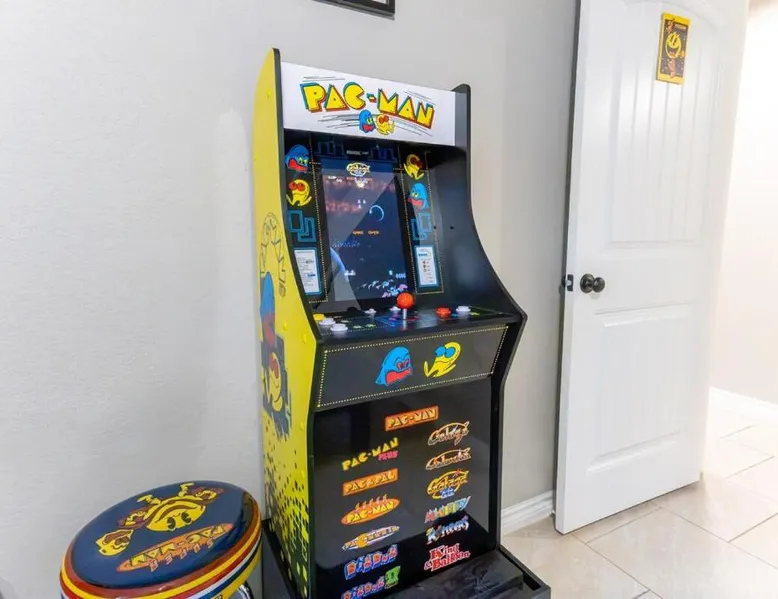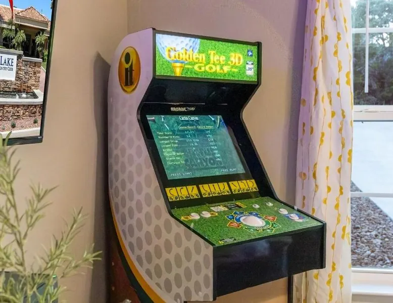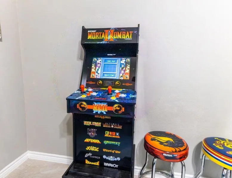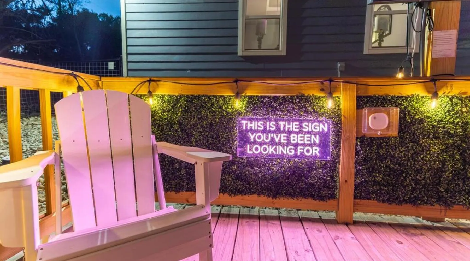 Neon Vibes Outdoor TV Hot Tub Arcade Room