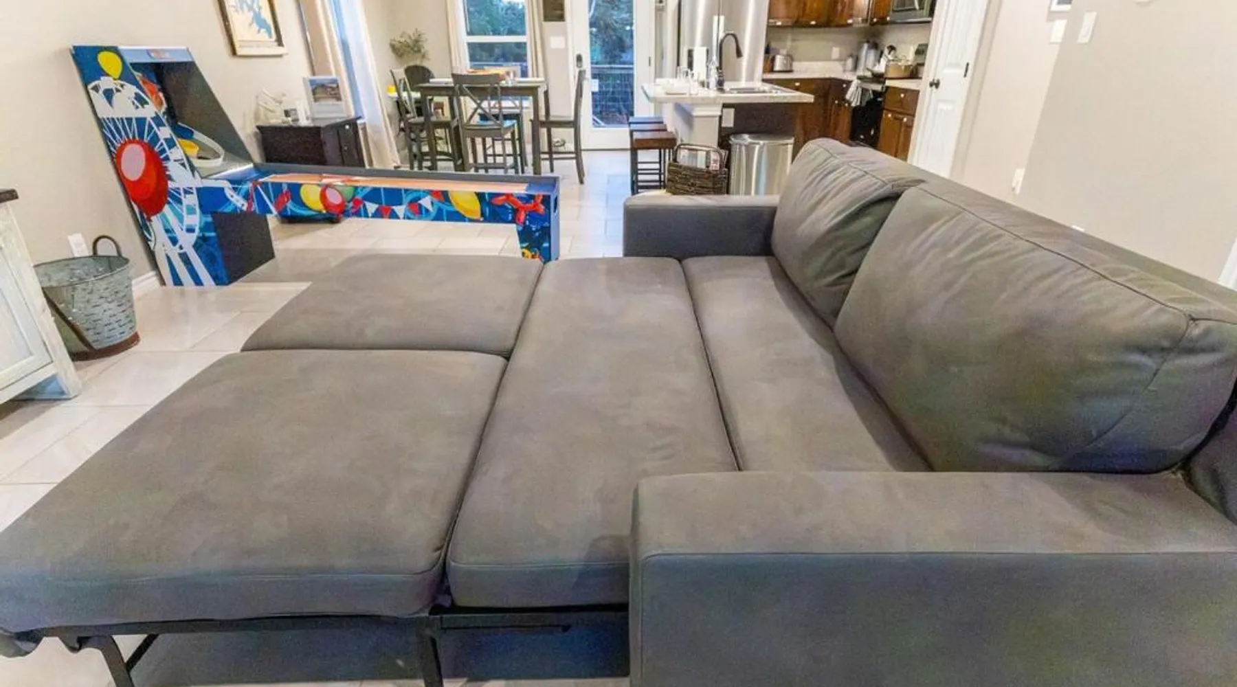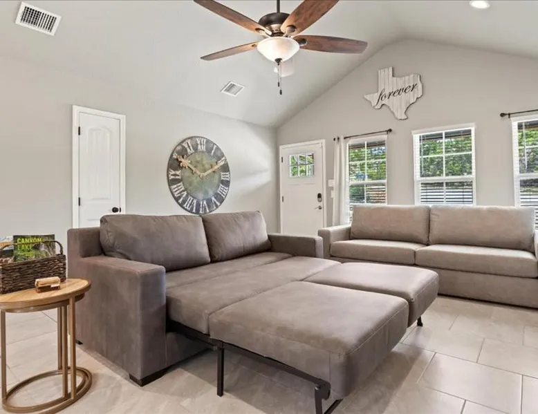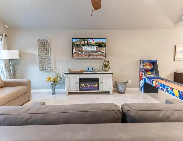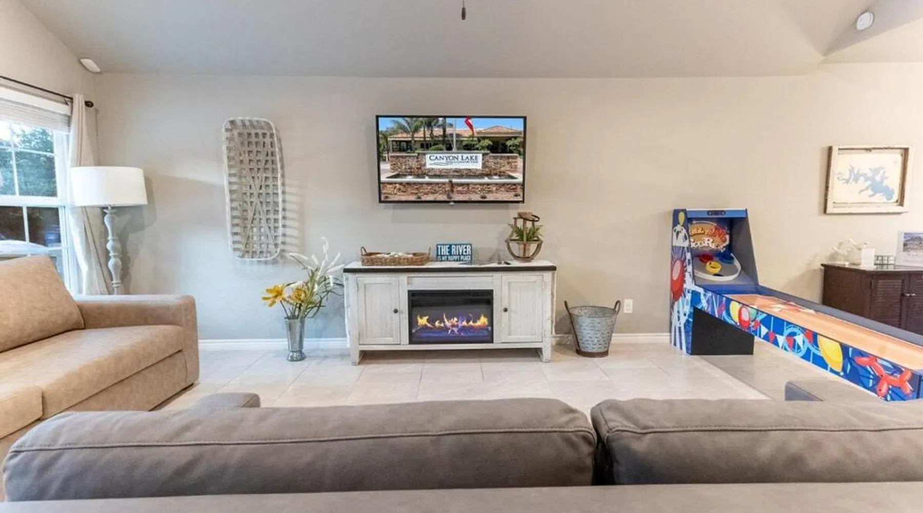Spacious Holiday Home: Neon Vibes Outdoor TV Hot Tub Arcade Room in Canyon Lake offers a spacious layout with one bedroom and two bathrooms. The property features a garden and free WiFi, ensuring a comfortable stay. Modern Amenities: Guests can enjoy air-conditioning, a hot tub, washing machine, fully equipped kitchen, and TV. Additional facilities include an electric vehicle charging station and free on-site private parking. Convenient Location: Located 30 mi from San Antonio International Airport, the holiday home is 6.2 mi from Canyon Lake, 16 mi from Comal River, and 17 mi from Schlitterbahn Waterpark Resort. Nearby attractions include Comal Park and Texas State University. This holiday home's special feature is the hot tub. The holiday home's kitchen is available for cooking and storing food. The spacious holiday home provides air conditioning, a washing machine, heating and a flat-screen TV. The unit offers 2 beds.