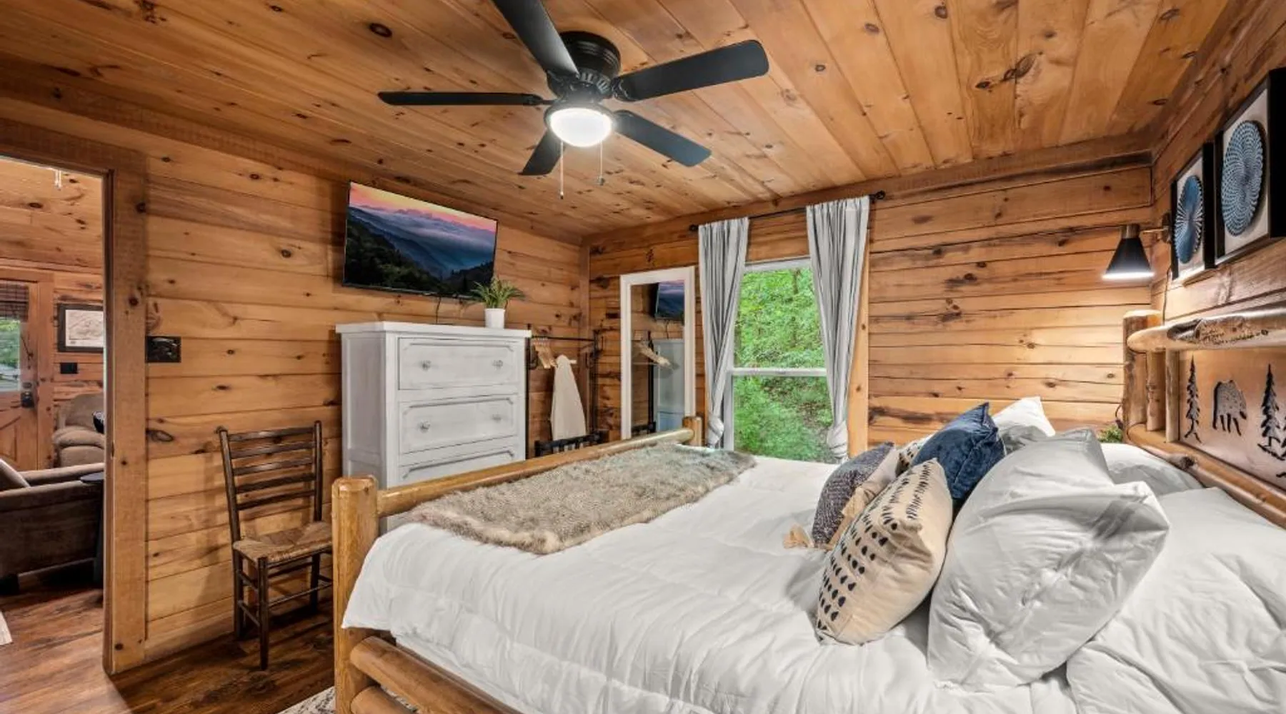 Comfortable Living: Cozy Cove in Townsend offers a holiday home with one bedroom and a living room. The property features a garden, terrace, and free WiFi, ensuring a relaxing stay. Modern Amenities: Guests can enjoy air-conditioning, a fully equipped kitchen, and a hot tub. Additional facilities include a fireplace, barbecue, and outdoor seating area. Free on-site private parking is available. Local Attractions: Located 22 mi from McGhee Tyson Airport, the property is close to attractions such as The Grand Majestic Theater (17 mi) and Dollywood (19 mi). Dolly Parton's Stampede and Ober Gatlinburg are 22 mi away. The hot tub and fireplace are the special features of this holiday home. Featuring a private entrance, this air-conditioned holiday home consists of 1 living room, 1 separate bedroom and 1 bathroom with a bath and a shower. Guests will find a stovetop, a refrigerator, a dishwasher and an oven in the well-equipped kitchen. The holiday home also offers a barbecue. Boasting a terrace with garden views, this holiday home also provides a tea and coffee maker and a flat-screen TV. The unit offers 2 beds.