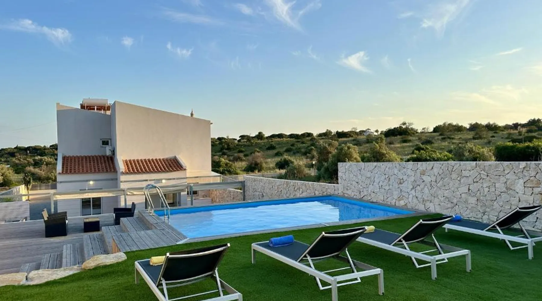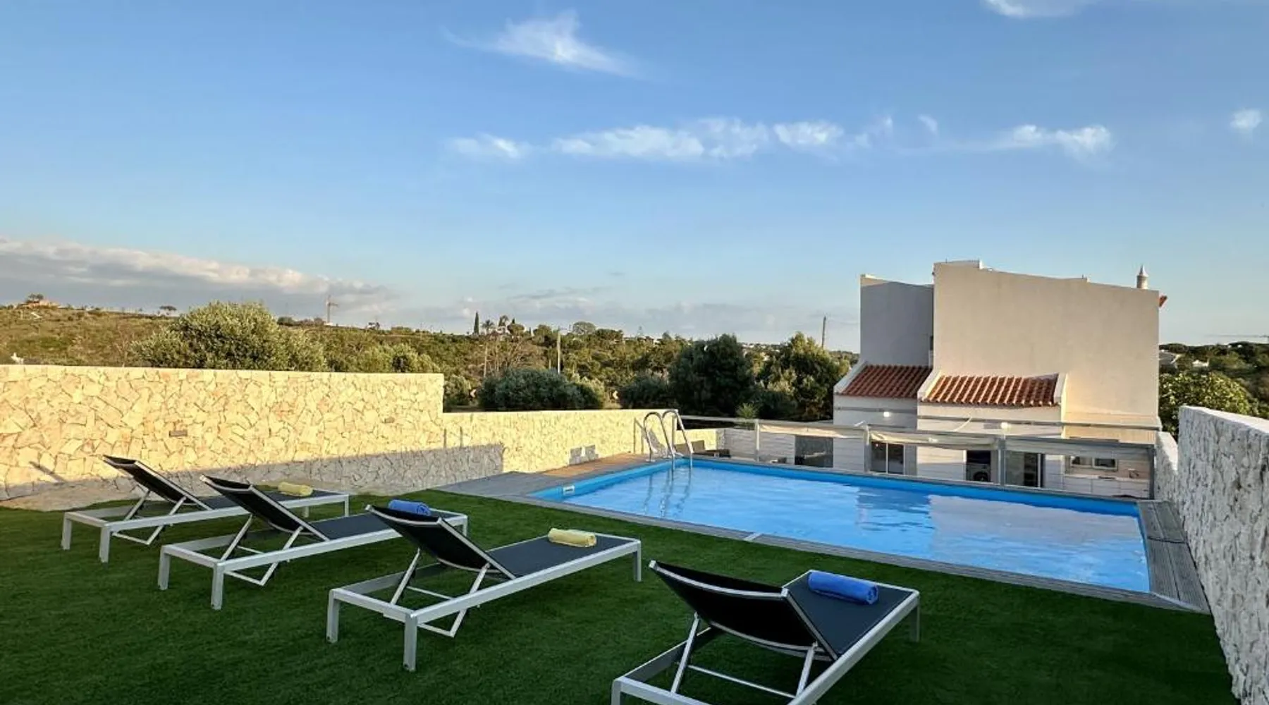 Spacious Accommodations: Cruzeiro by Check-in Portugal in Quarteira offers a spacious villa with five bedrooms and three bathrooms. The property features a sun terrace, garden, and an outdoor swimming pool. Free WiFi is available throughout the villa. Outdoor Amenities: Guests can relax in the outdoor seating area or enjoy the private pool. The villa includes a barbecue and a fireplace, perfect for outdoor gatherings. Modern Facilities: The villa is equipped with air-conditioning, a fully fitted kitchen, washing machine, and a dishwasher. Additional amenities include a TV, dining area, and free on-site private parking. Nearby Attractions: Almargem Beach is 1.2 mi away, Vilamoura Marina 4.3 mi, and Faro Airport 13 mi from the property. Other attractions include Quinta do Lago Laranjal Golf Course and Vale do Lobo Ocean Golf Course, both 3.7 mi away. This villa's special features are the private pool and the fireplace. This spacious villa consists of 5 bedrooms, kitchen, a terrace and 3 bathrooms with a shower. Guests will find a stovetop, a refrigerator, a dishwasher and kitchenware in the kitchen. The villa also offers a barbecue. The air-conditioned villa provides a TV, a washing machine, a tea and coffee maker, a dining area as well as garden views. The unit offers 6 beds.